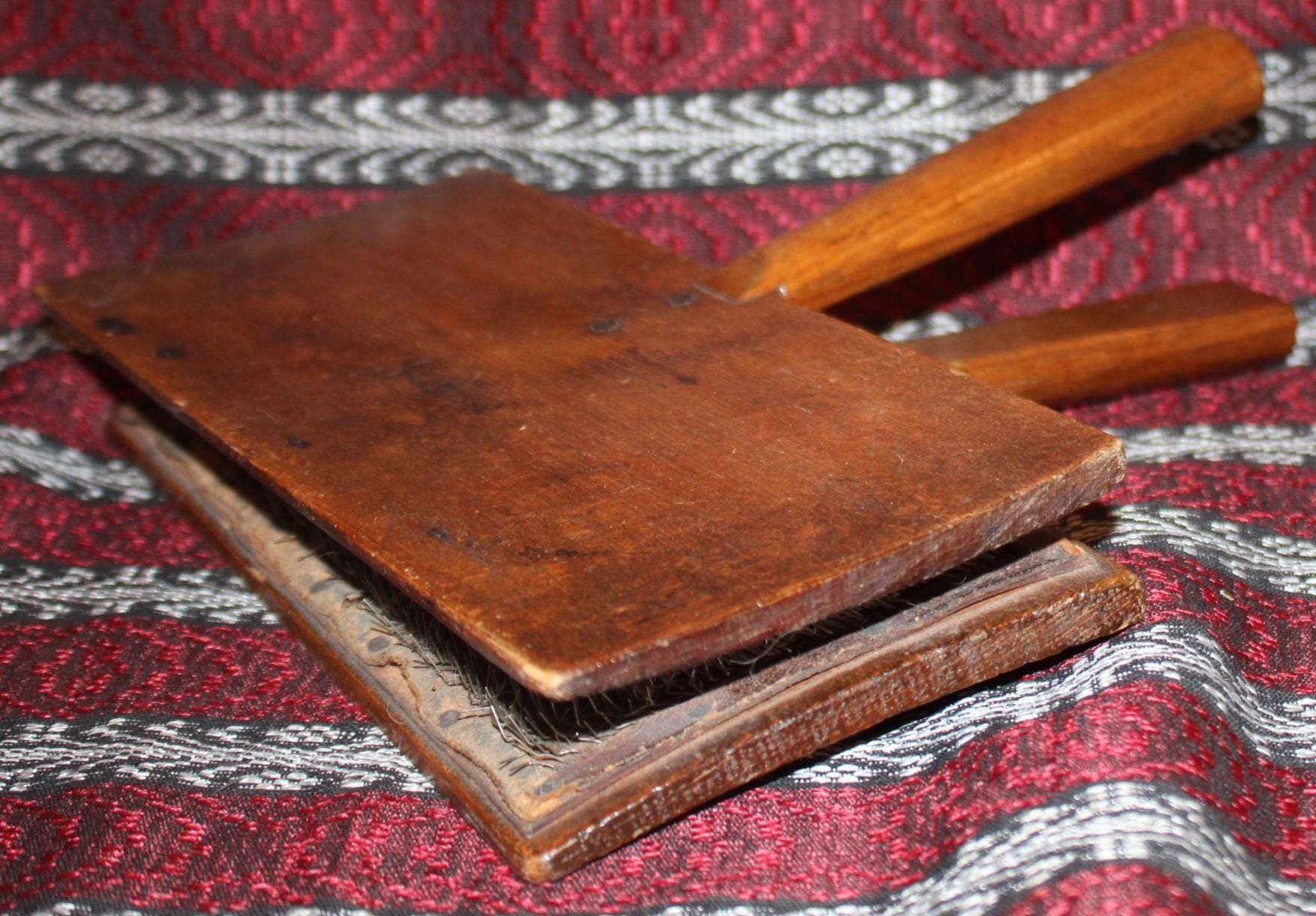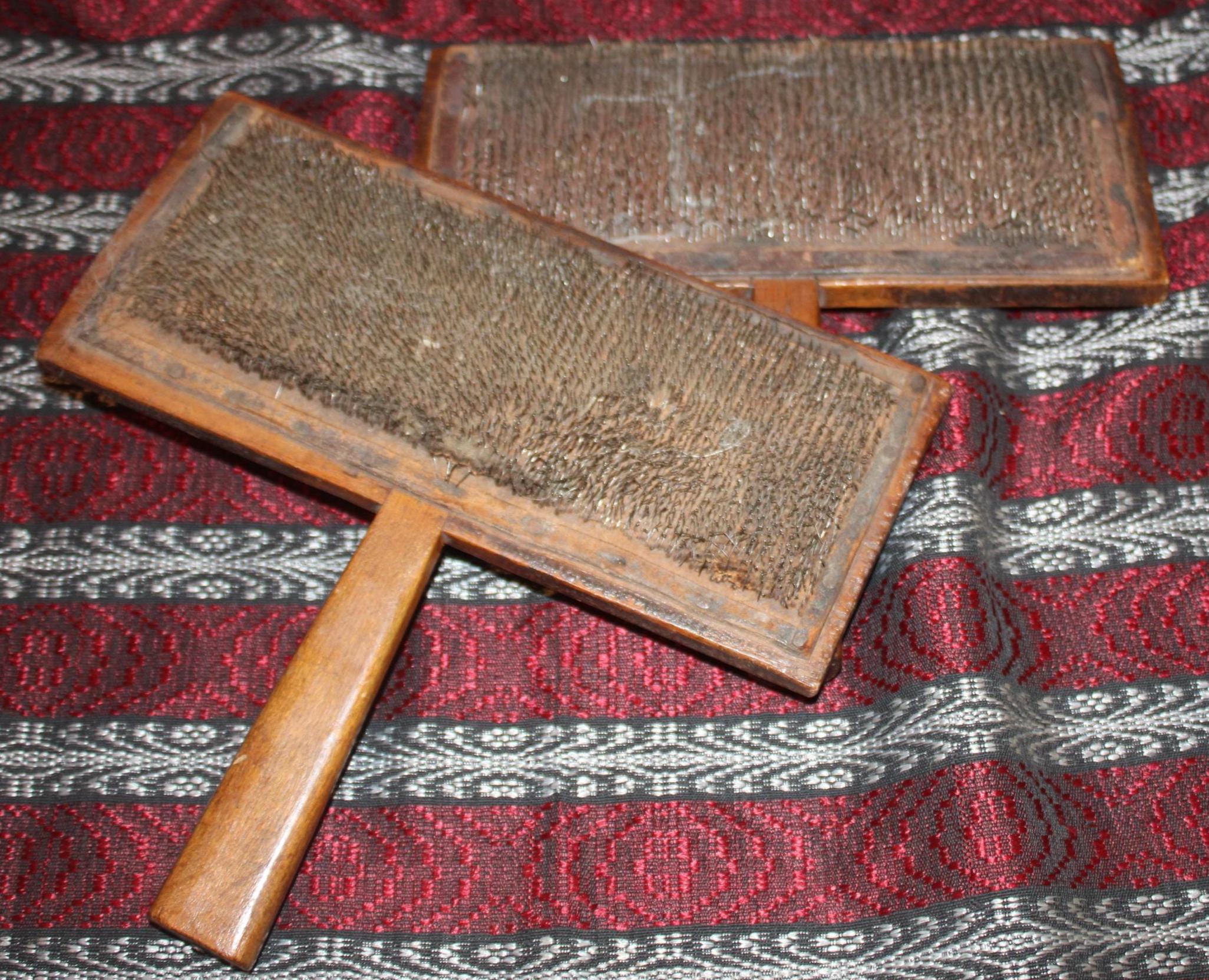 Set of Old Whittemore Primitive Sheep Cotton/Wool Carding Combs- No. 10