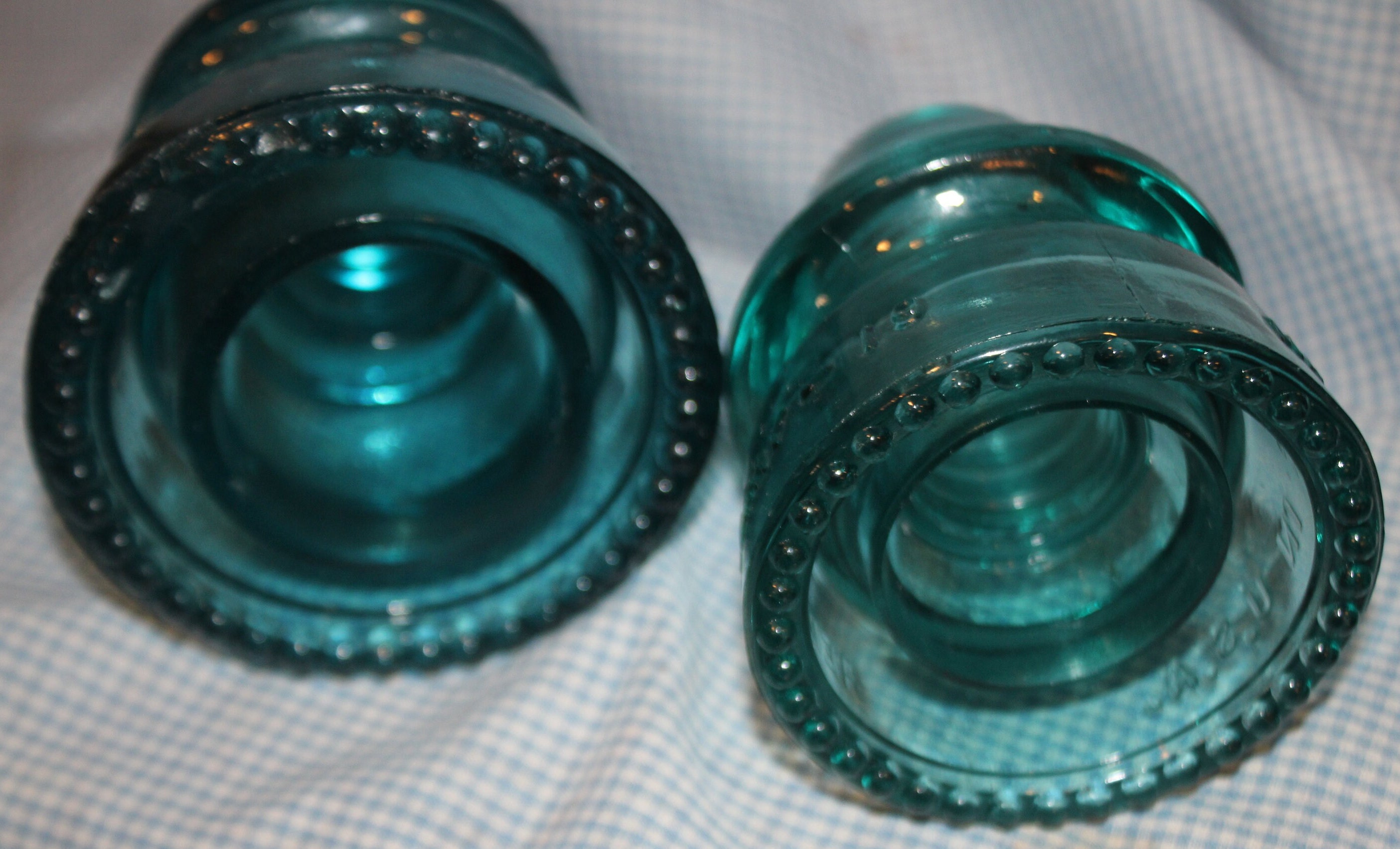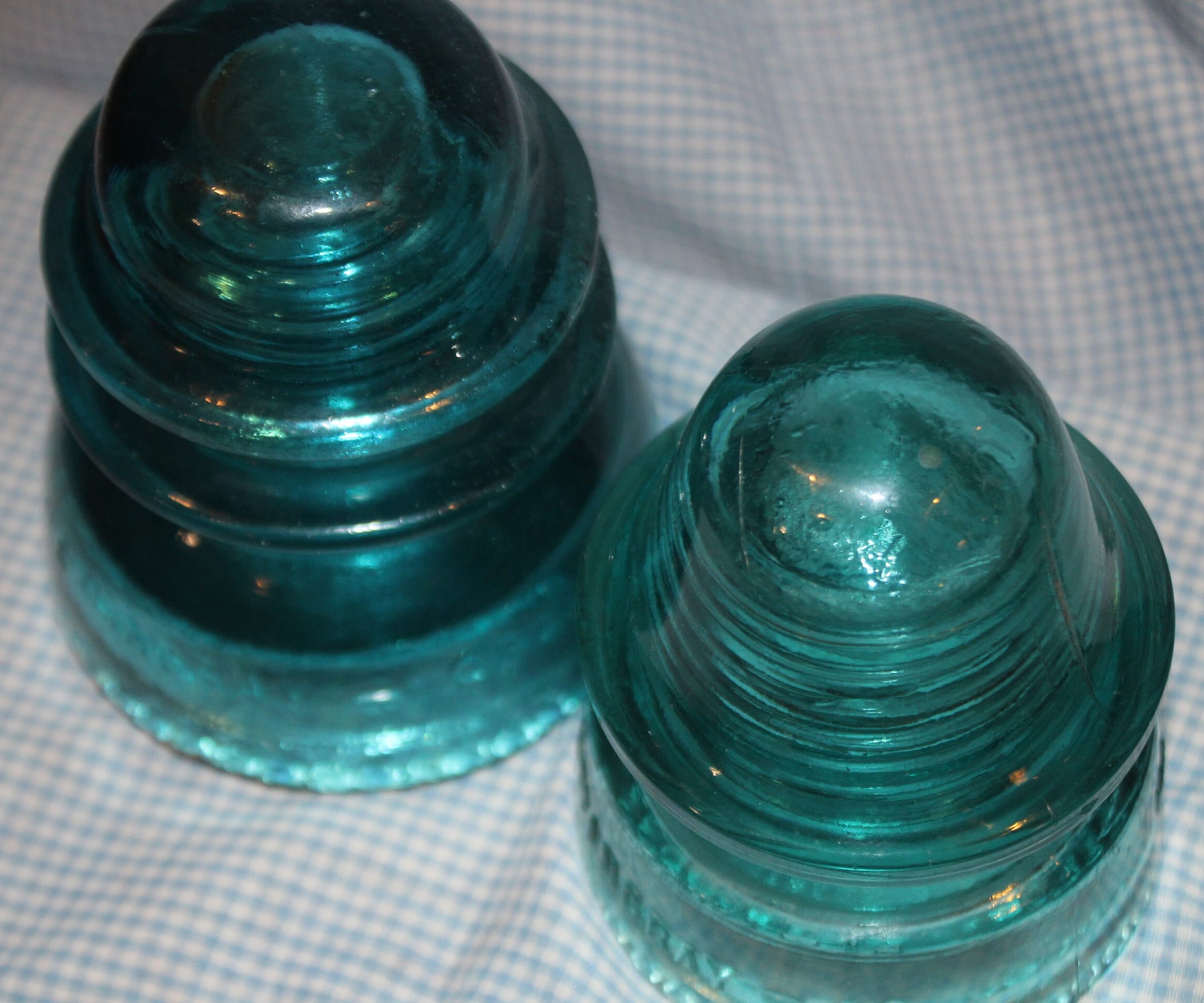 2 Vintage Hemingray Insulators- Aqua #42 & #19