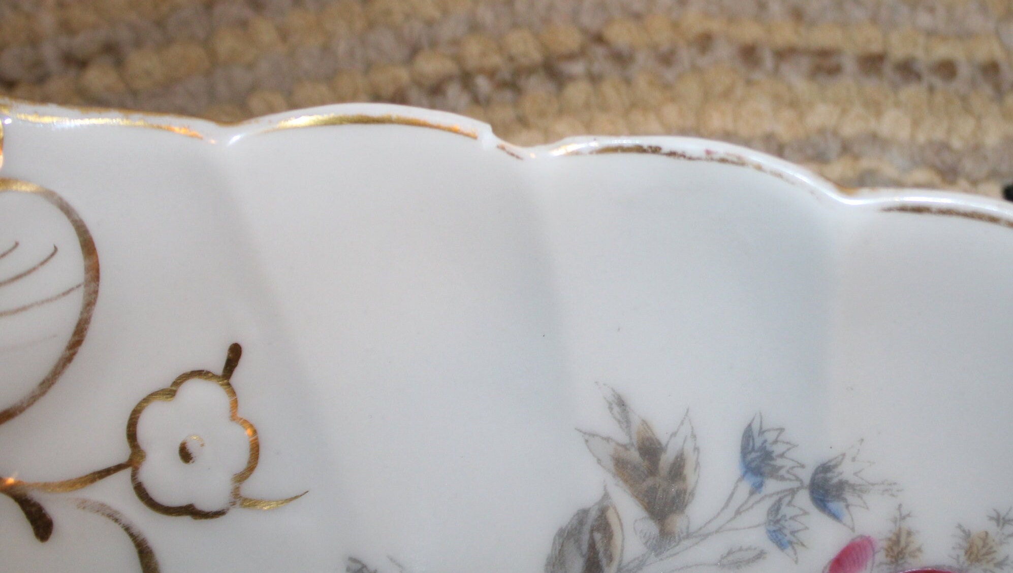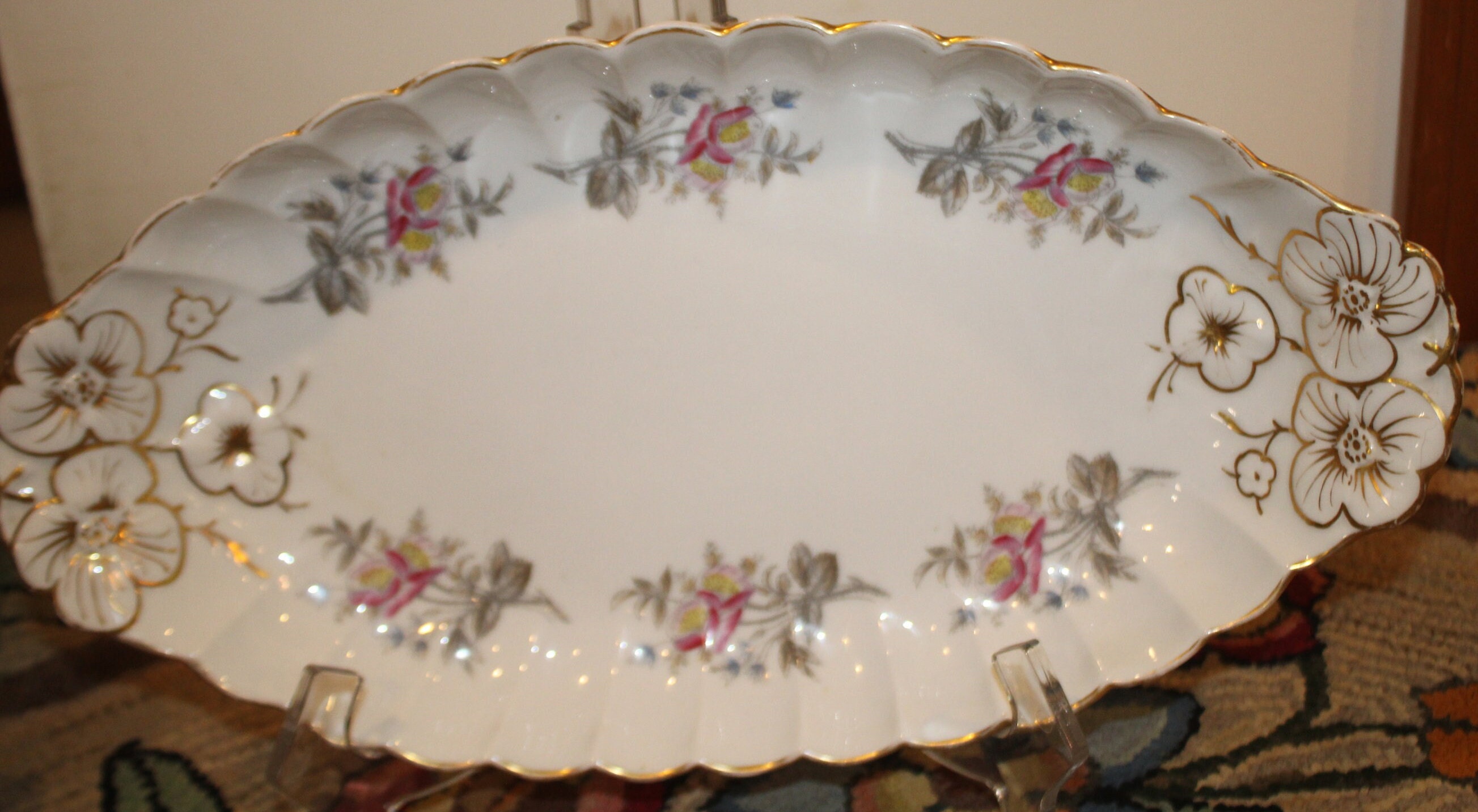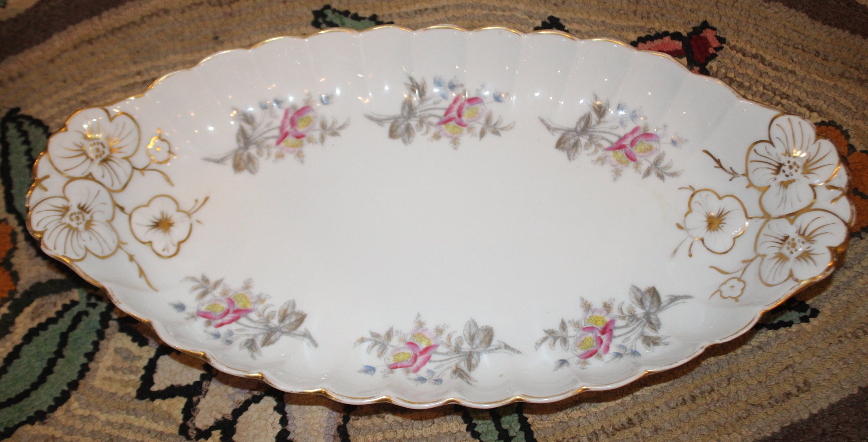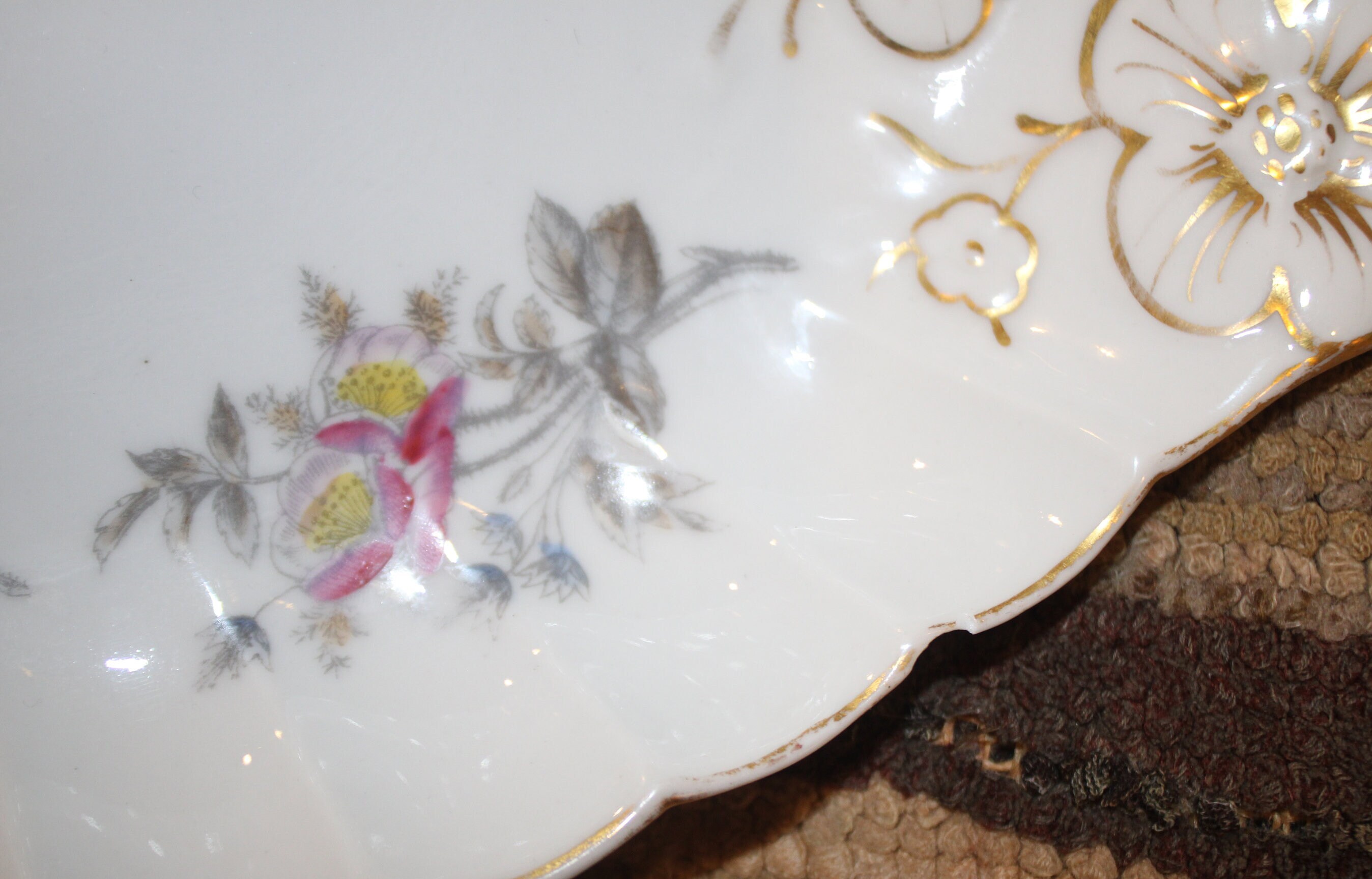 Limoge BD/ L Vegetable Dish with Gold Gilt and Florals- chipped