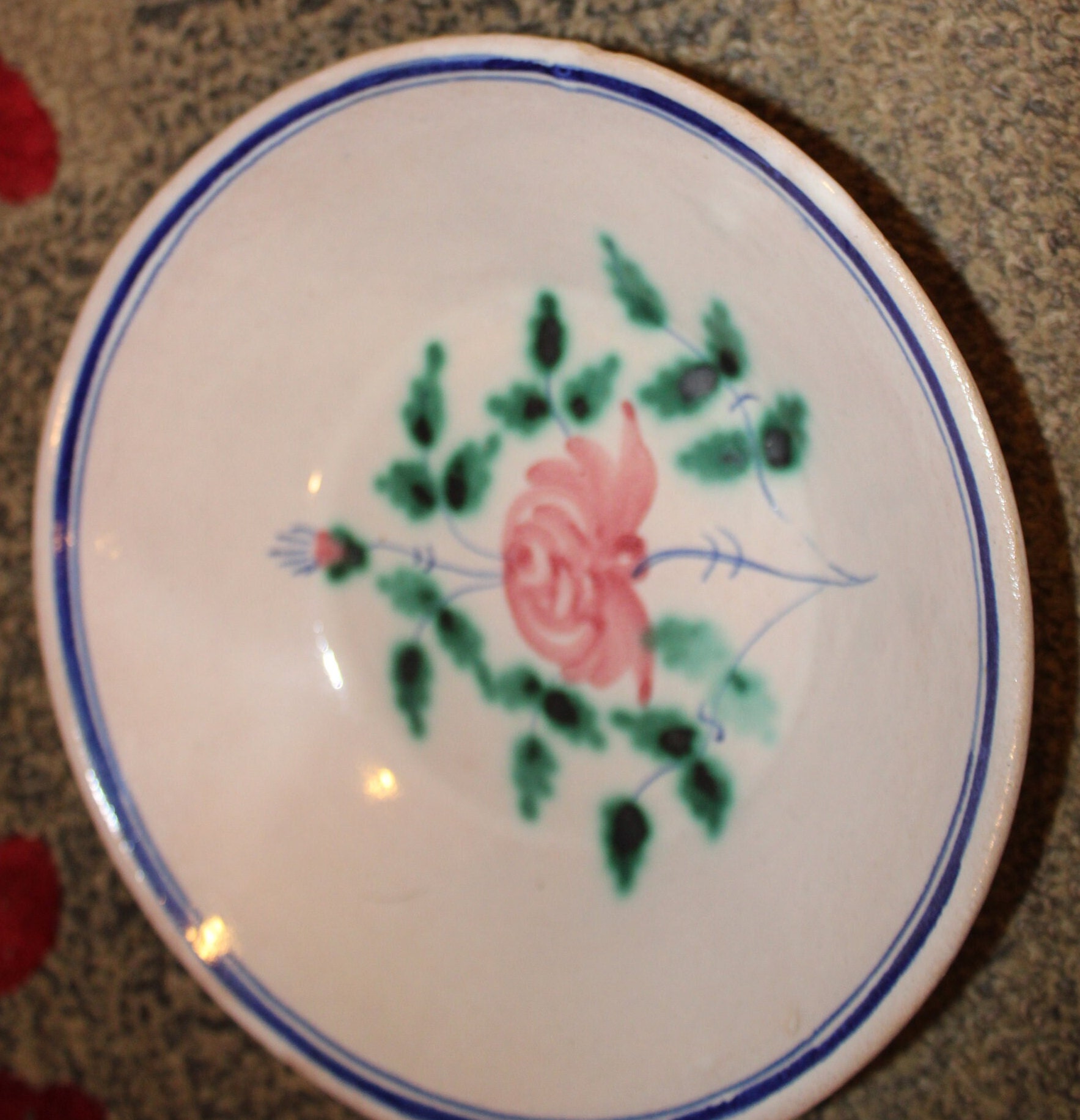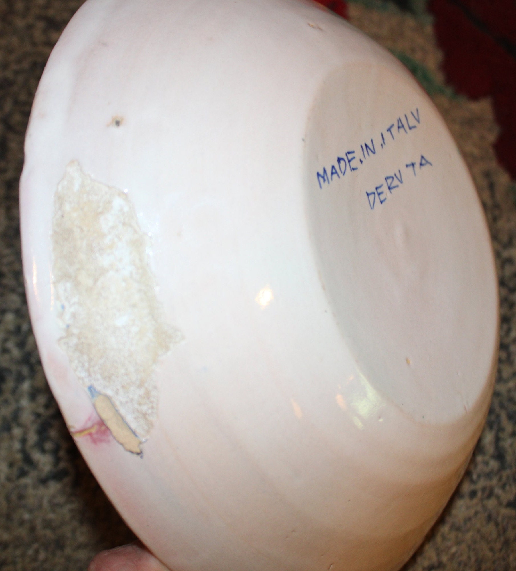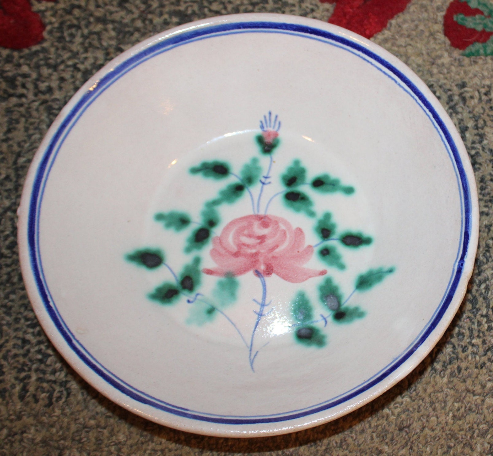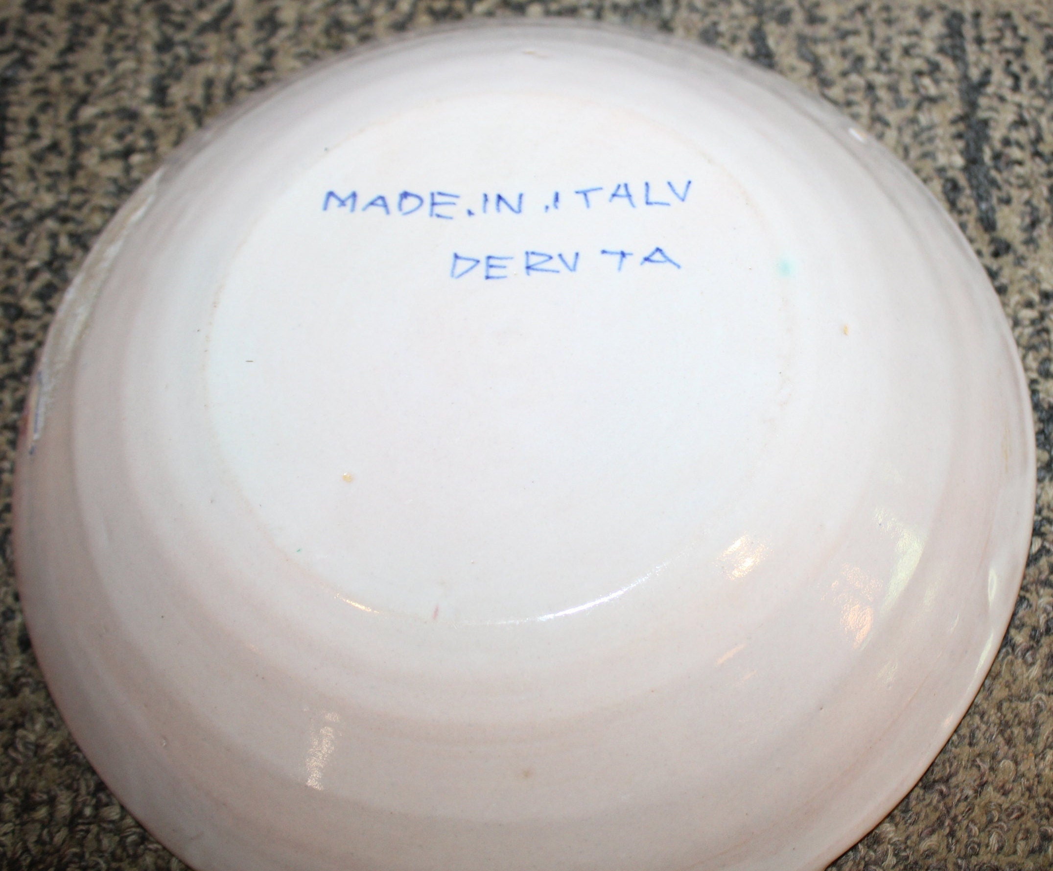 This Deruta Pottery Bowl would be great to use as a fruit bowl! It is hand painted with a rose motif and would fit in perfectly with your farm house decor! It is 7.5 in diameter with a depth of 1.25". There is a 2.5" glaze loss spot on the exterior of the bowl which can be seen in the last photo; otherwise there are no chips or cracks. Please message us if you have any questions- Thanks for looking!
