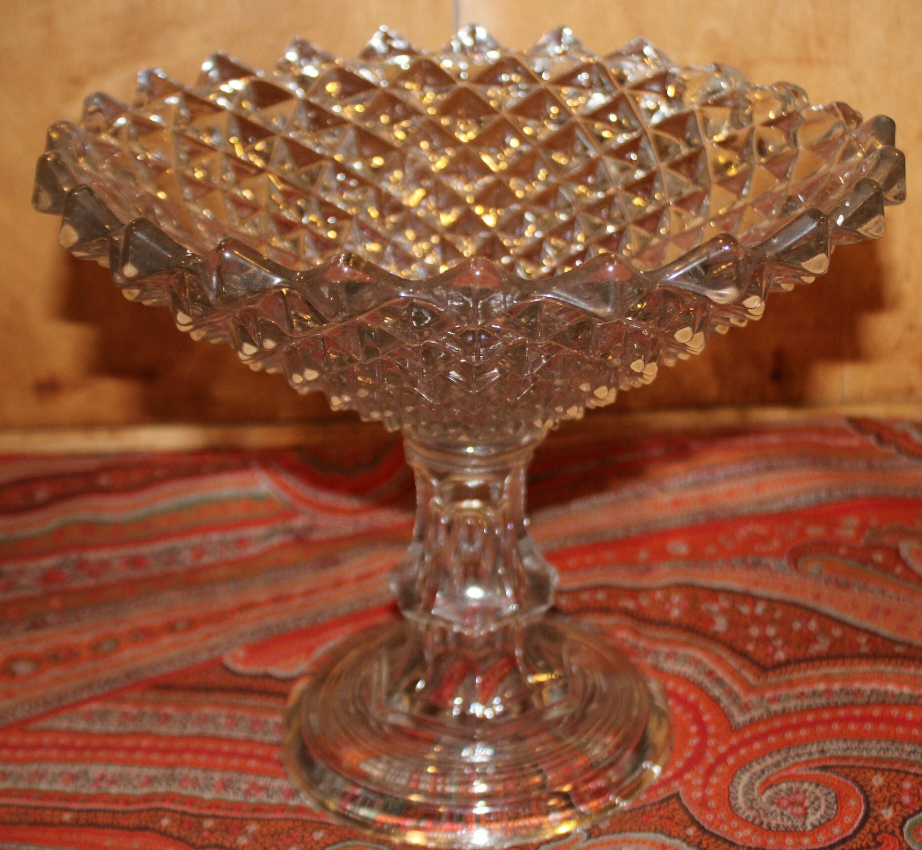Antique Sawtooth EAPG (early american pattern glass) Diamond Motif Compote- circa 1900's
