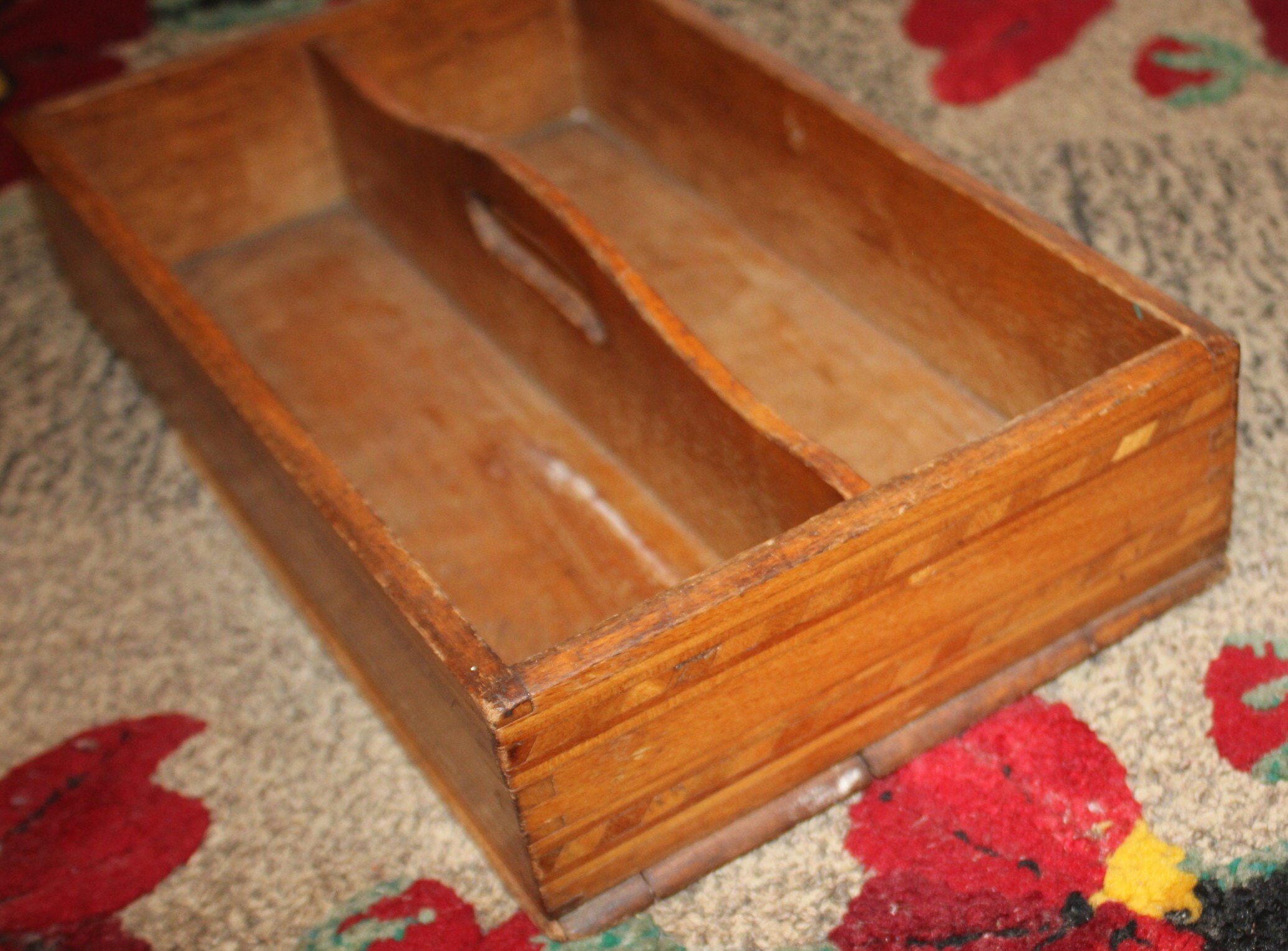 Antique Maple Marquetry Dovetailed Utensil Box – Circa 1920s