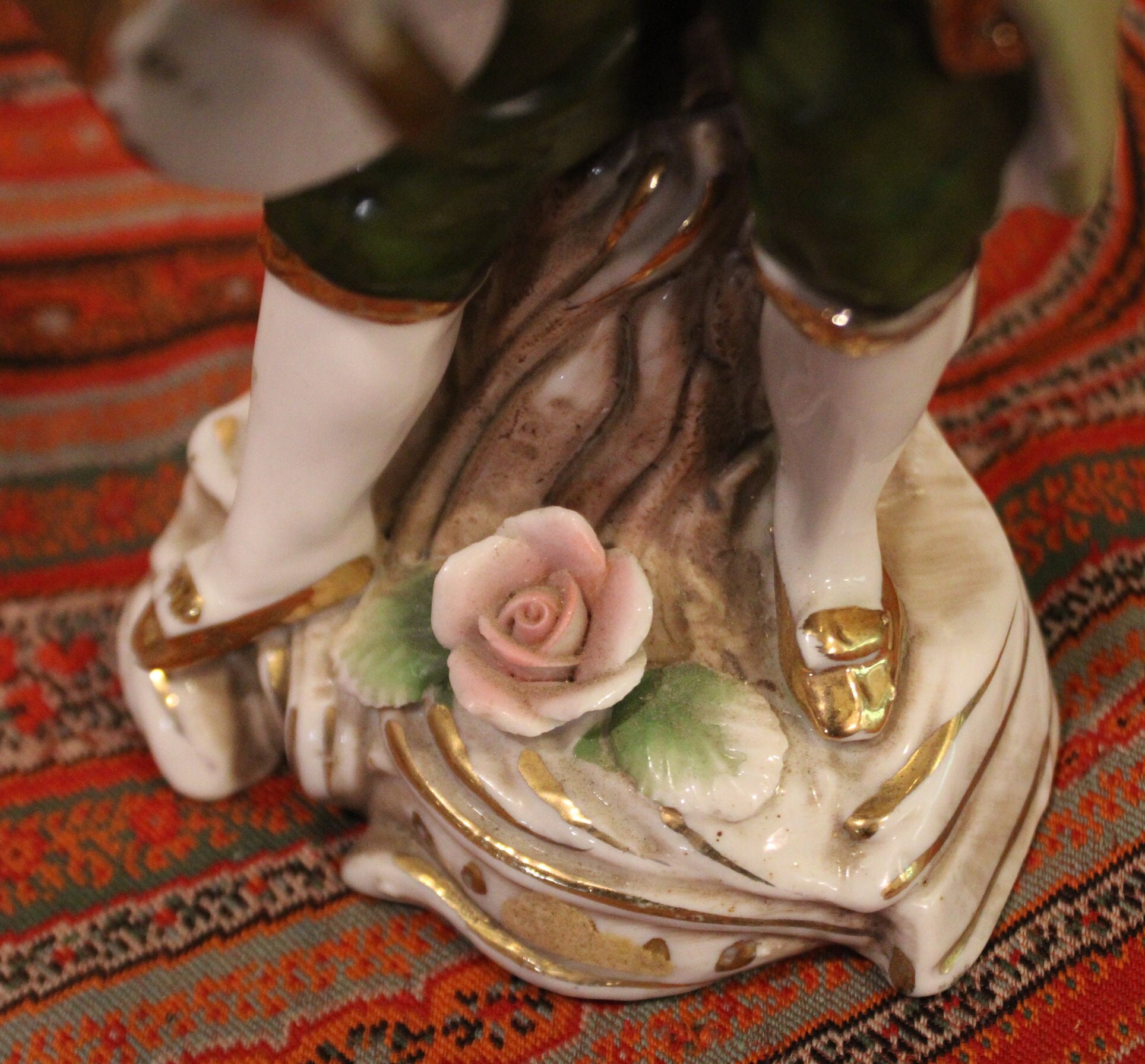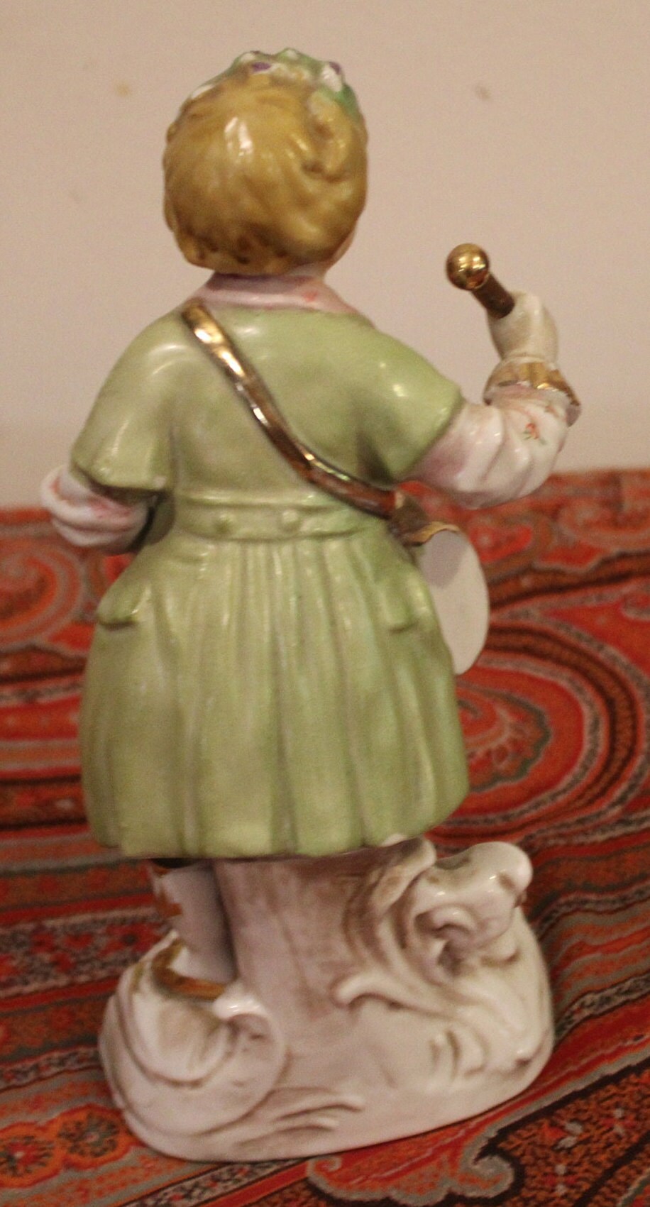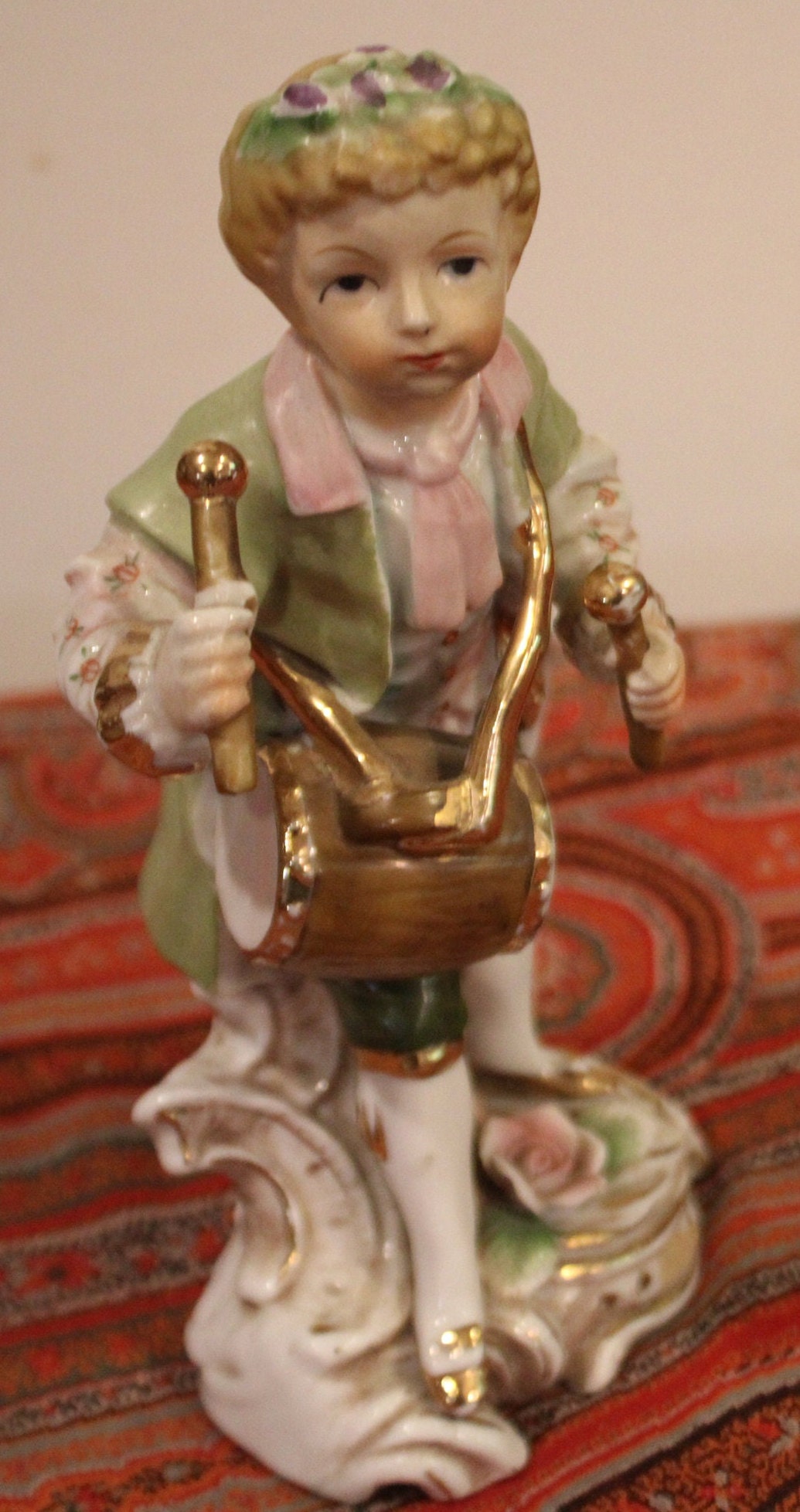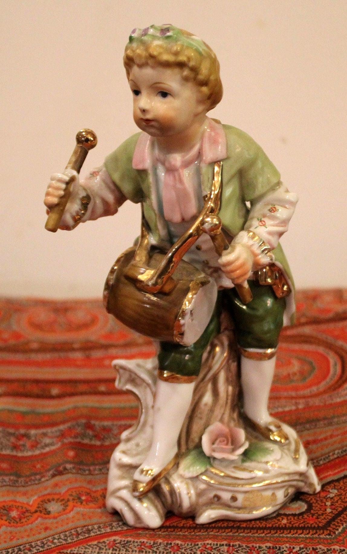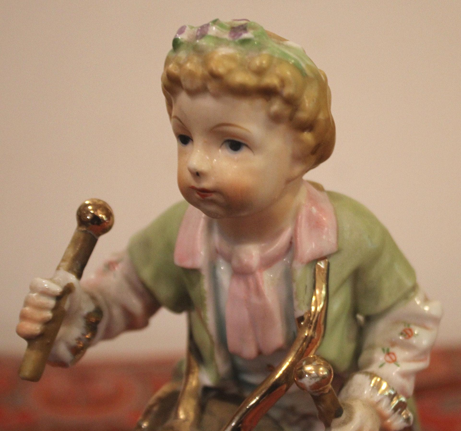 Beautiful Dresden/Sitzendorf Figurine of a Young Child Playing the Barrel Drum from Germany is truly a beautiful work of art! The gold gilt and hand painting are exceptional. Please examine our photos- the figurine stands 8" tall x 3" wide. There are no chips or cracks- in gorgeous condition! Please message us if you have any questions- Thanks for looking!