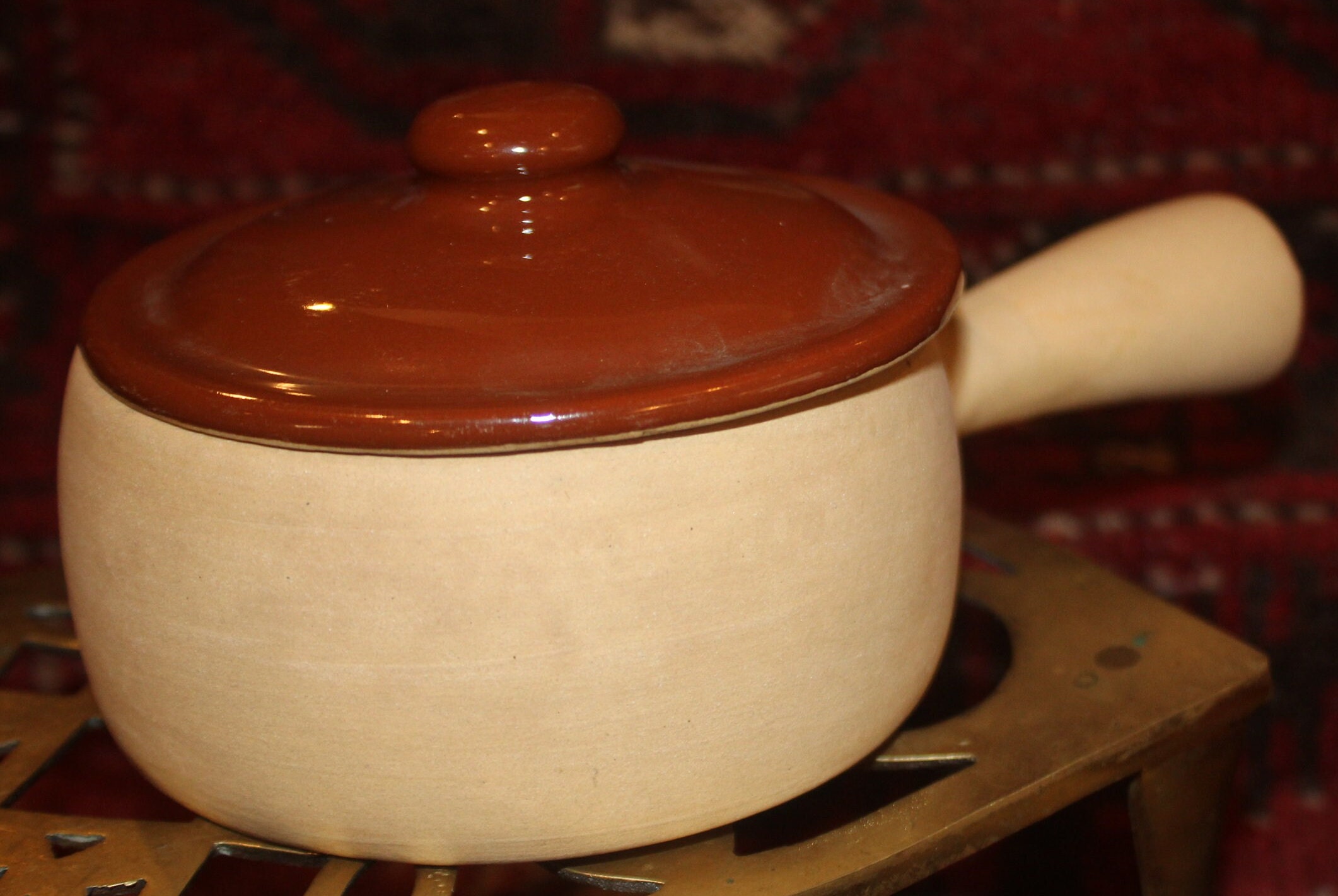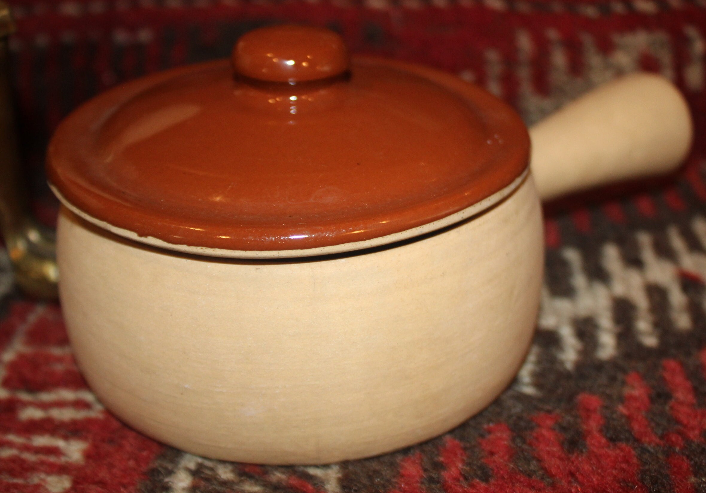 Vintage Brownware Pottery Crocks with Lids, Set of 2