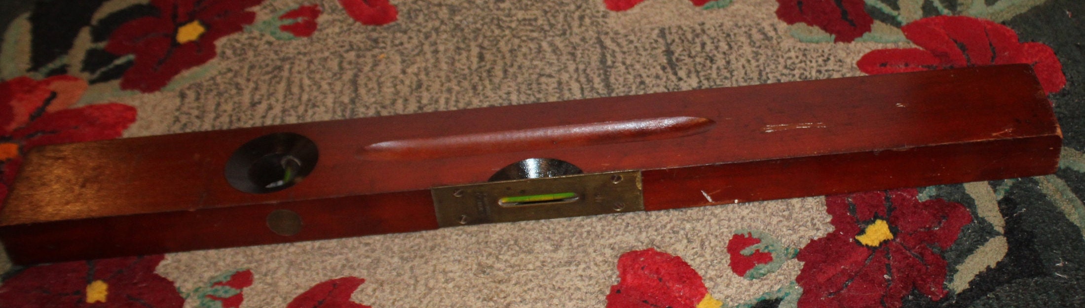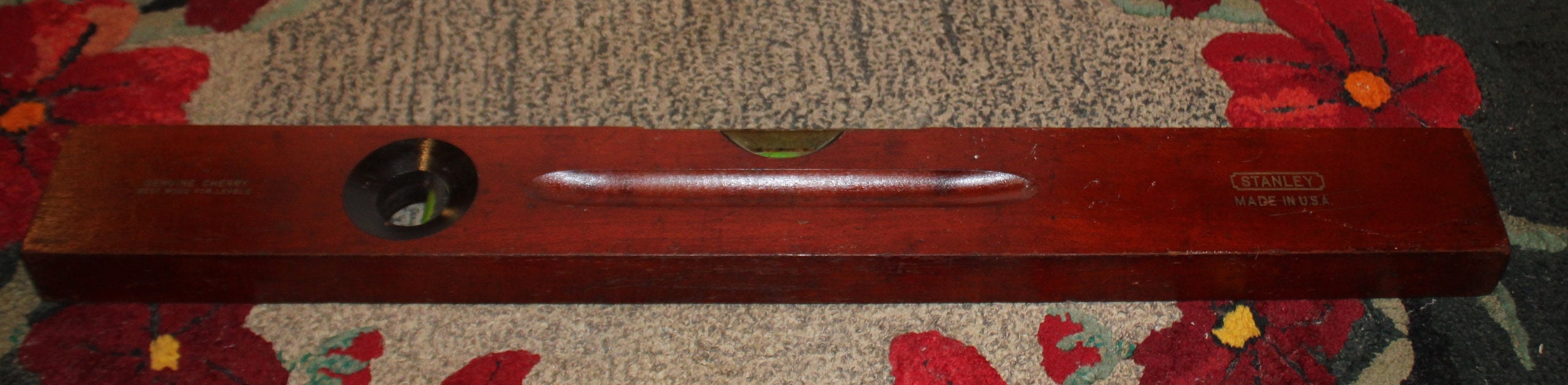 This Very Nice Vintage 24" wooden Stanley No. 0 Cherry Level would look great hanging in your wood working shop! The hardware is brass and the wood is genuine cherry; the level is in great working order. It measures 2ft in length. The wood has some scuffing from years of use. Please message us if you have any questions- thanks for looking!