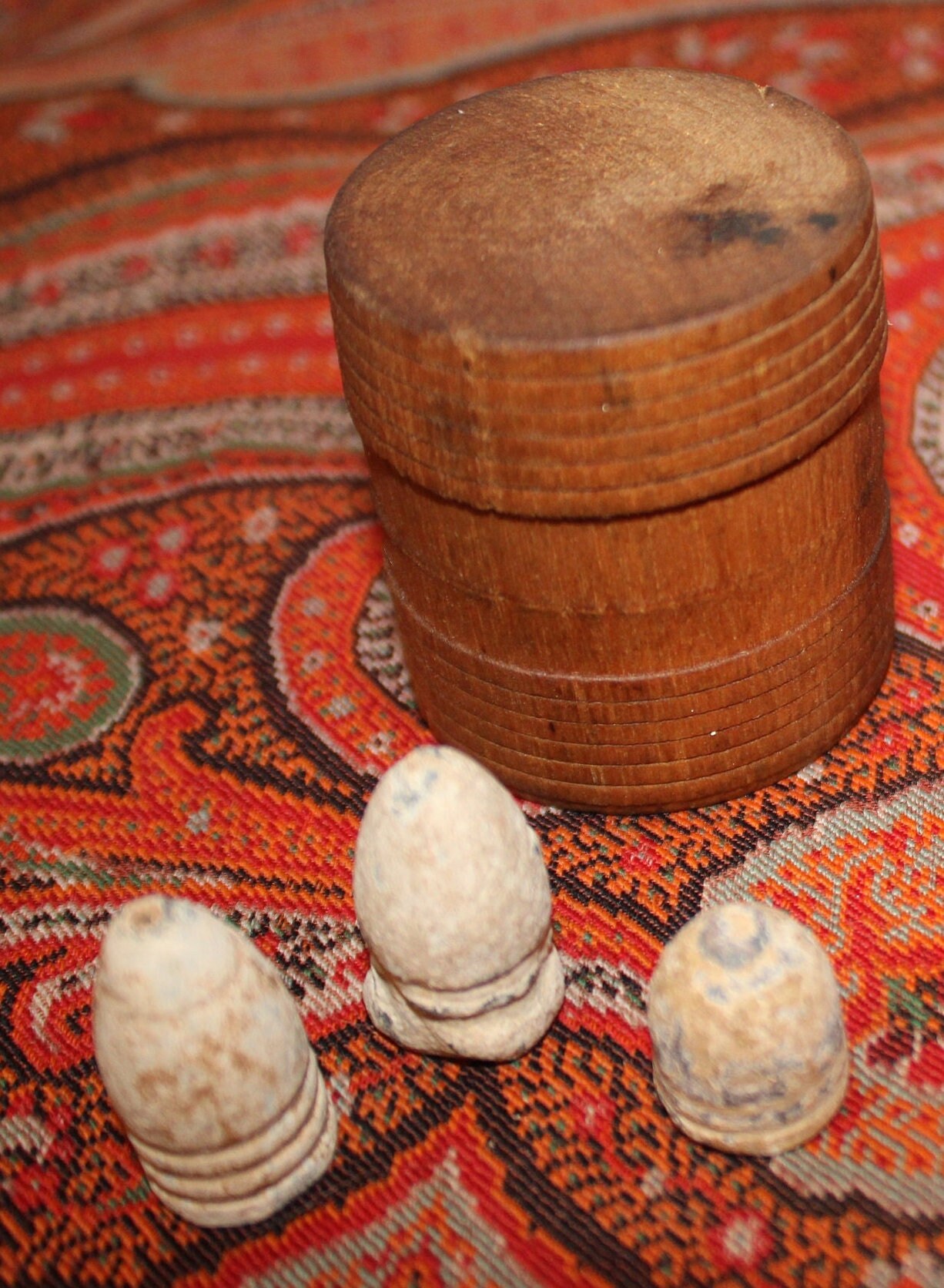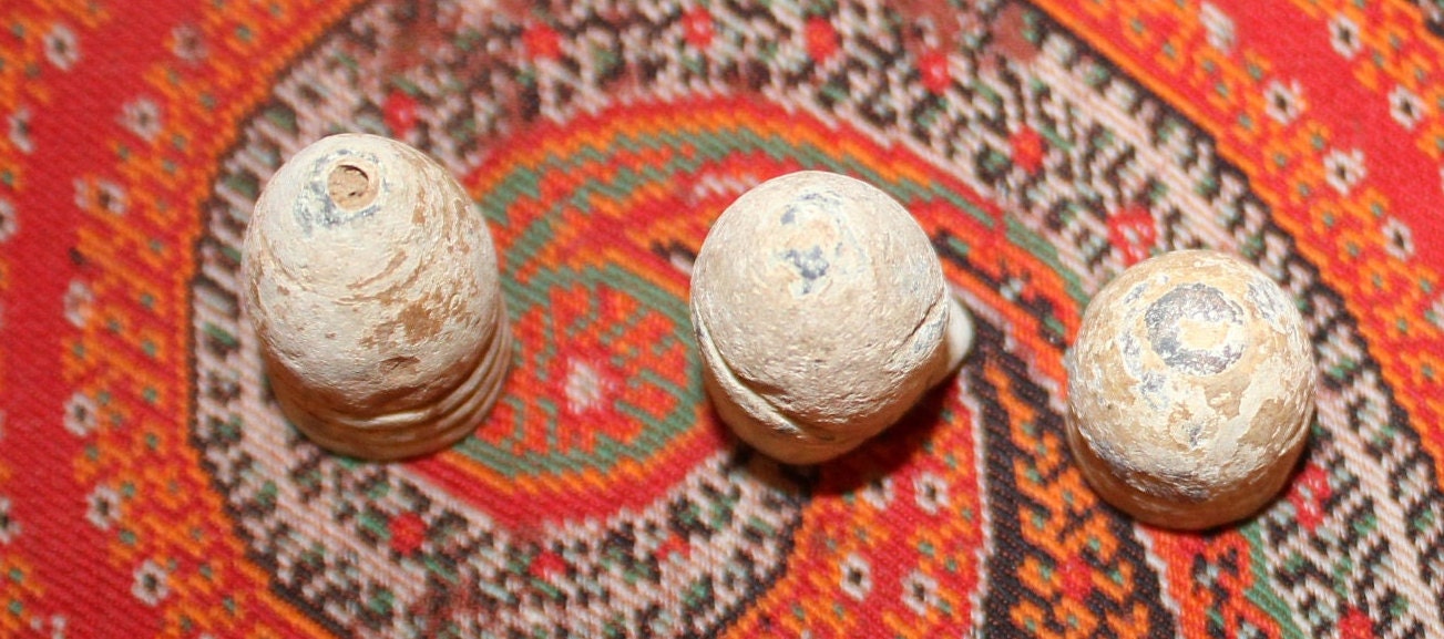 This Collection of Three Antique Civil War Bullets in a Treen Spice Container from the 19th century would be a great addition to your Civil War memorabilia. Included in your purchase is a .58 caliber three ring Confederate Gardner, a .58 caliber two ring Confederate Gardner, and .54 Caliber Burnside Carbine. There are no brass cartridges. The treen spice container is in great condition- most likely from the 1900's. Please message us if you have any questions- Thanks for looking!
