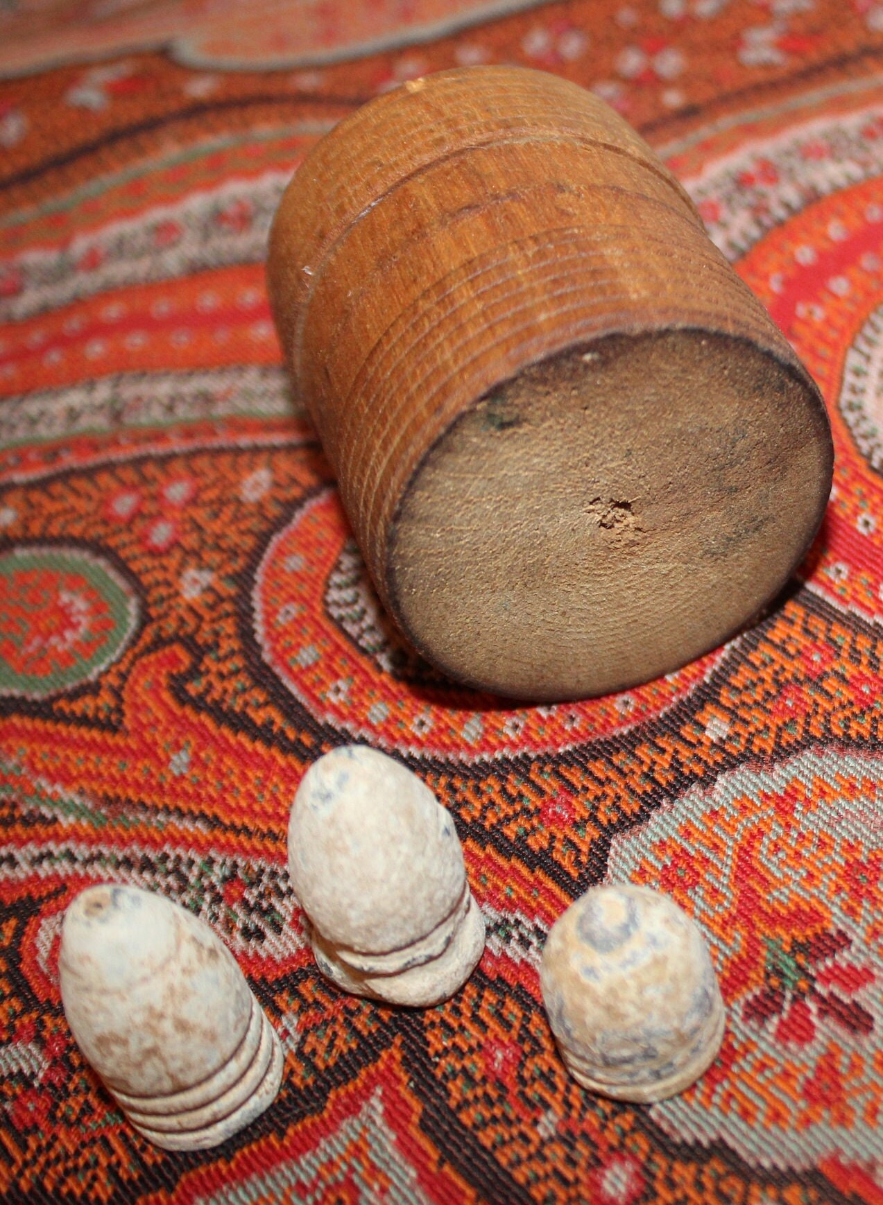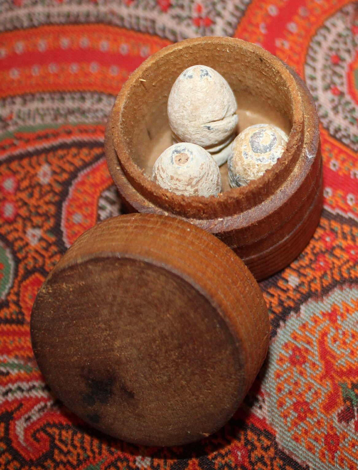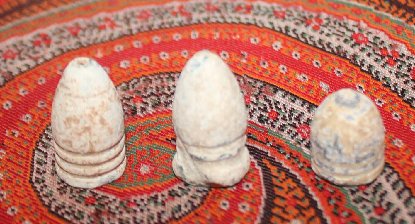 3 Antique Civil War Bullets in a Treen Spice Container- .58 Caliber Confederate Gardners and a .54 Caliber Burnside Carbine- 19th Century