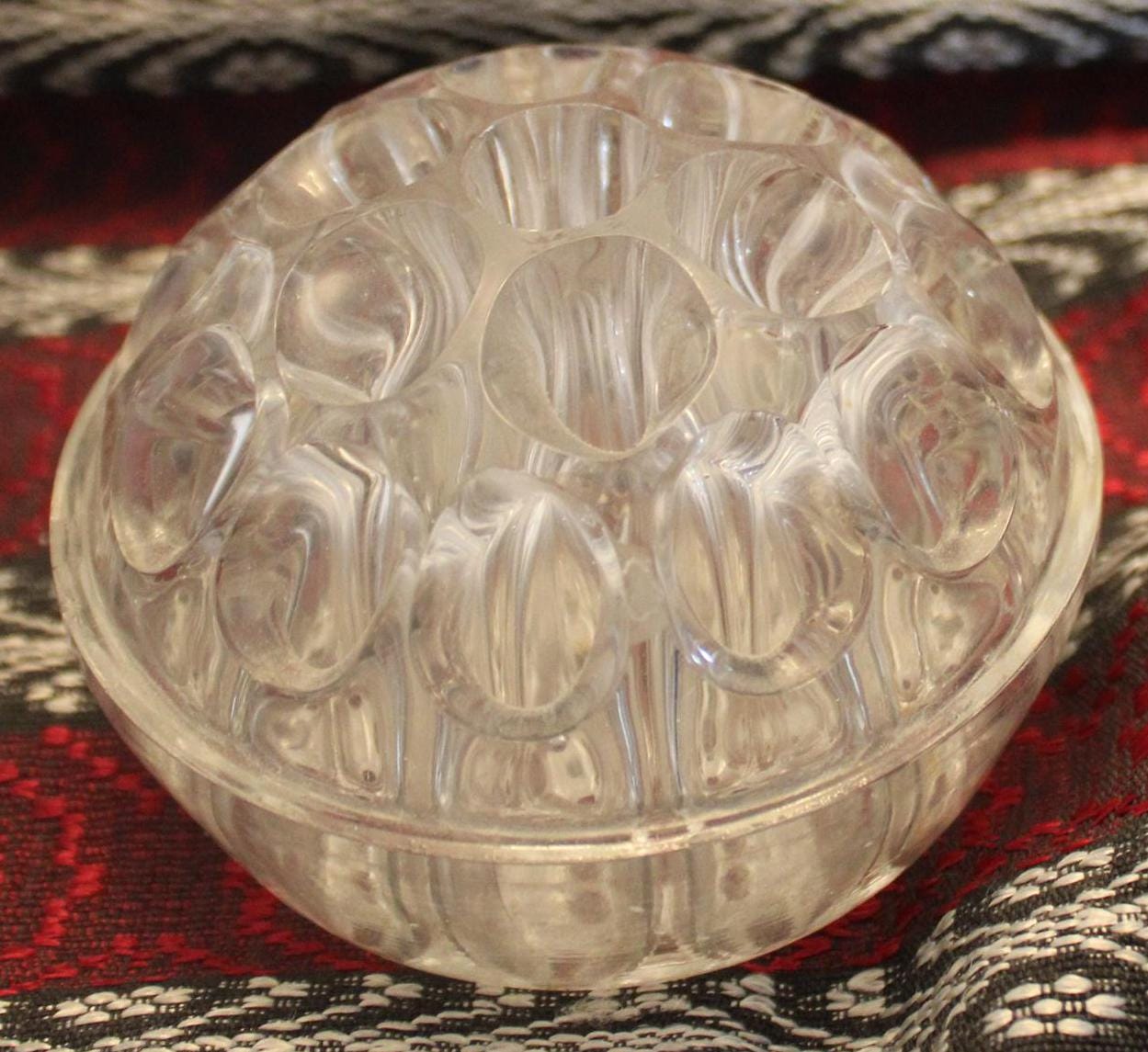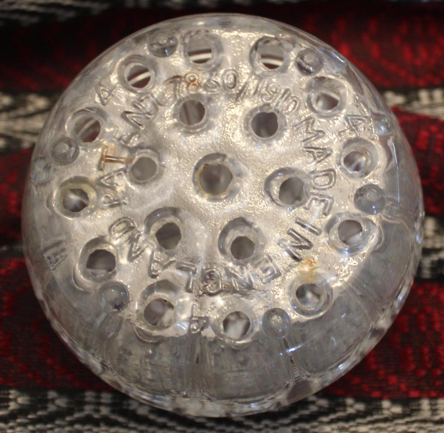 Antique 19-Hole Glass Flower Frog – Made in England, Bouquet Decor