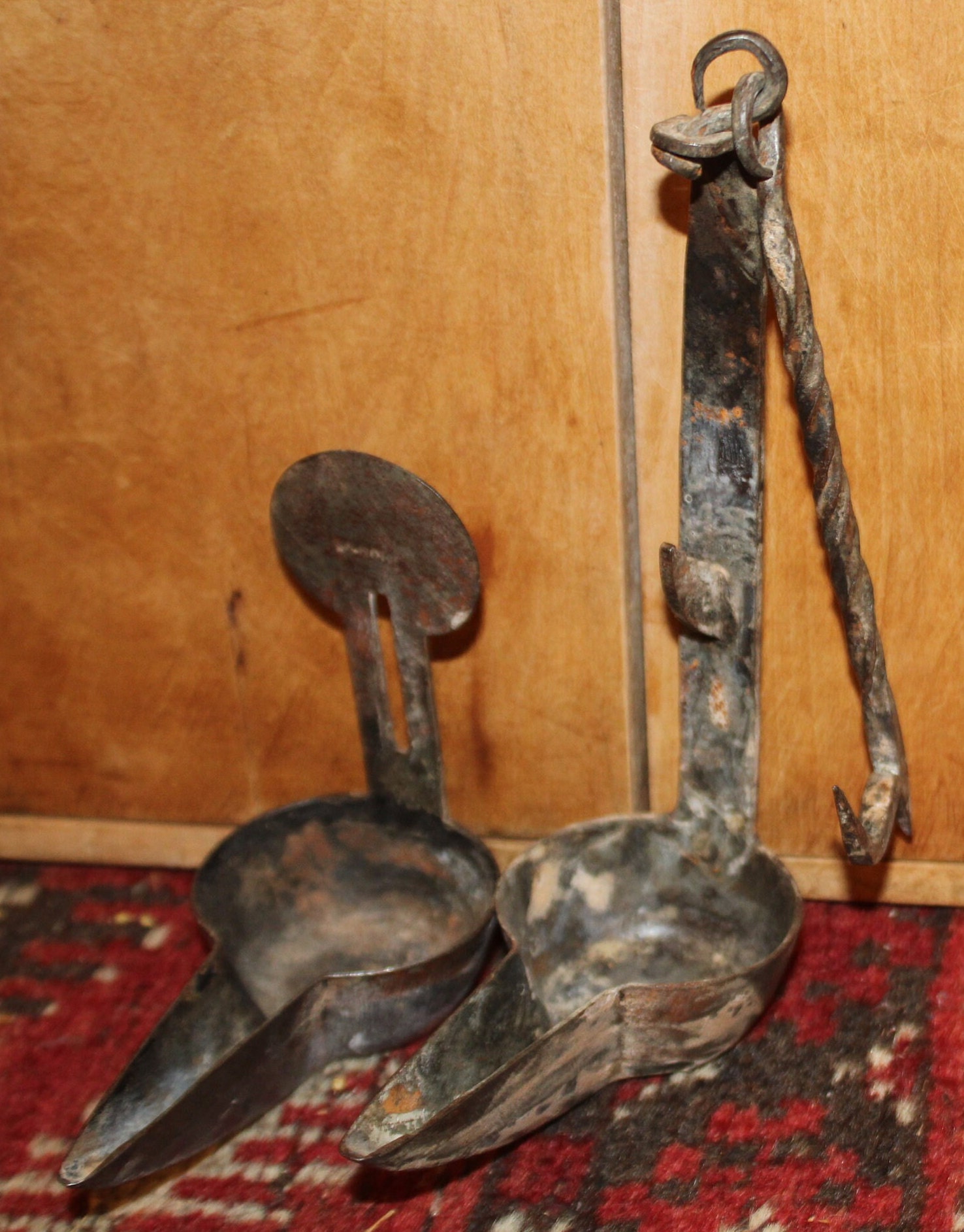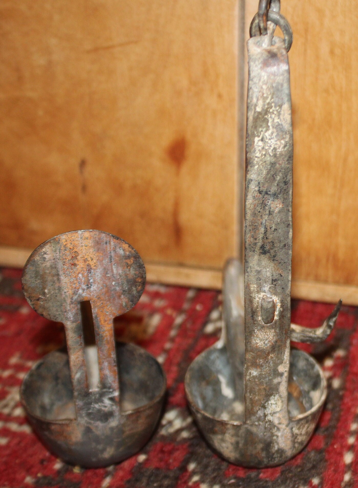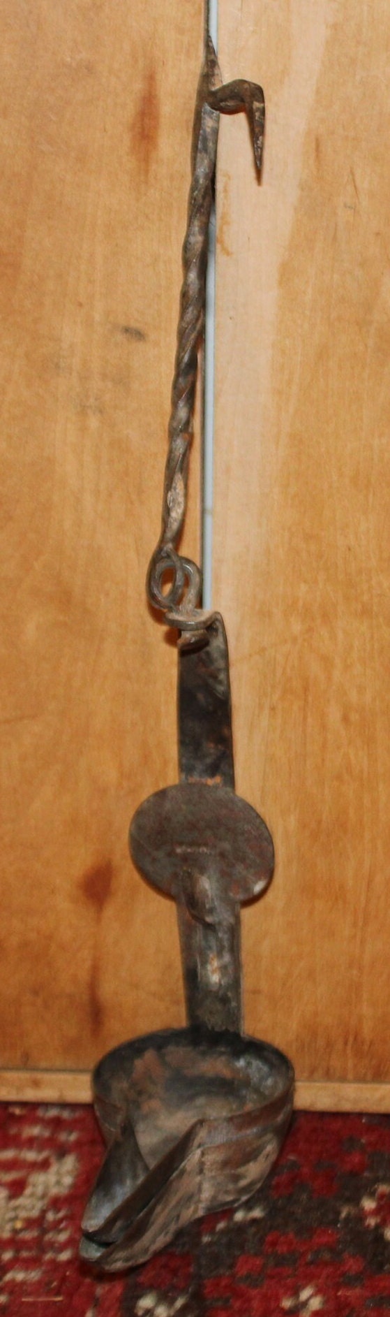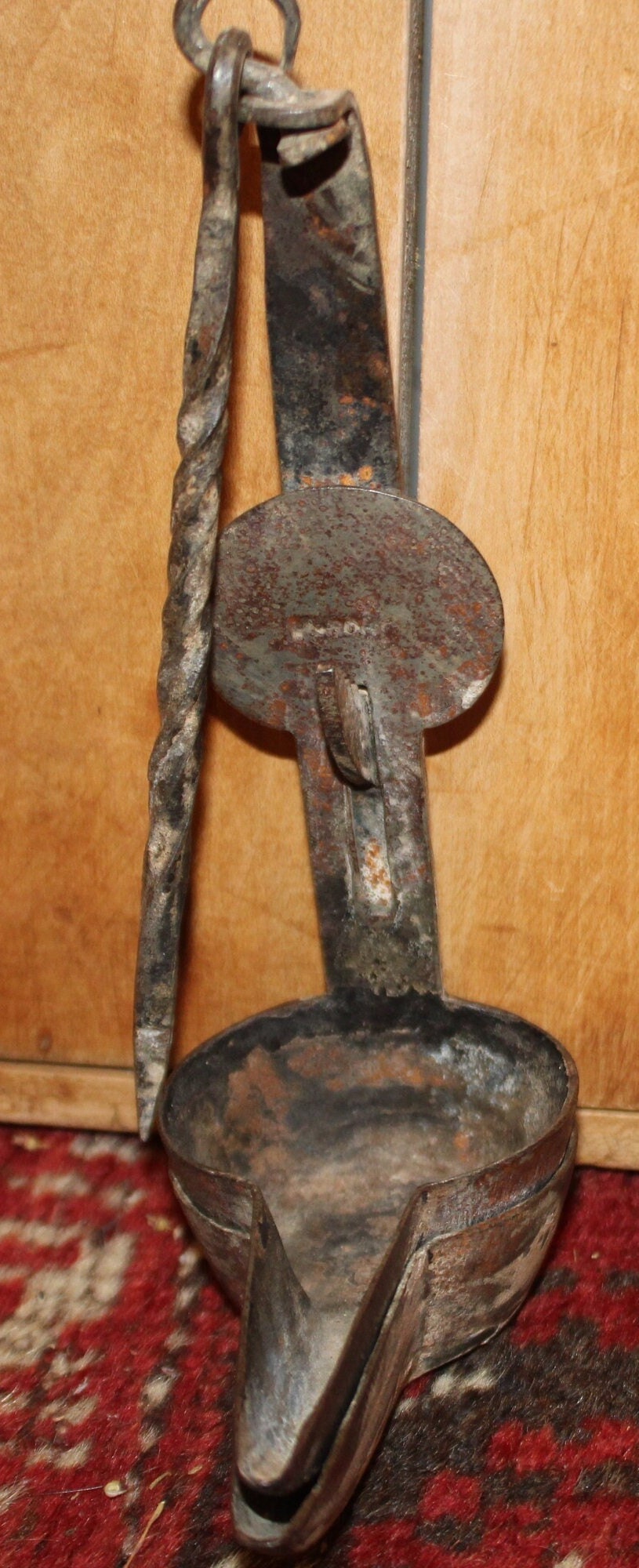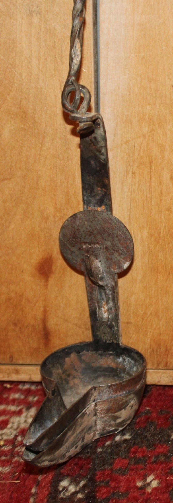 19th c. Hand Forged Iron Betty Lamp – Antique Double Cup Design- Antique Lighting