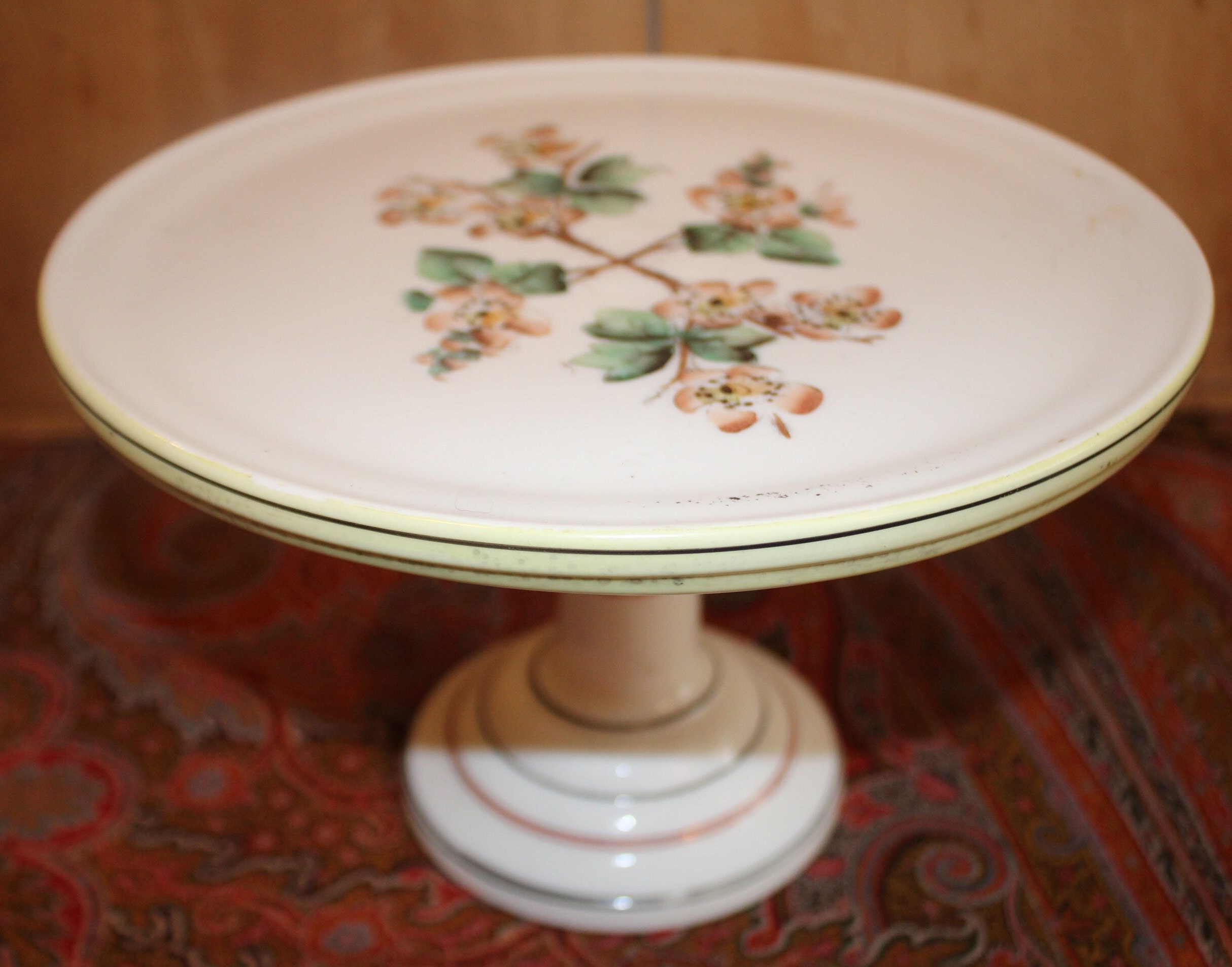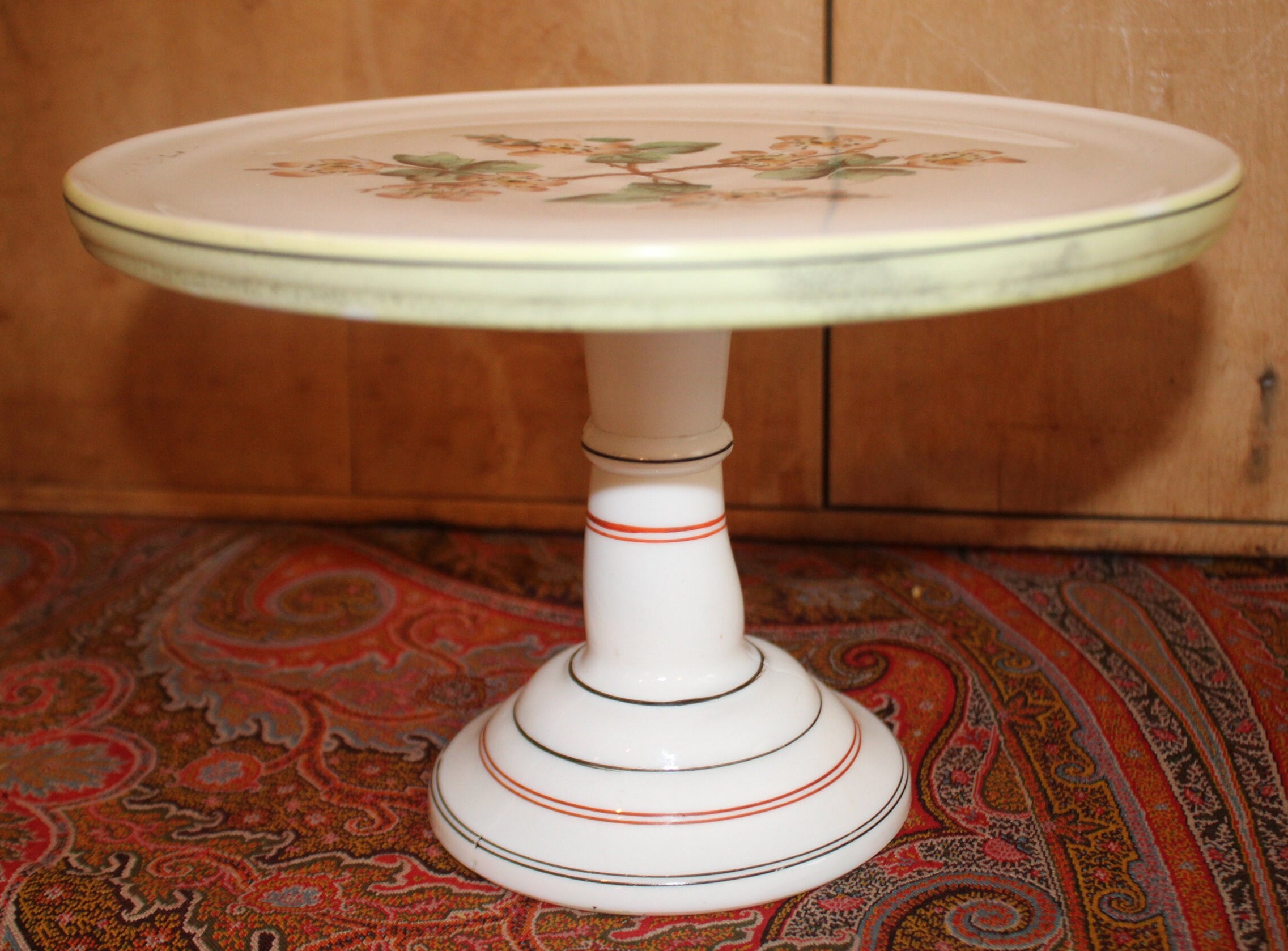 Challinor Taylor Handpainted Milk Glass Cake Stand – Dogwood Floral, French Farmhouse