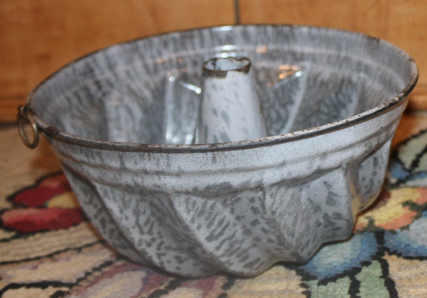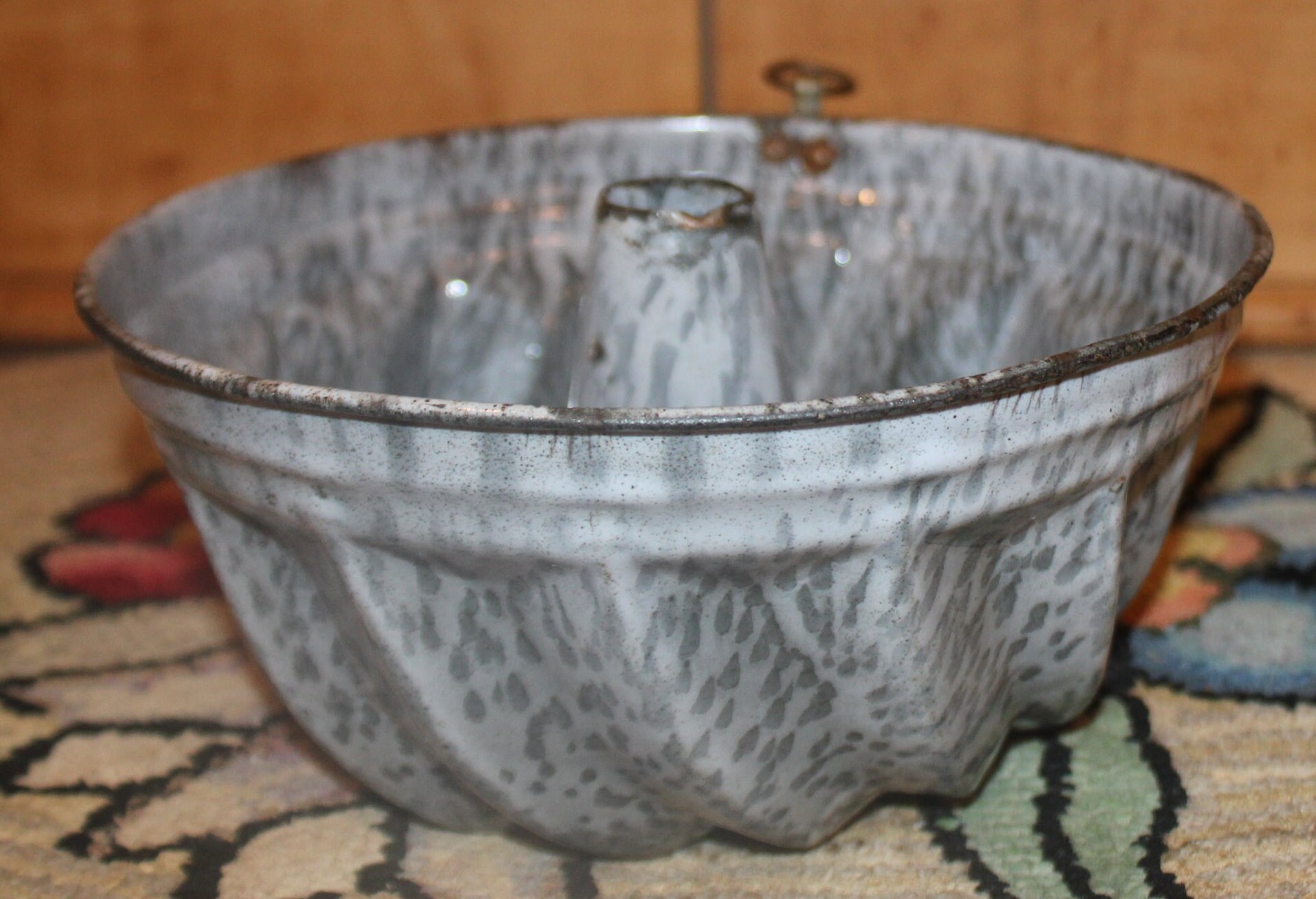 Antique Turks Head Graniteware Pudding Mold, 19th Century Farmhouse Decor