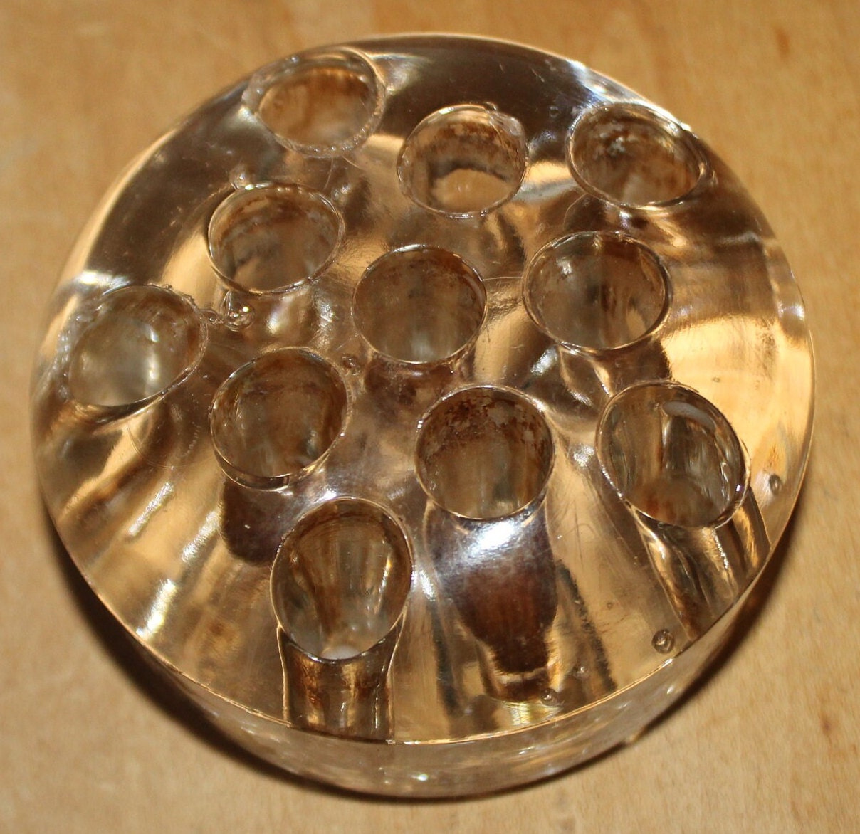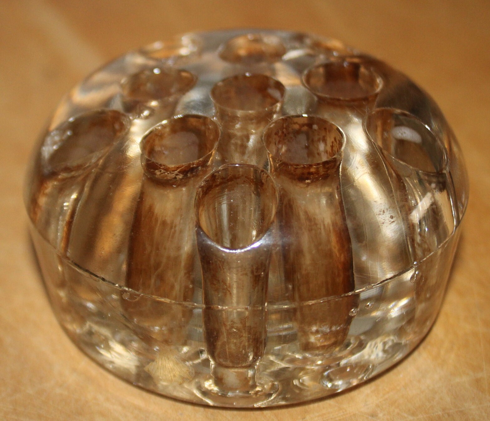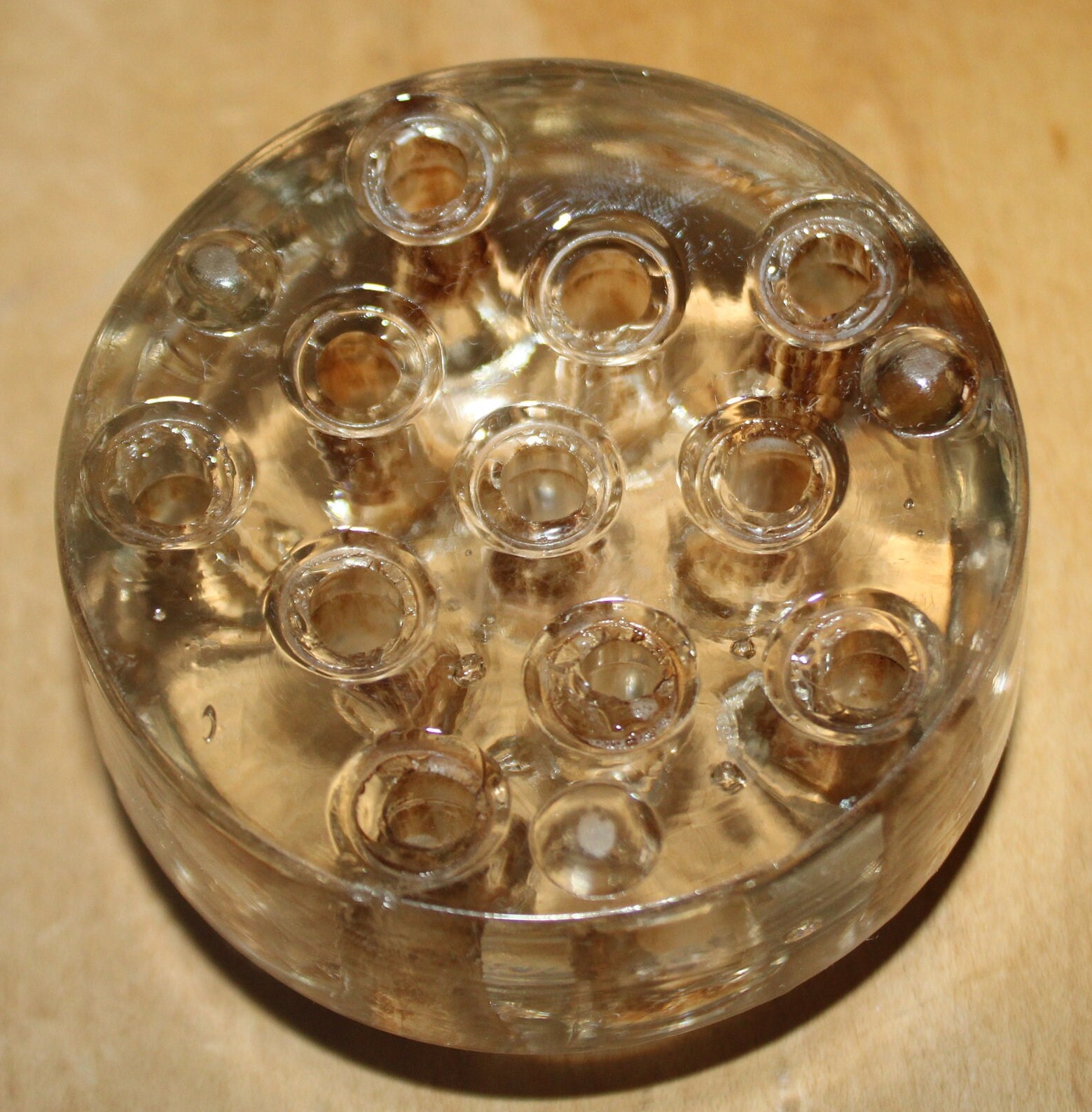 Vintage Glass Flower Frog, 11-Hole Floral Arranger