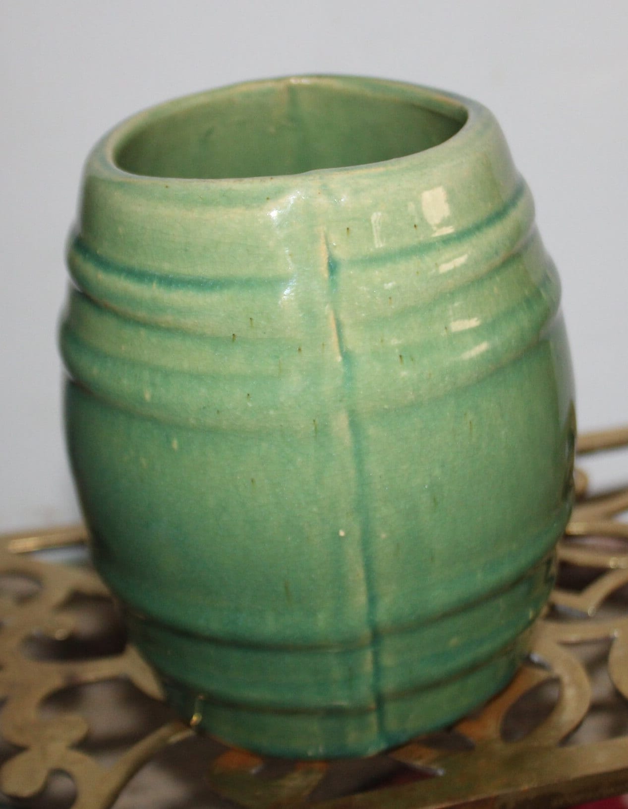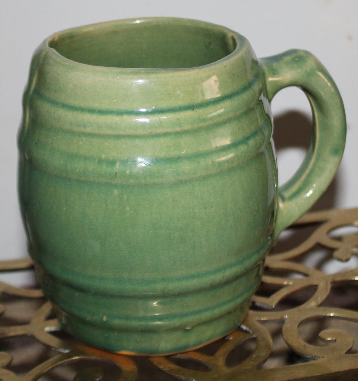 Vintage Sage Green McCoy Pottery Barrel Mug - 1920s