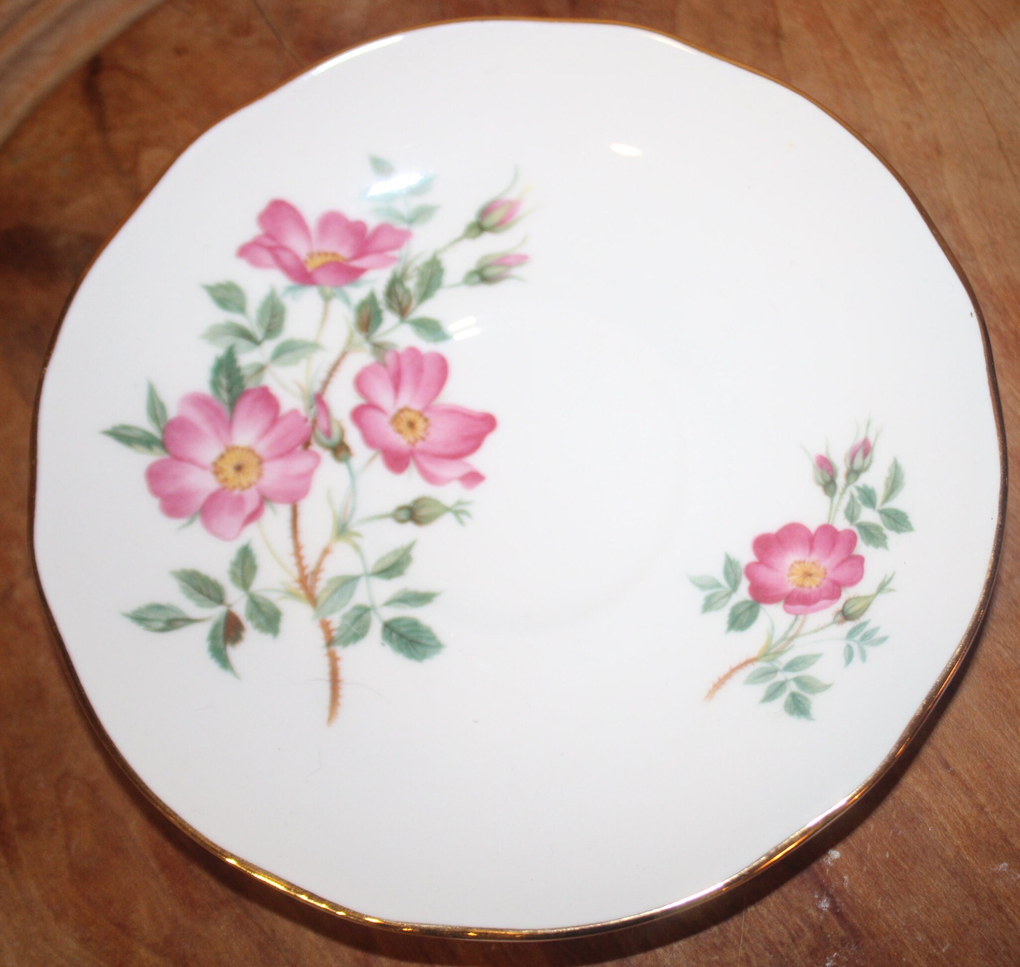 Gorgeous Vintage Wild Rose of Alberta "Duchess" Bone china Tea Cup and Saucer would be a stunning addition to your teacup collection! Sweet smelling wild roses gracefully accent the cup and saucer. The cup is 3.5" x 2.75"; the saucer is 5.75" in diameter. There are no chips, cracks, or hairlines. Please message us if you have any questions. Thank for looking!