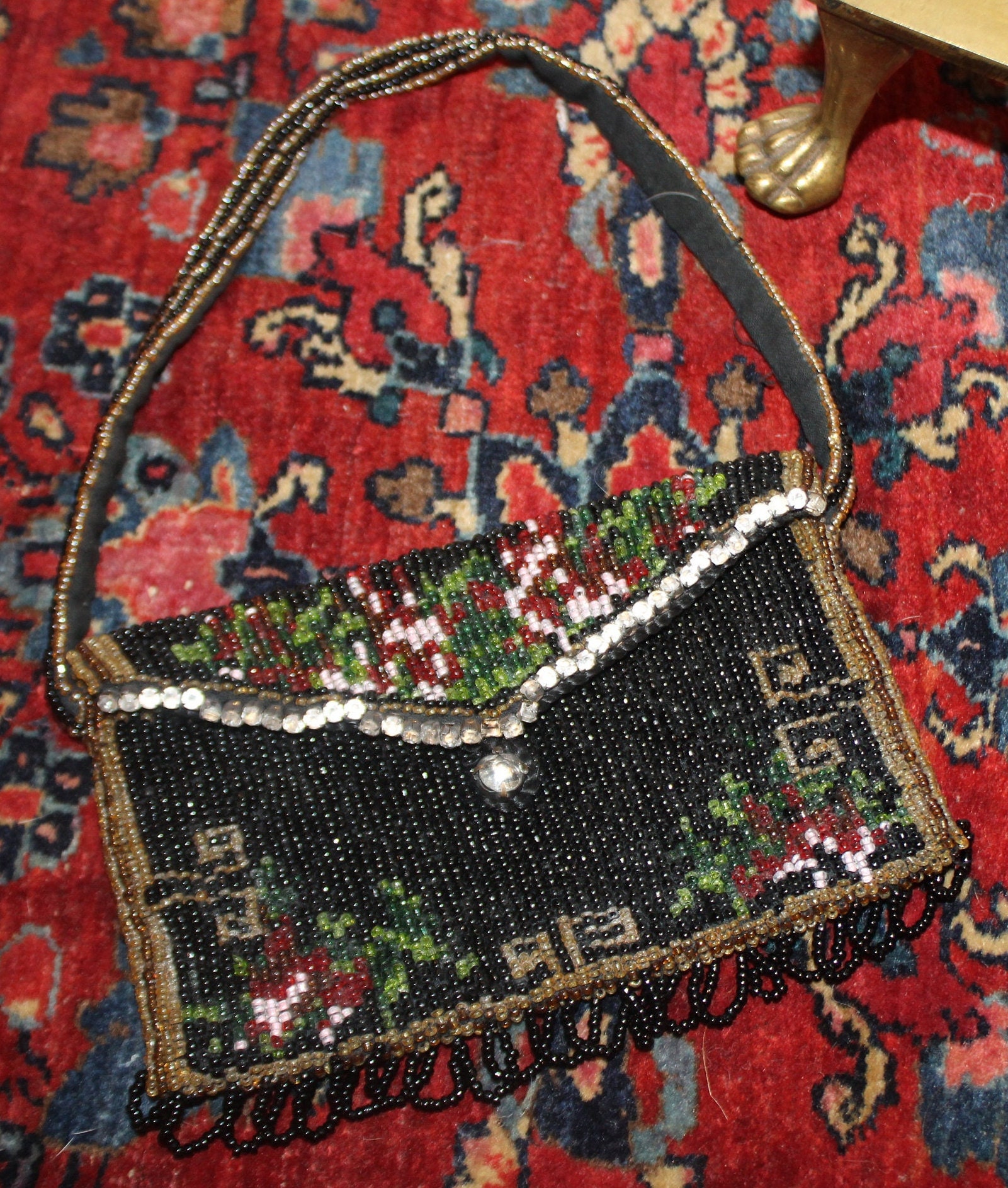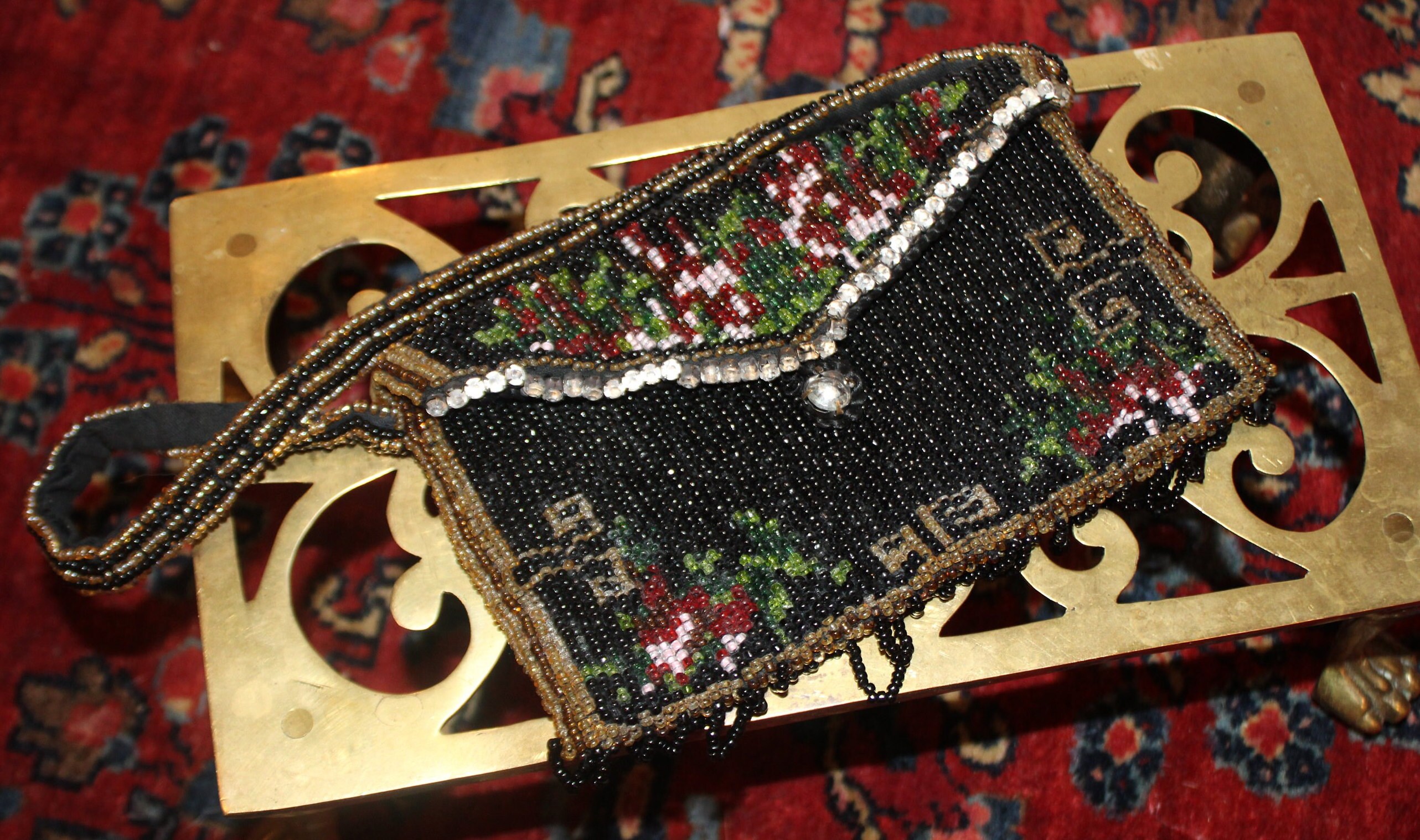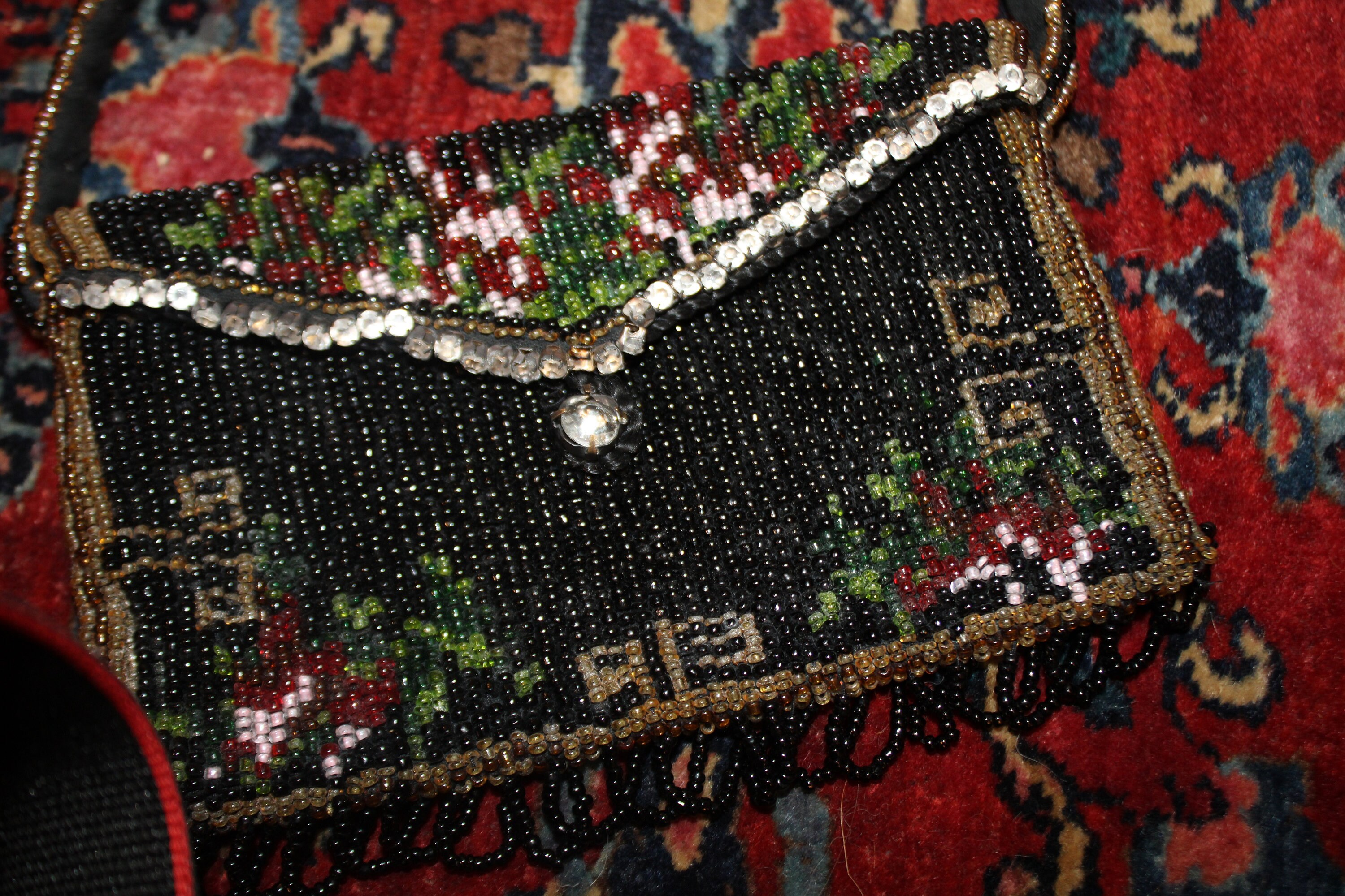 Vintage Black Beaded Evening Purse – Floral Glass Bead Clutch