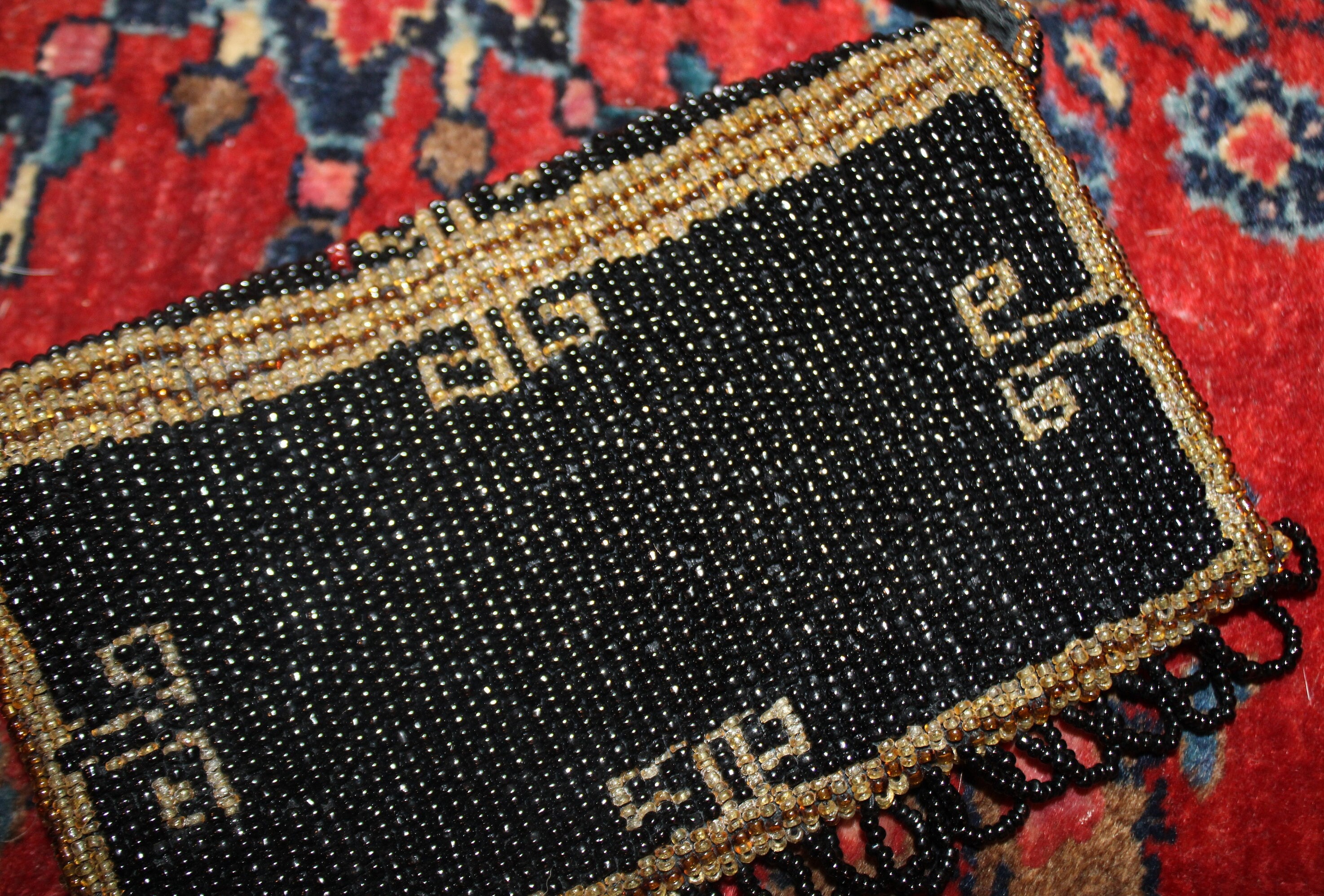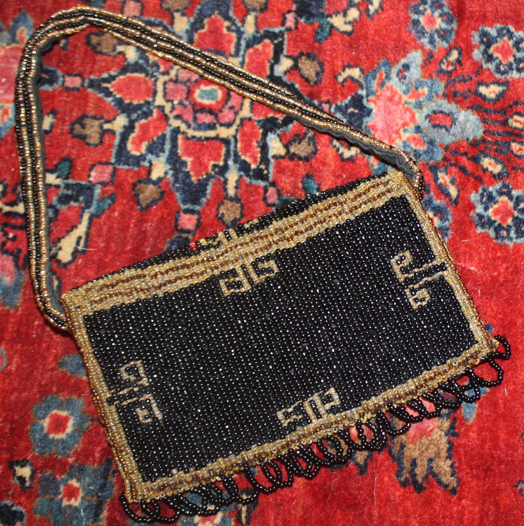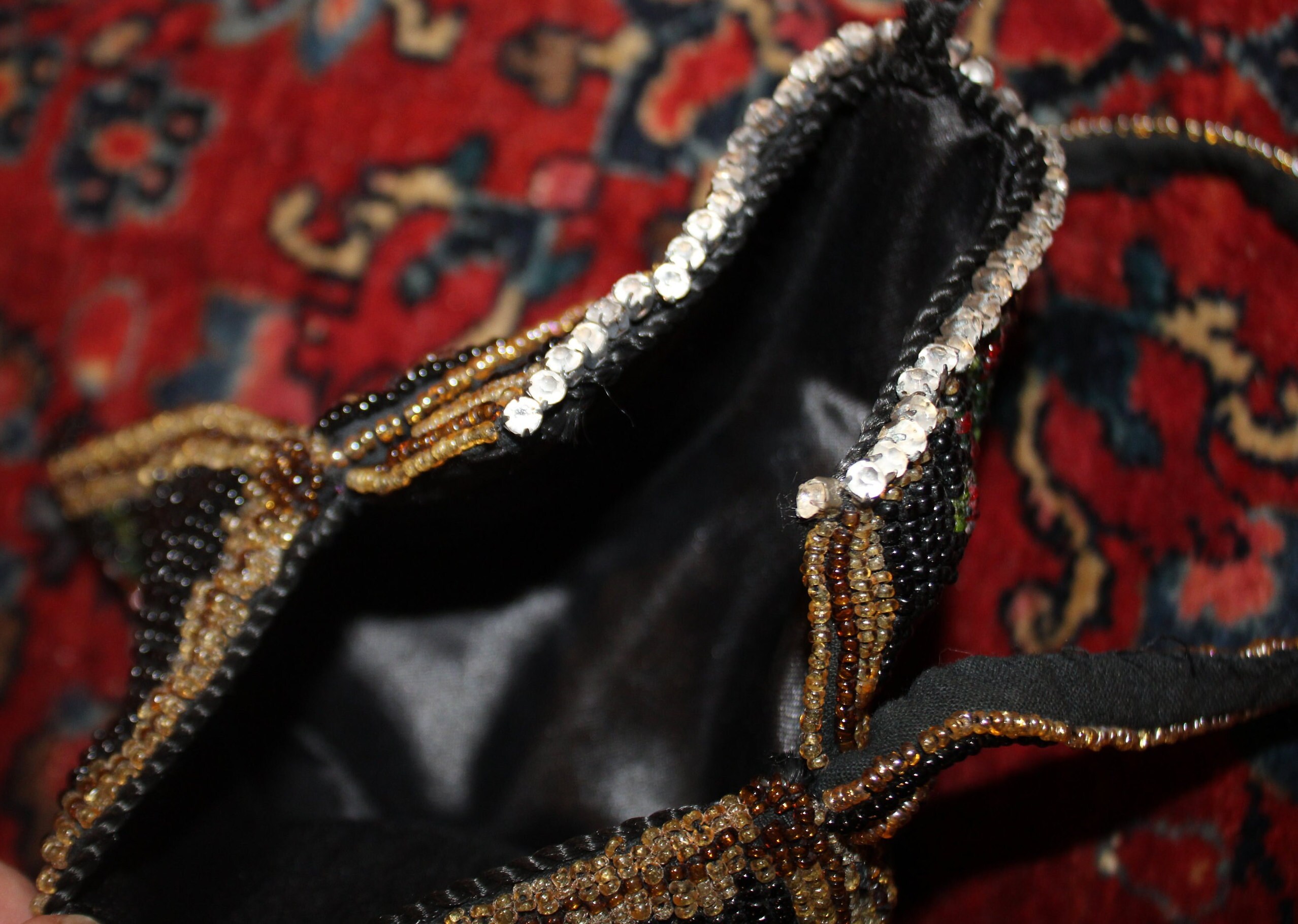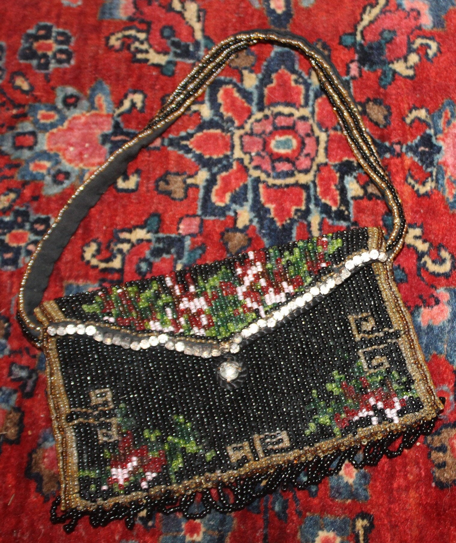 Vintage Black Beaded Evening Purse – Floral Glass Bead Clutch
