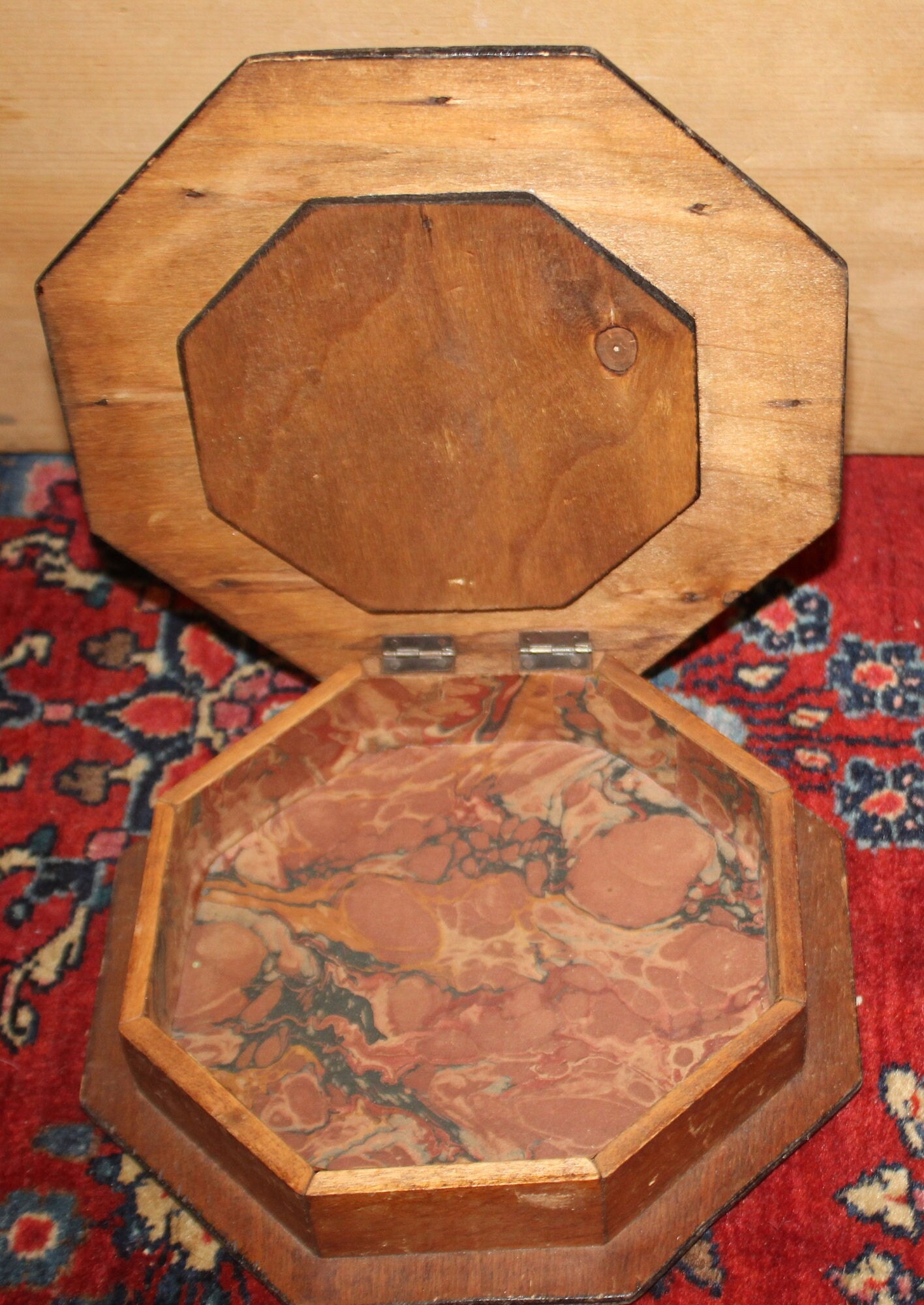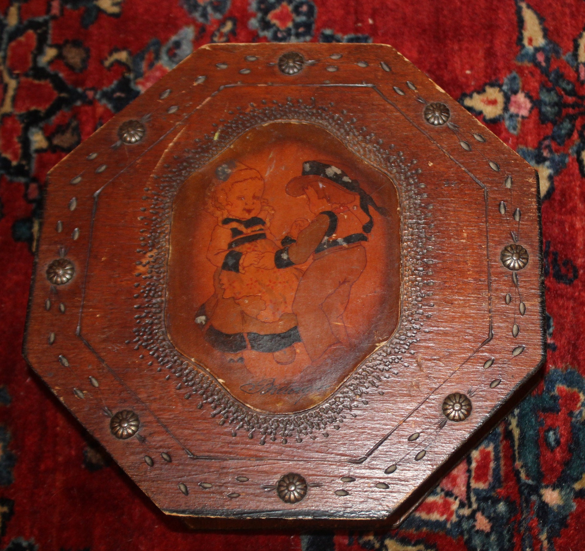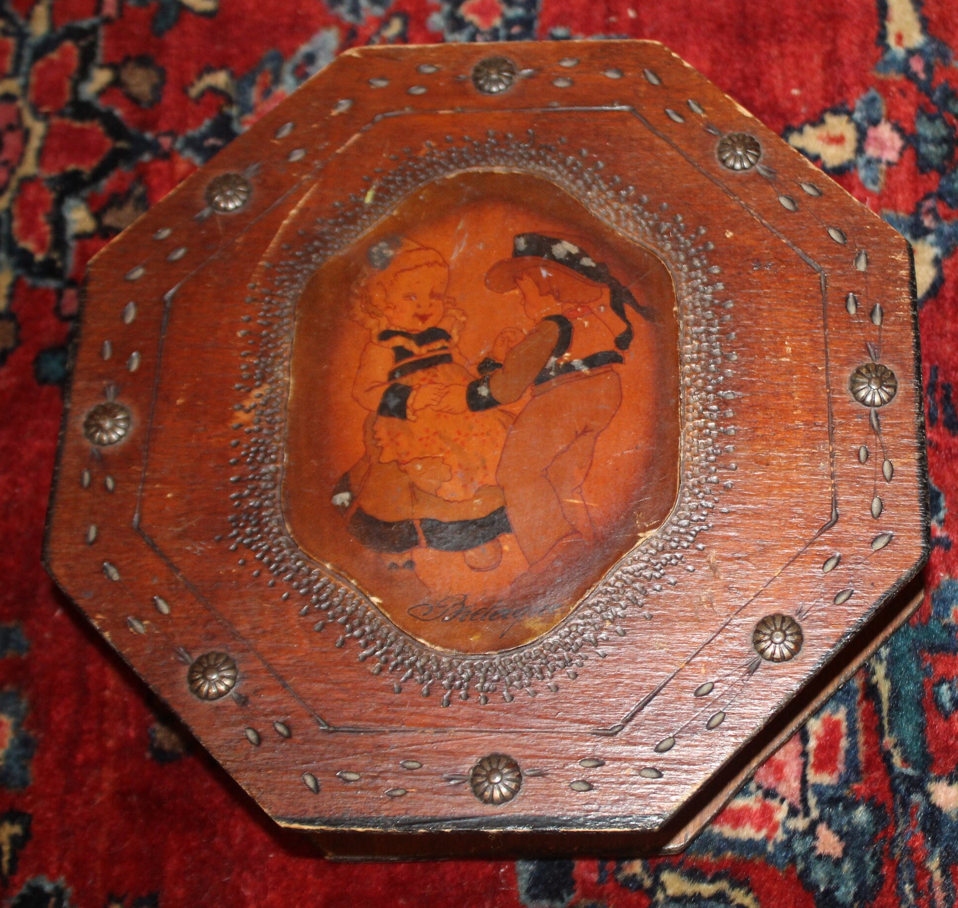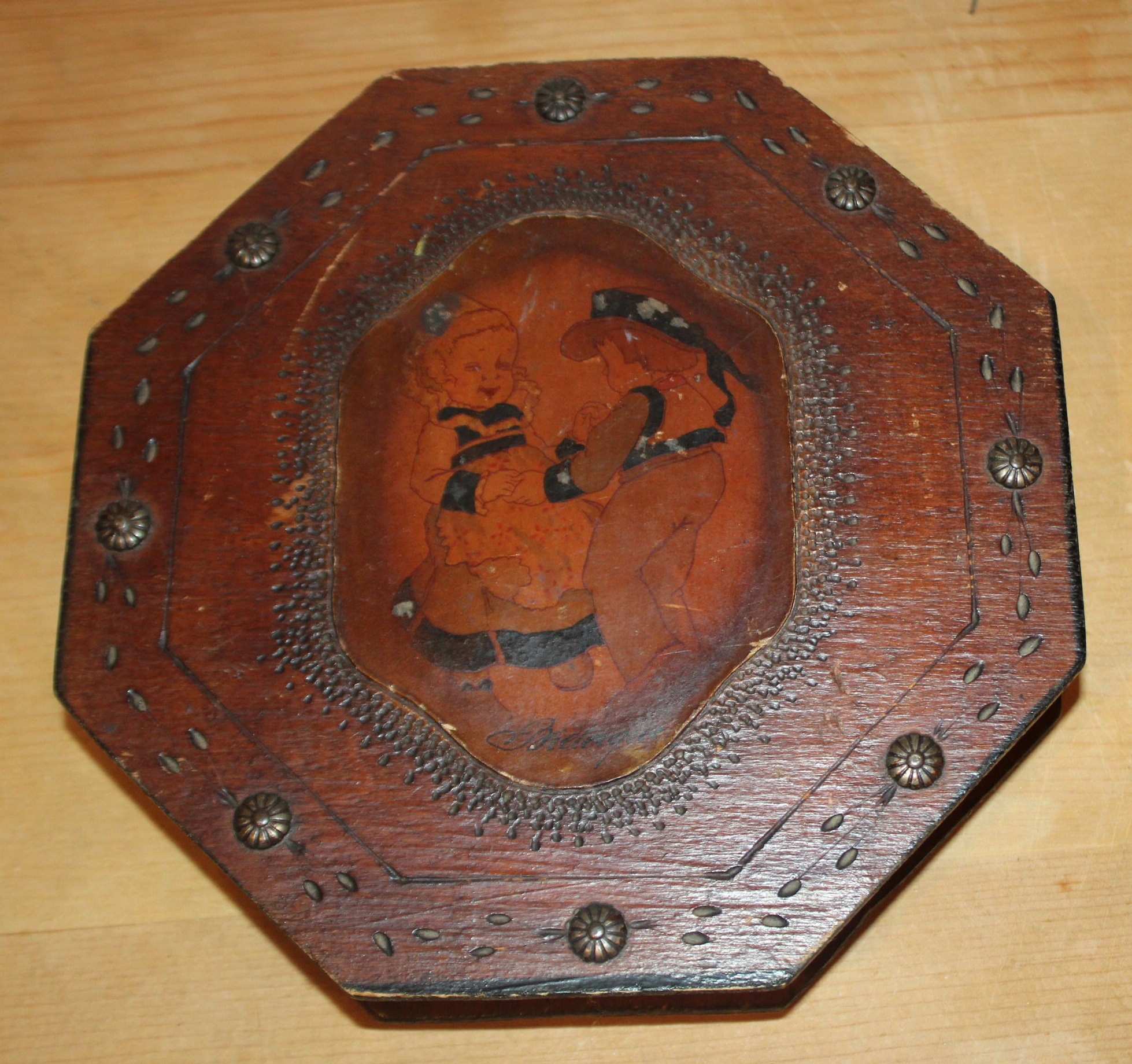 Antique Tramp Art Octagonal Wood Trinket Box – Dutch Decor