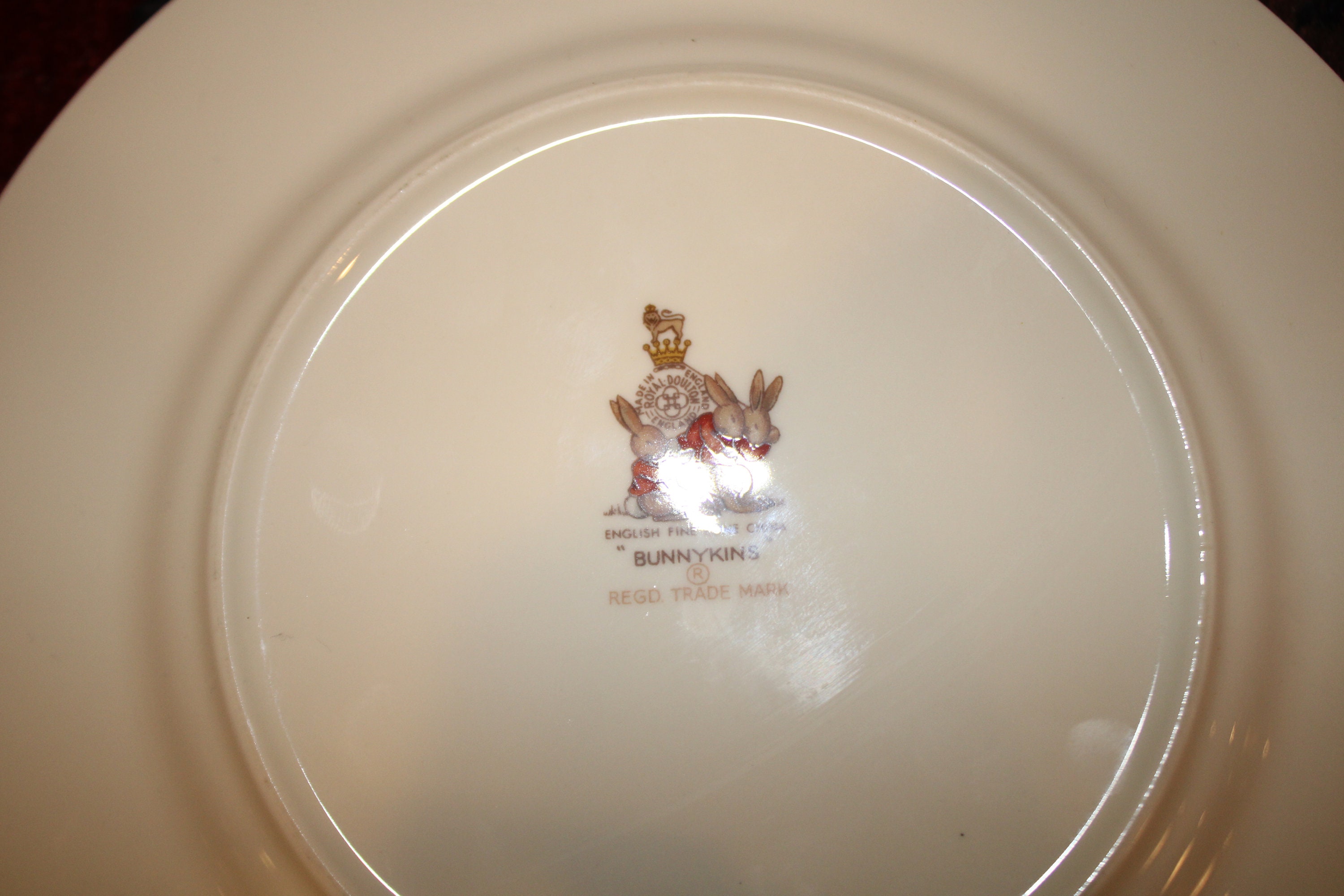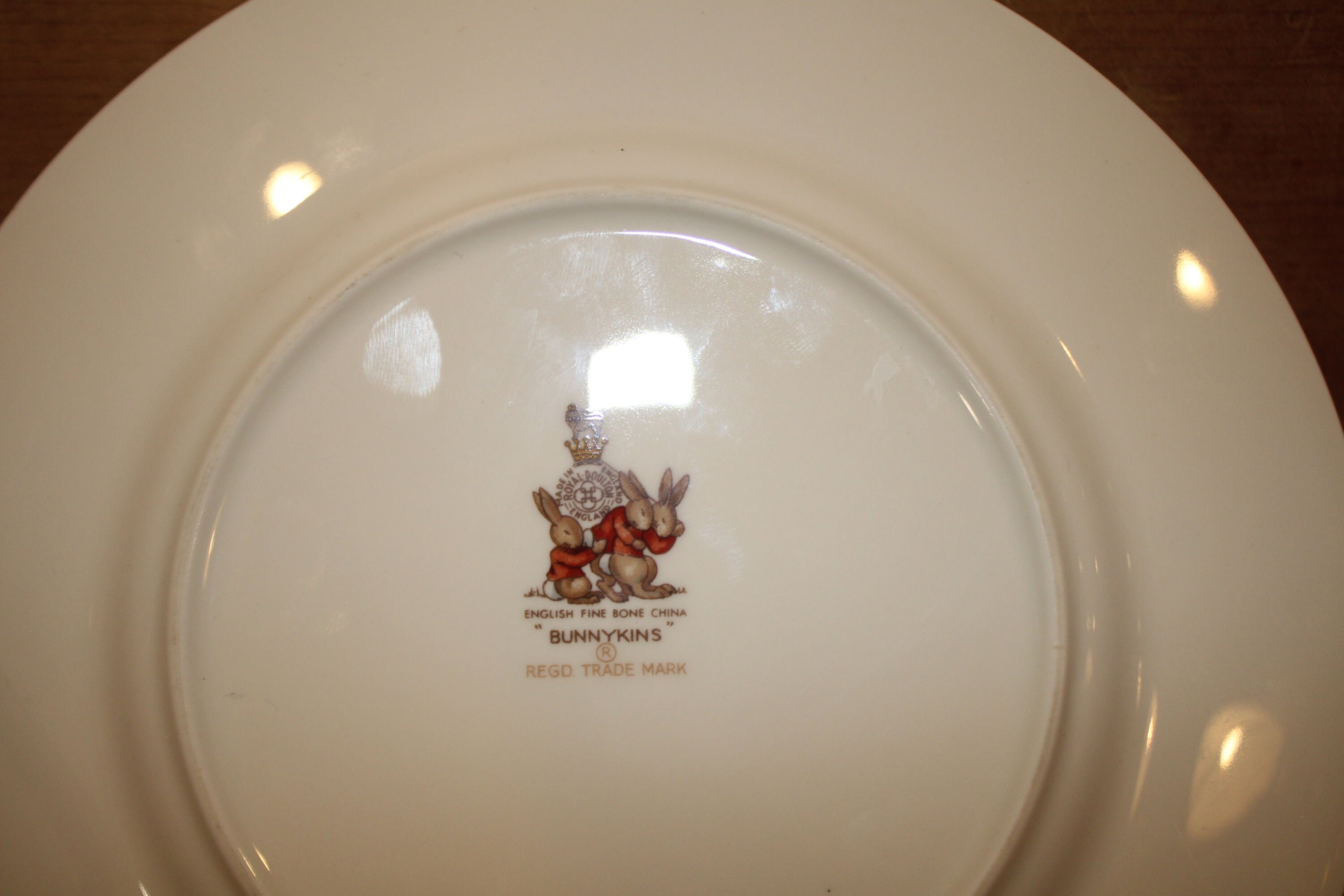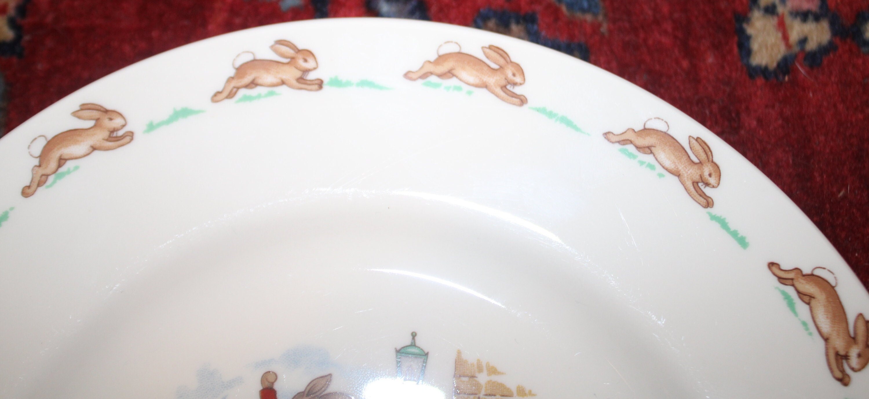 Vintage Royal Doulton Bone China Bunnykins Child's Plate- Toppling Fruit Cart- Made in England
