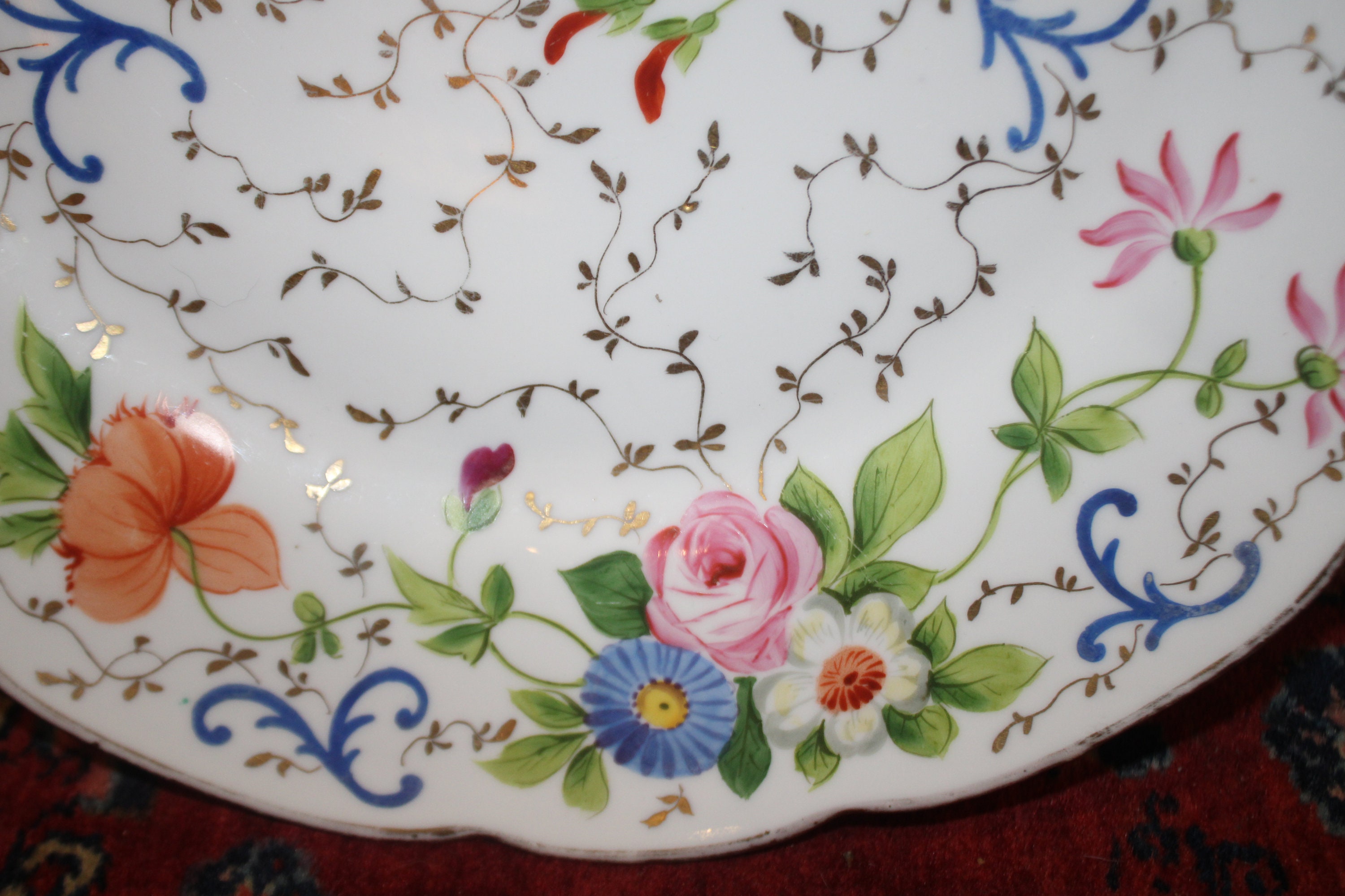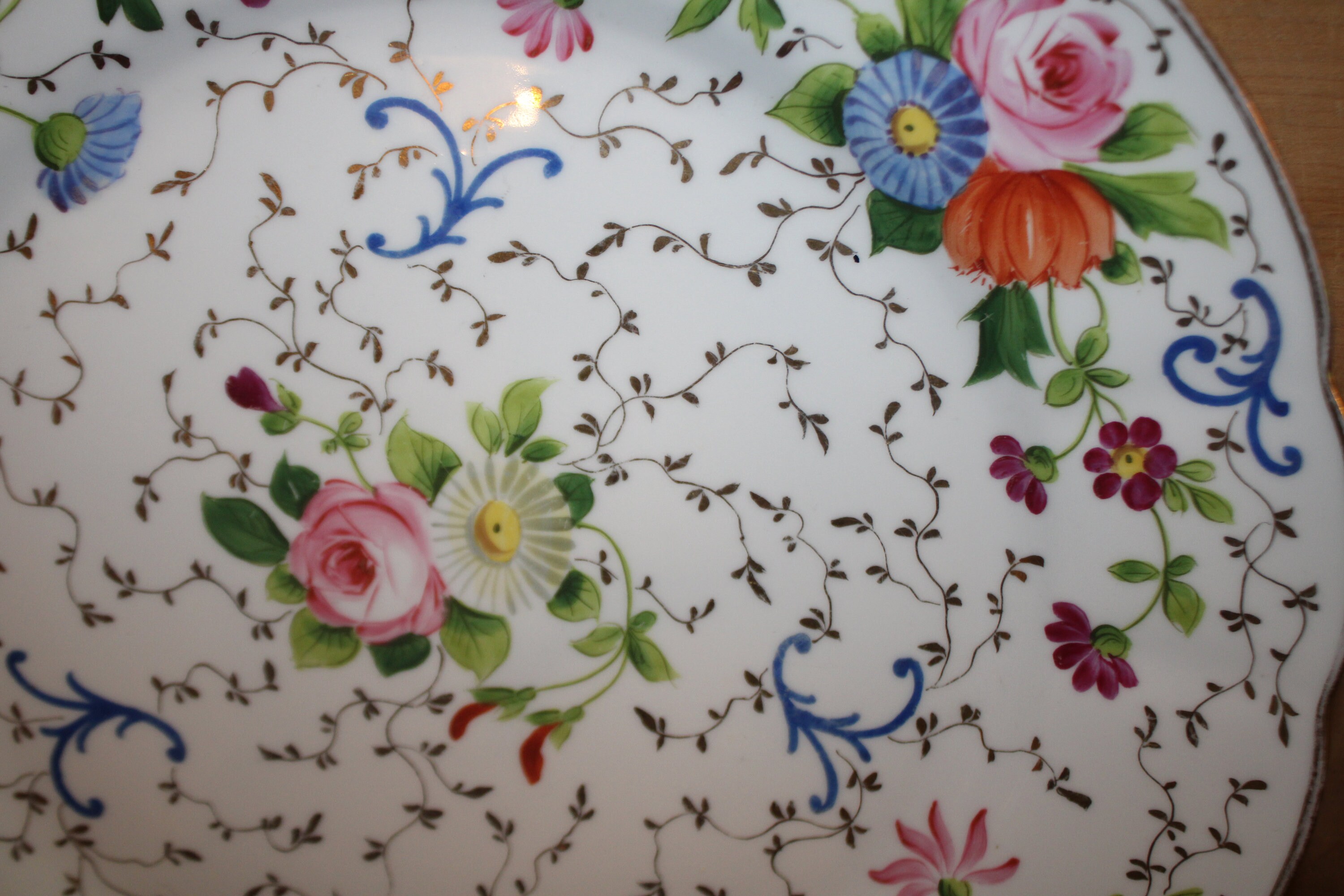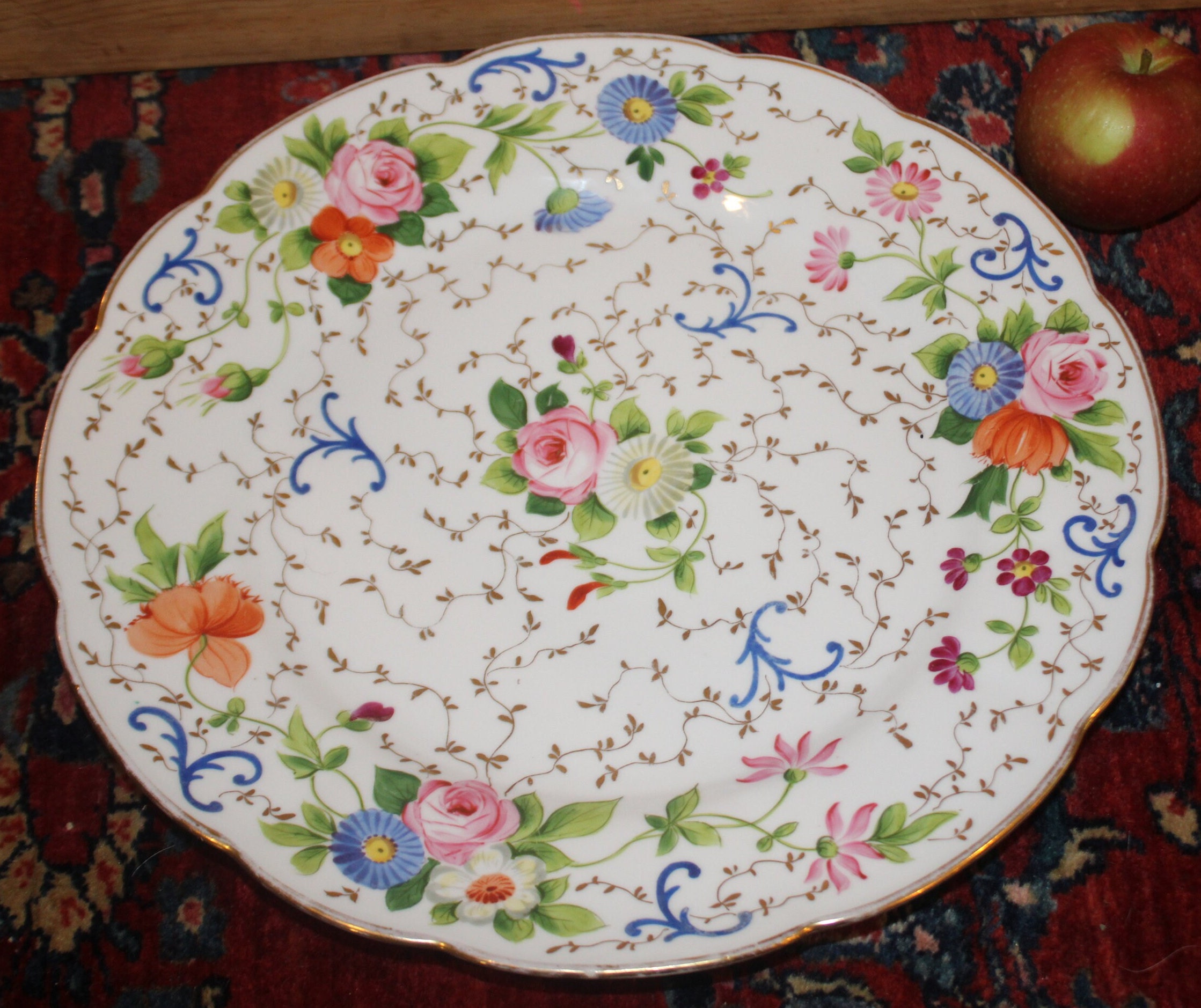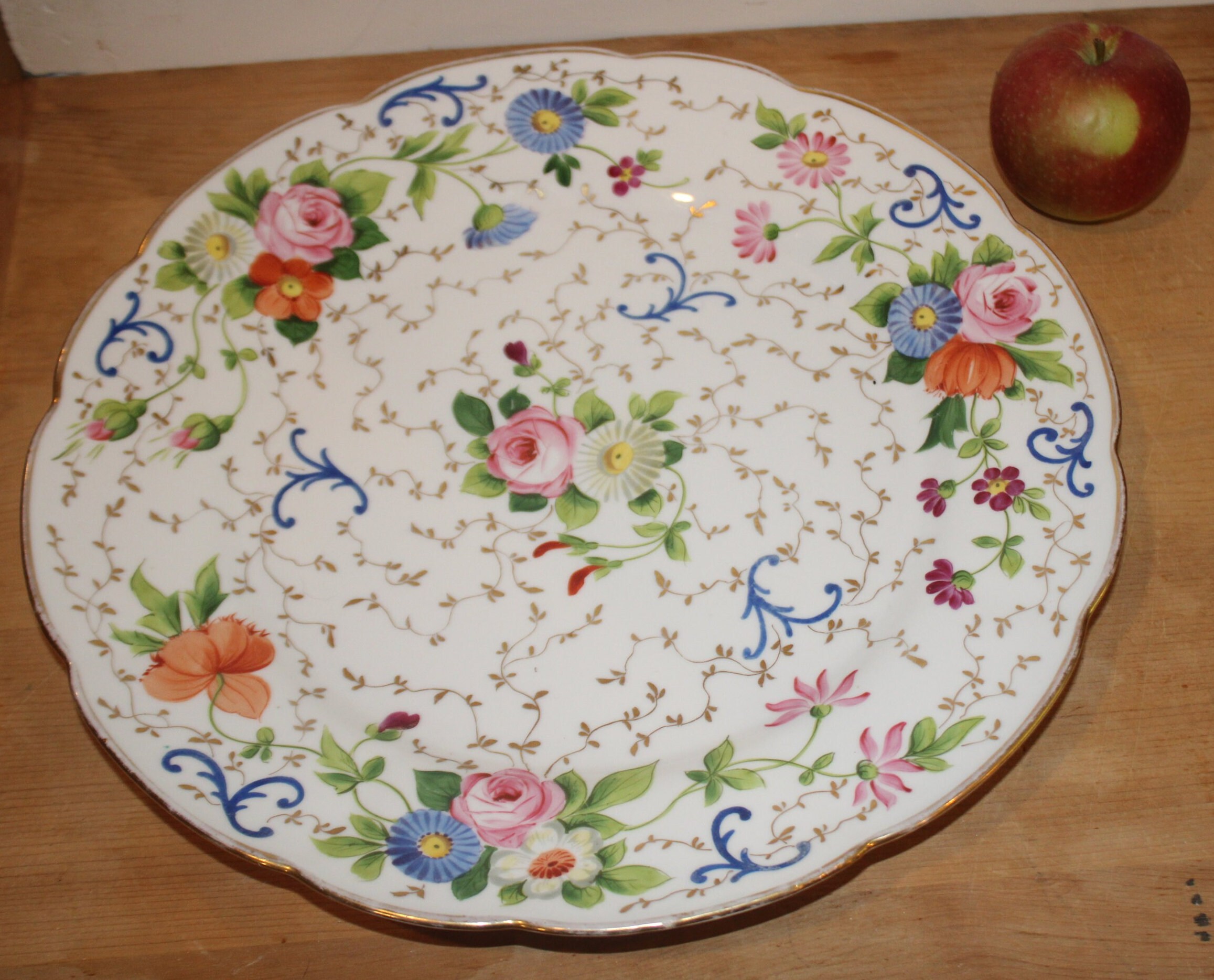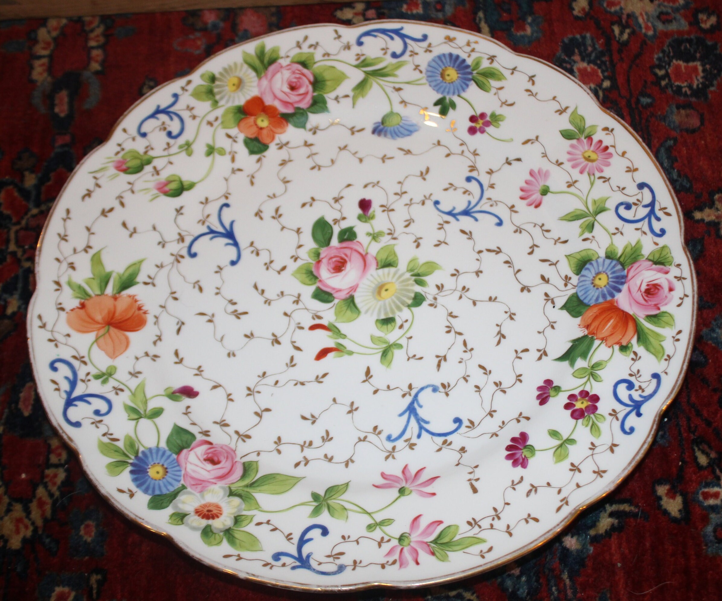 Handpainted Floral Cake Plate - Charles Reizenstein Saxe Allegheny Pa, 13"