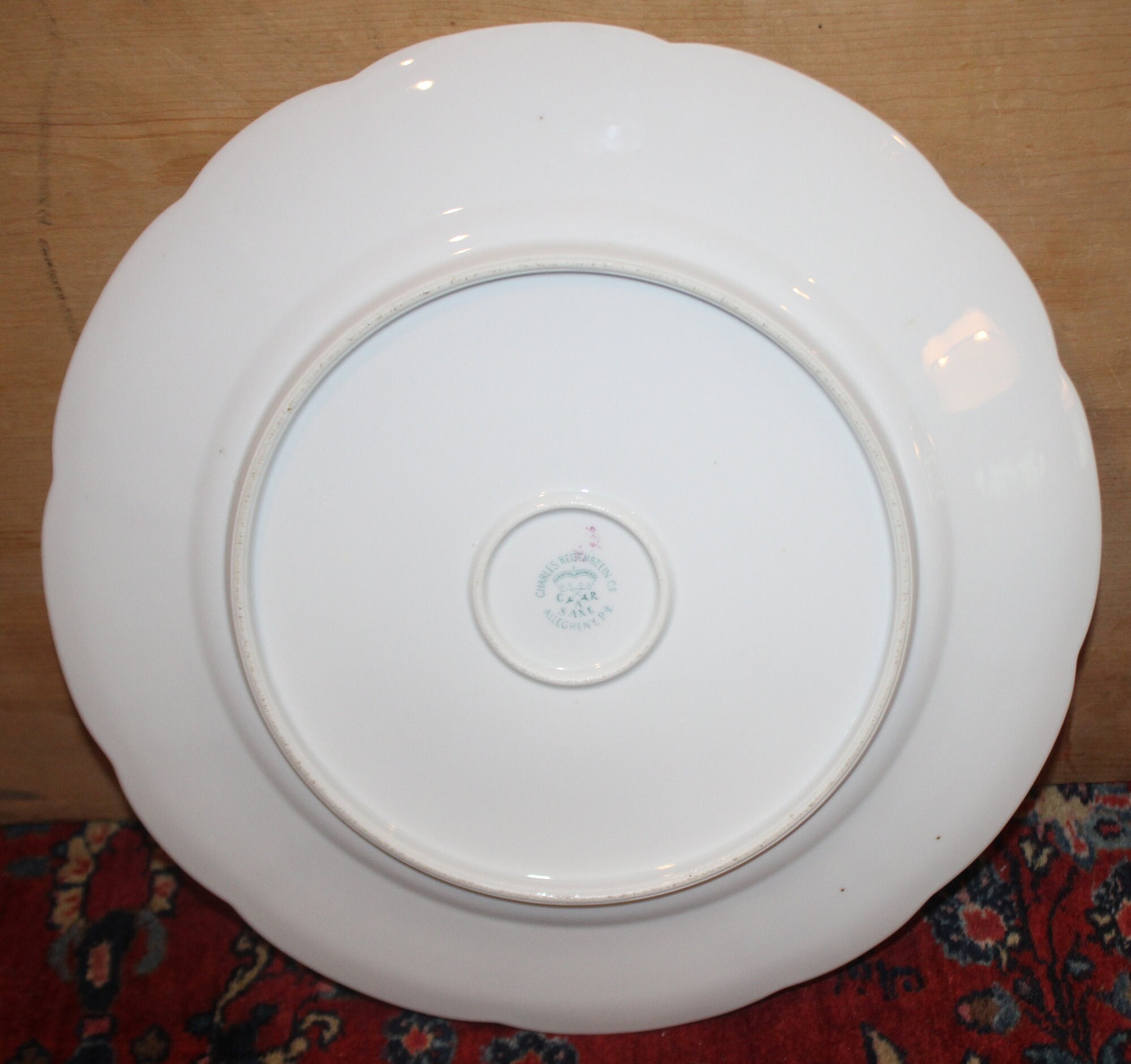 This Beautiful Charles Reizenstein CAR SAXE ALLEGHENY Pa Cake/Serving Plate- #456-72- with Roses/Flowers would be a stunning addition to your serving plates! It is 13" in diameter and is adorned with hand painted flowers and gold gilt. There are no chips or cracks. This is a GORGEOUS serving plate! Please message us if you have any questions-Thanks for looking!
