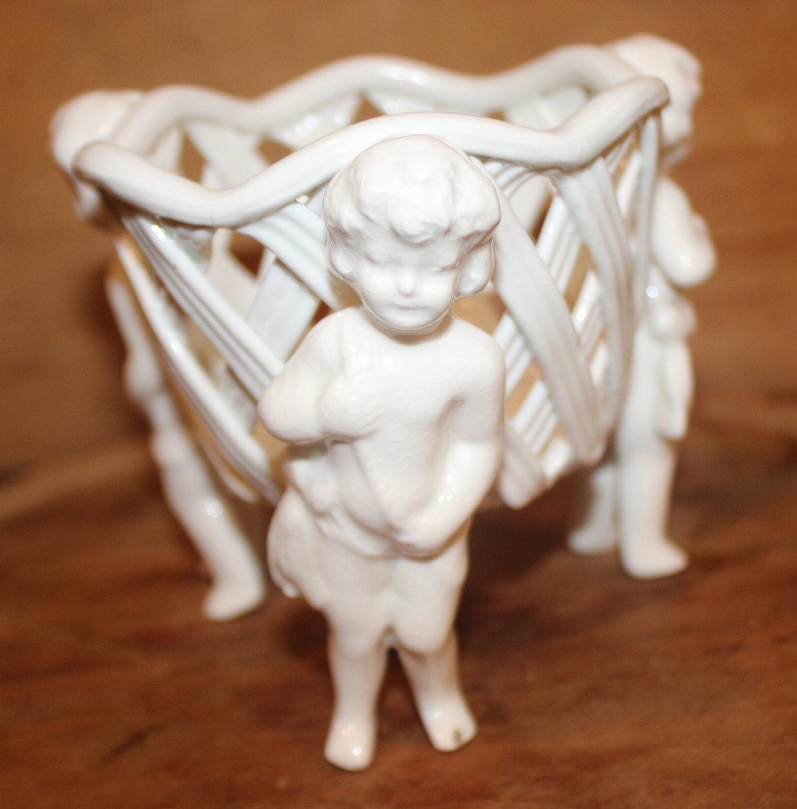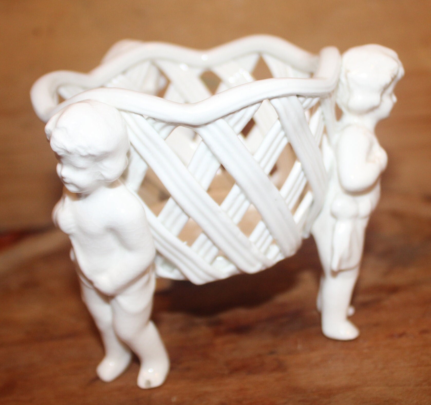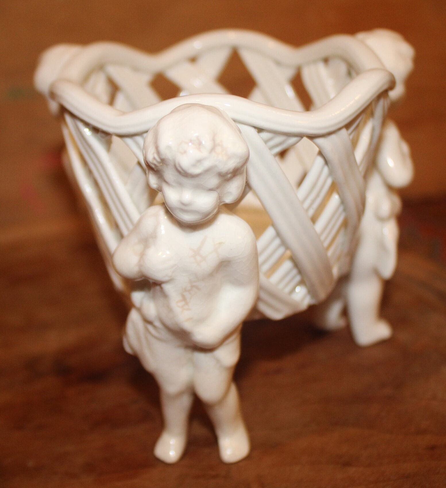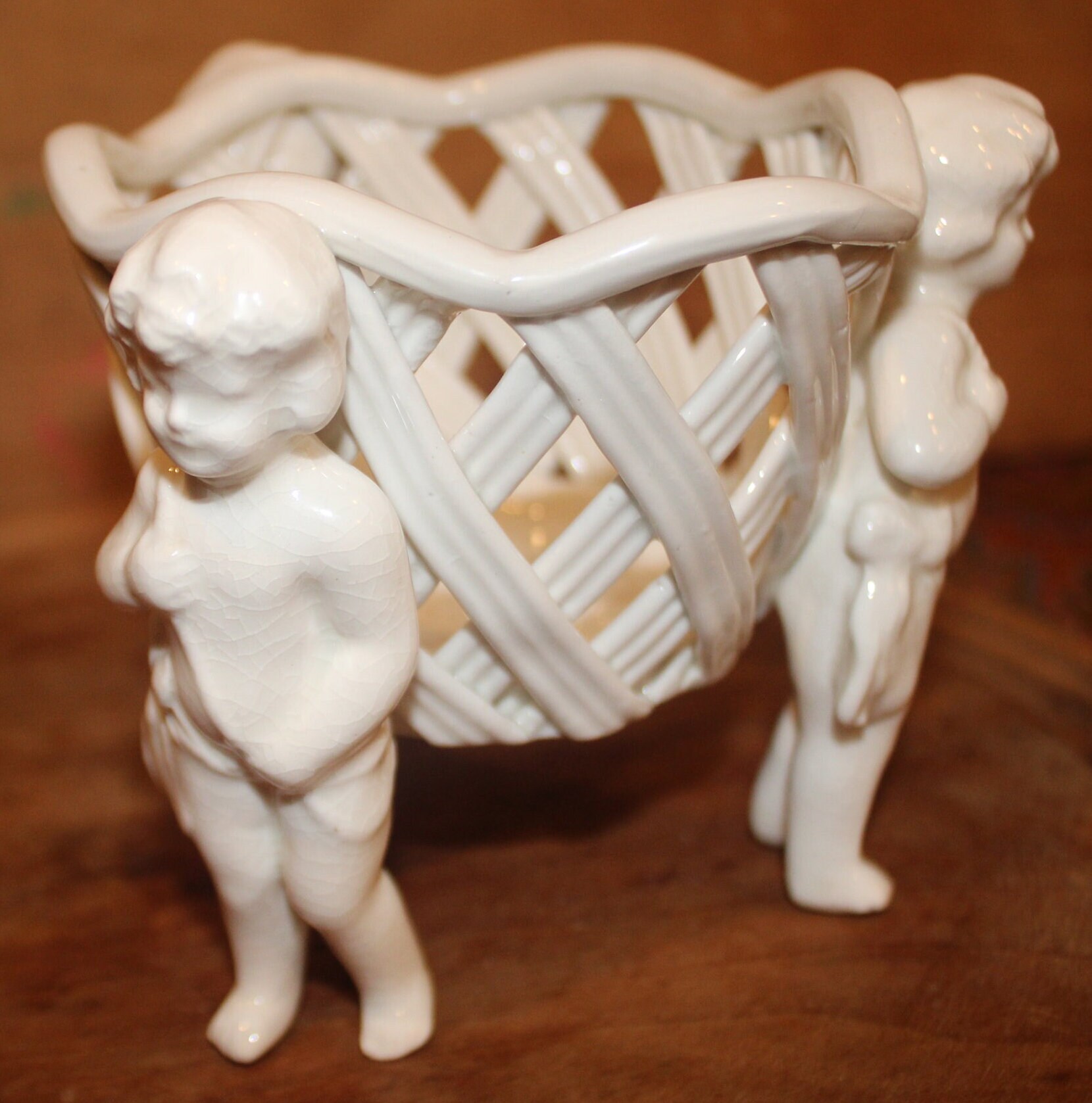Vintage White Basket weave Planter/Riser with Cherubs- French Country/Indoor Plants/Ivy/Succulents