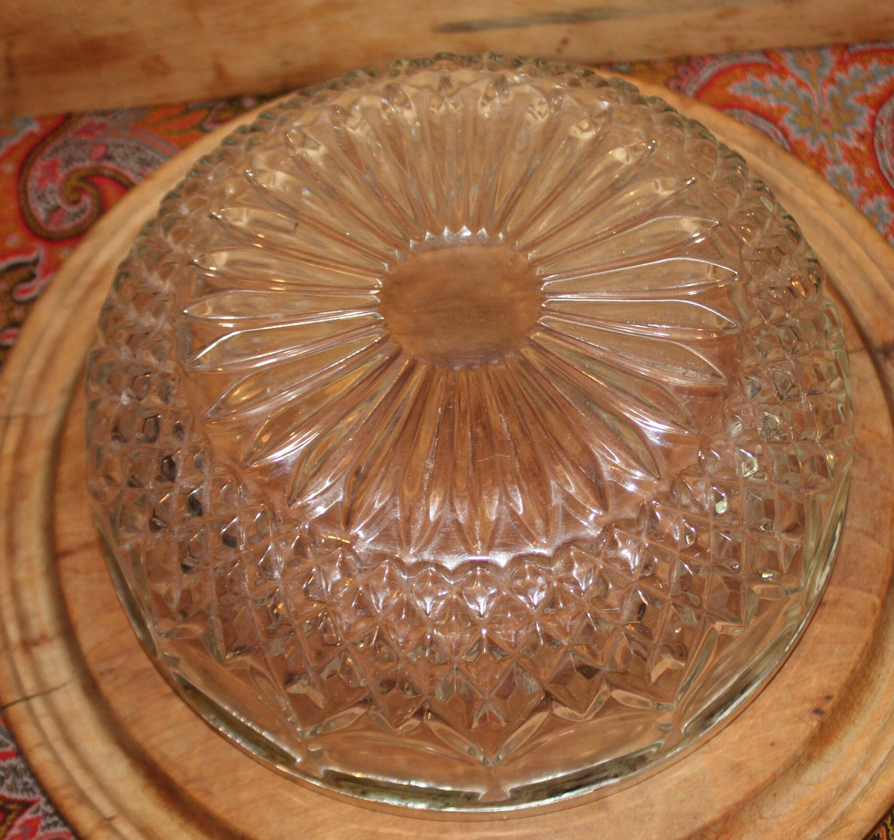 This Great Vintage Cut Glass Silver Plate Rimmed Bowl Made in Germany is wonderful and heavy! There are no chips or cracks to the glass but there is wear/scratching to the silver plate (the brass is exposed at the edges). It a very impressive bowl to serve a fancy salad in at your next dinner party! It is 8.5" in diameter x 3.5" tall. Please message us if you have any questions- Thanks for looking!