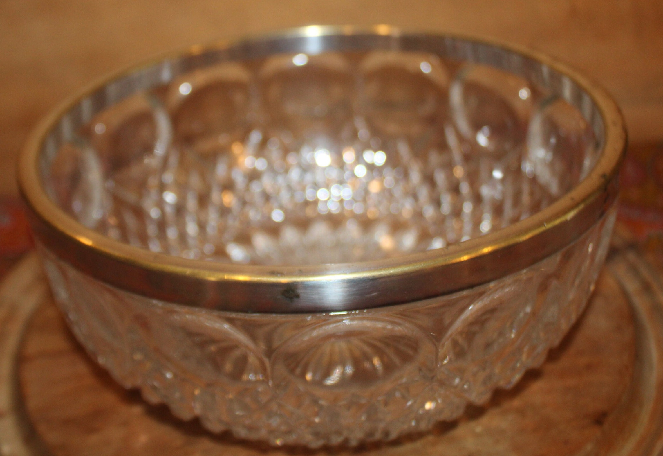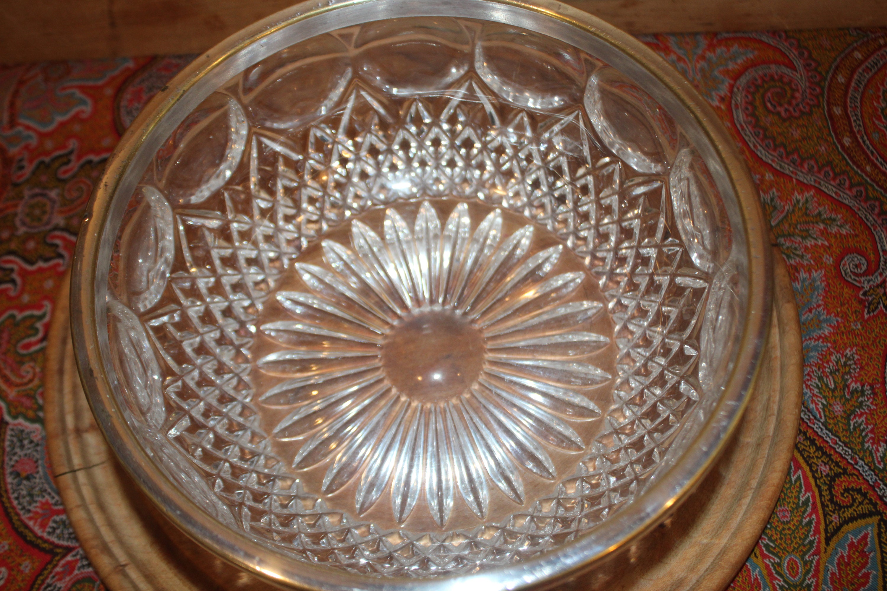 Vintage Cut Glass Bowl, Silver Plate Rim, Made in Germany