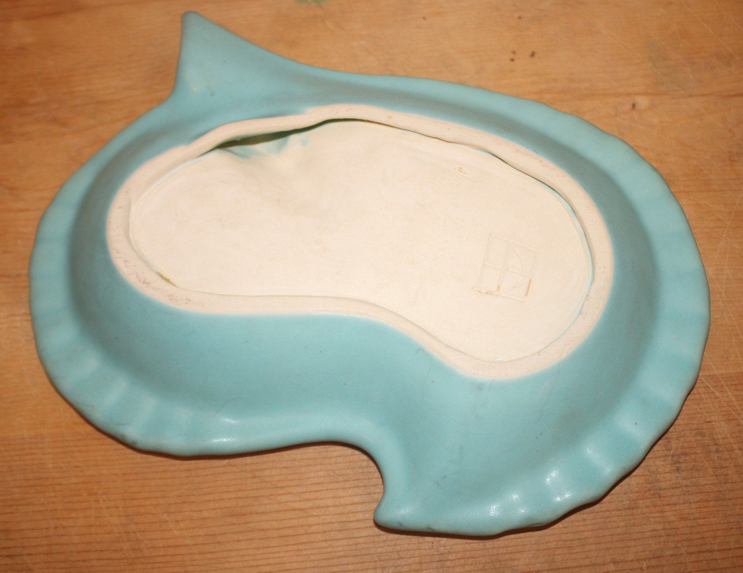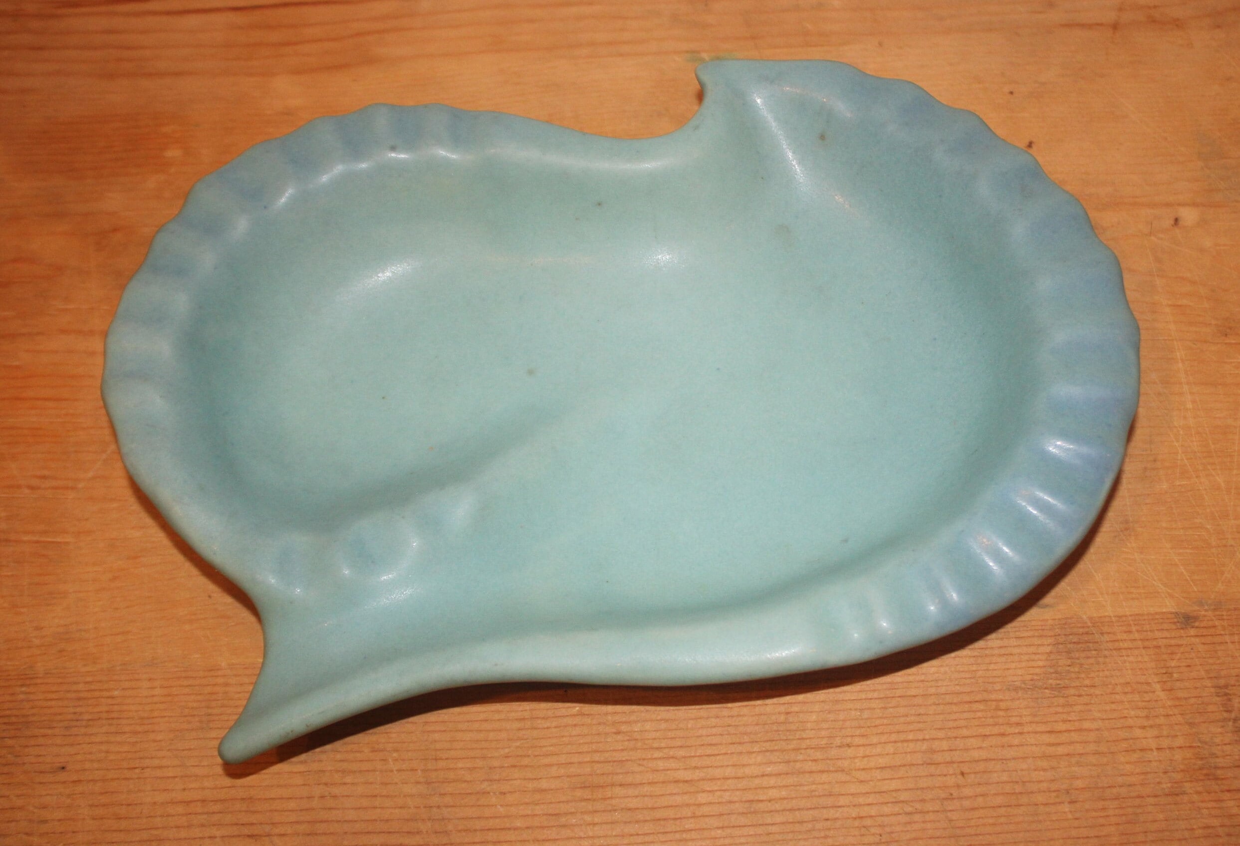 This Fantastic Ming Blue Van Briggle Art Nouveau Art Pottery Ash Tray from the 70's made in Colorado Springs would be a wonderful addition to your art pottery collection! It is in mint condition with no chips, cracks, or hairlines. It is approximately 9.75" x 8" x 1.5" and marked with the Van Briggle logo with the artist's marking of an underlined "c". Please message us if you have any questions- Thanks for looking