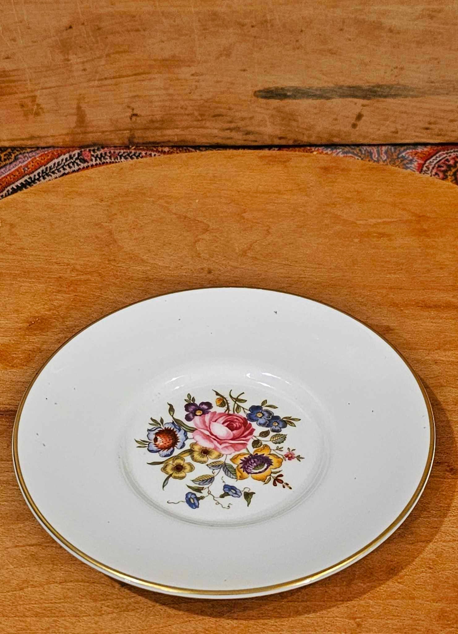 This Vintage Royal Worcester Fine Bone China Demitasse Cup and Saucer in the Bournemouth Pattern is gorgeous! The cup is 3" tall; and the saucer is 4.75" in diameter. There are no chips or cracks. The floral bouquet would add a pop of color to your demitasse collection! Please message us if you have any questions- Thanks for looking!