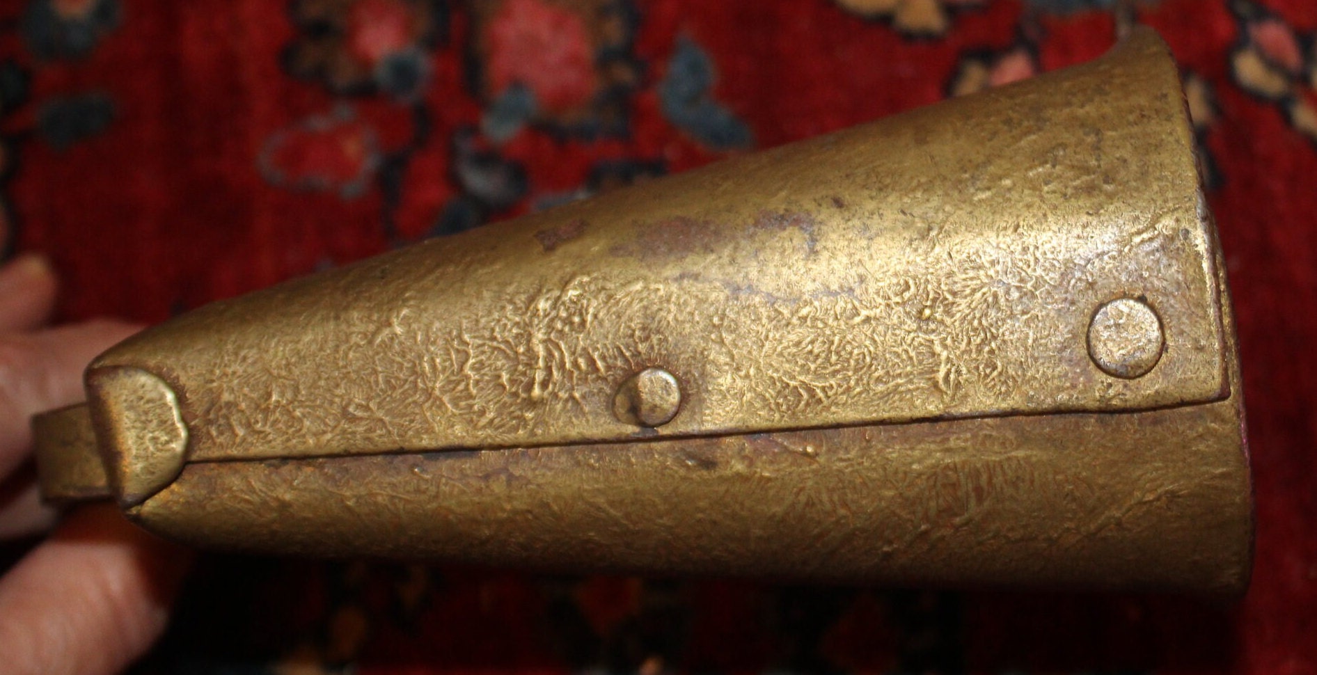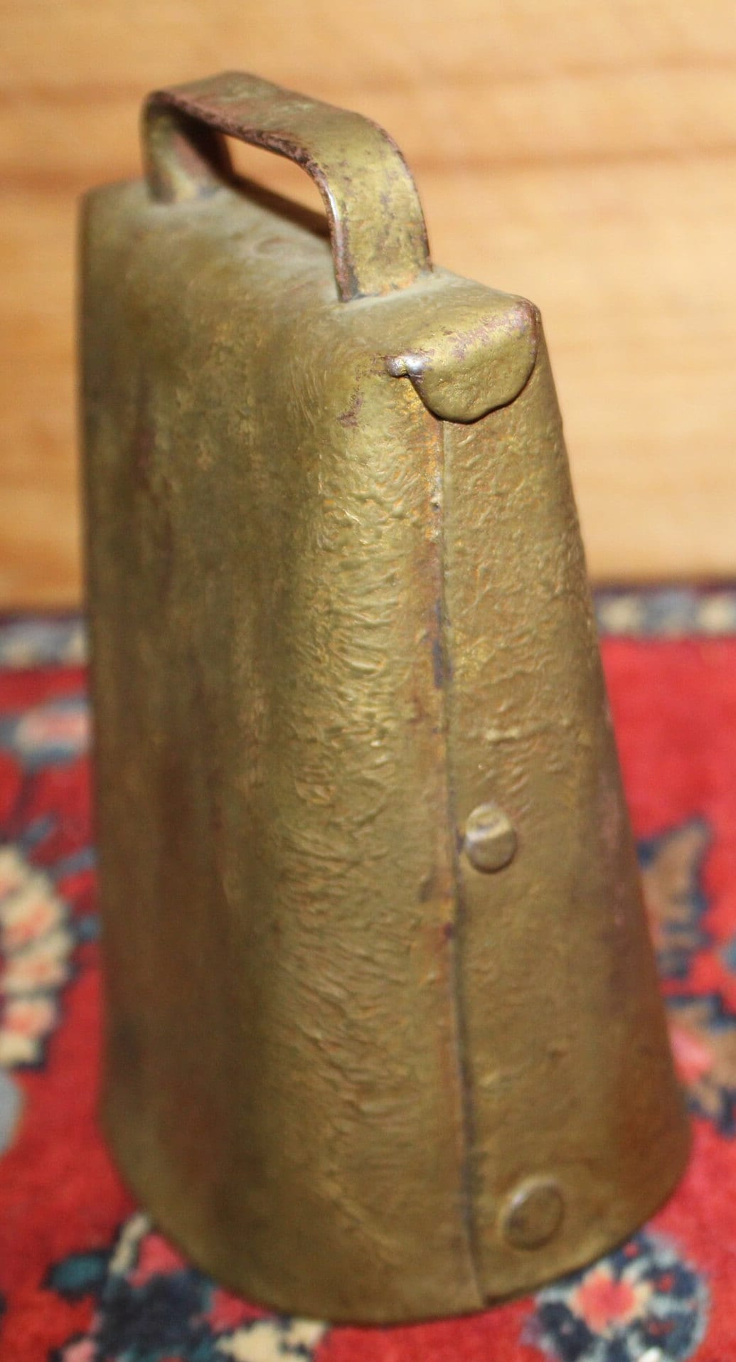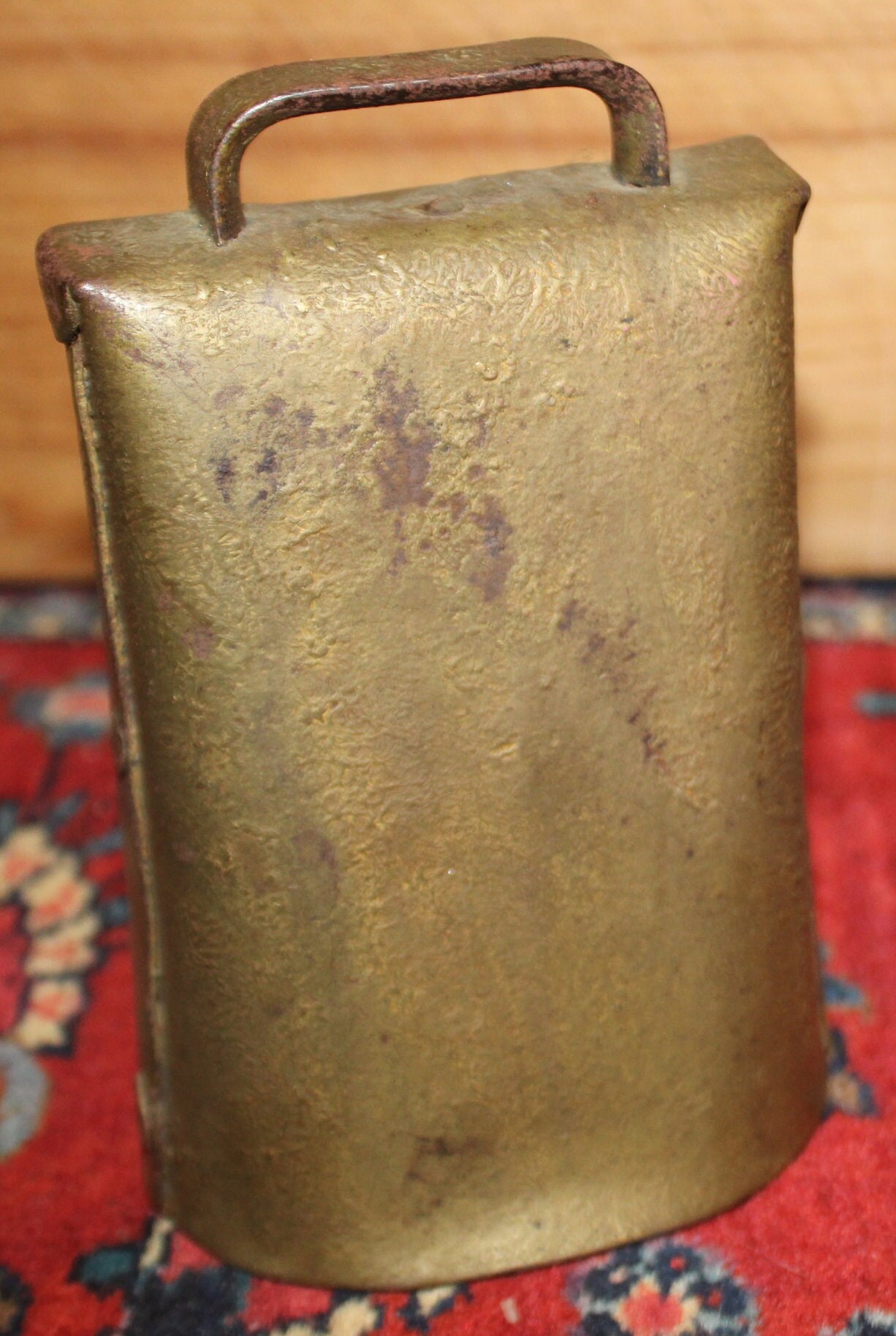 Antique Gold-Painted Iron Cow Bell – Hand Hammered, 19th Century Farmhouse Decor