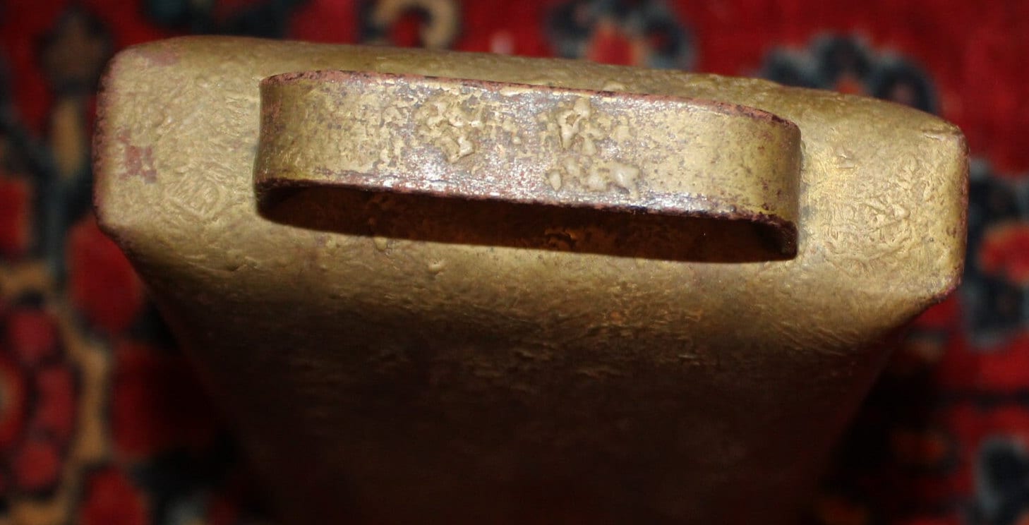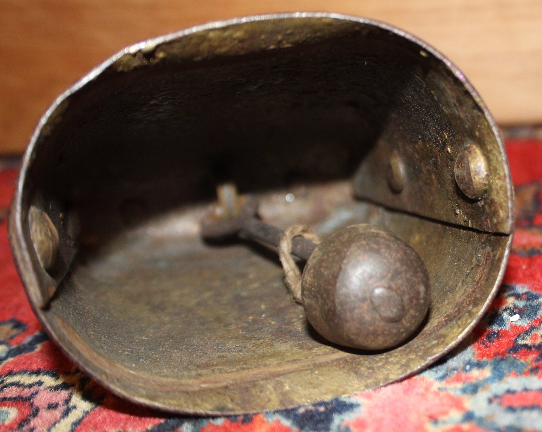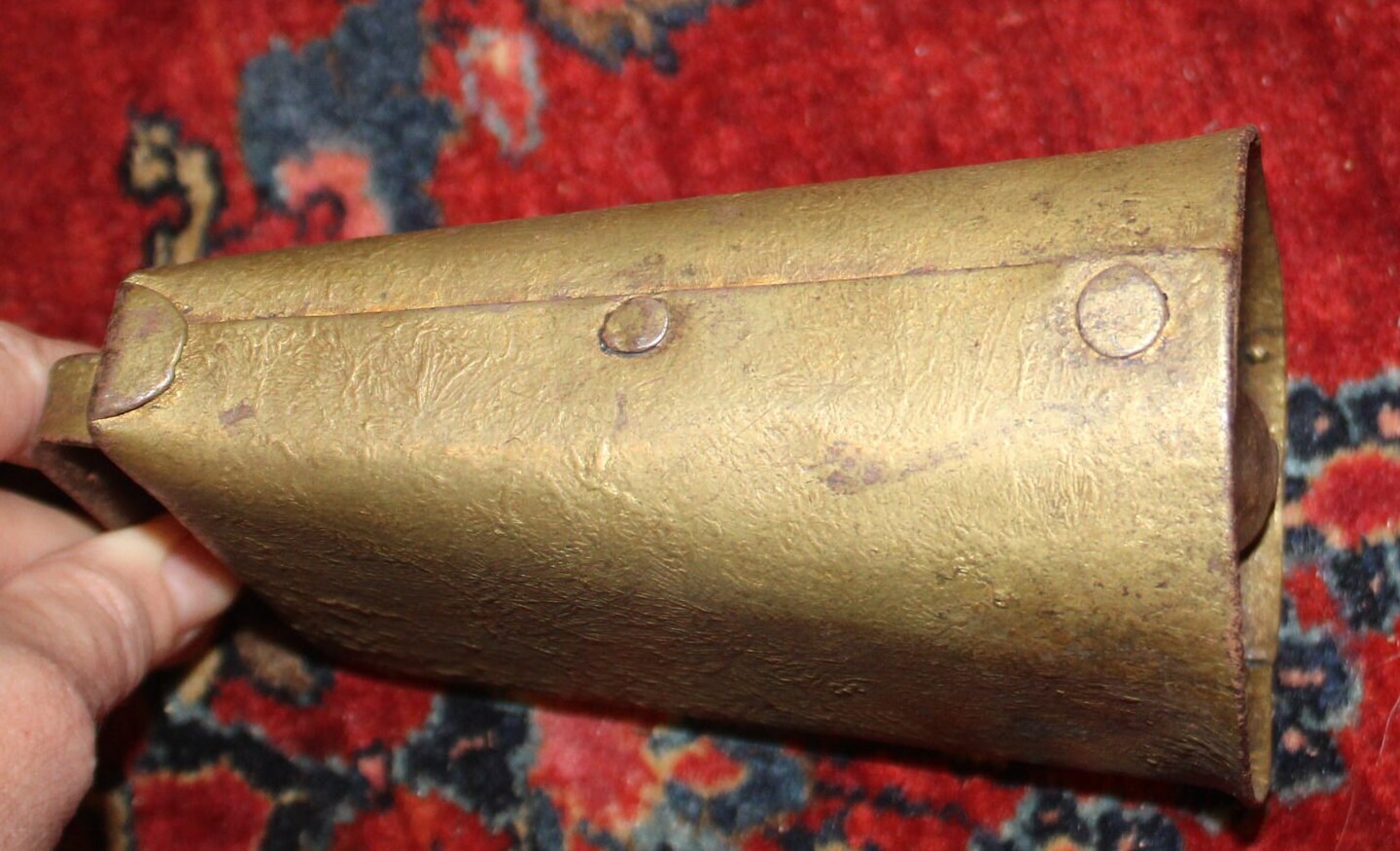 Antique Gold-Painted Iron Cow Bell – Hand Hammered, 19th Century Farmhouse Decor