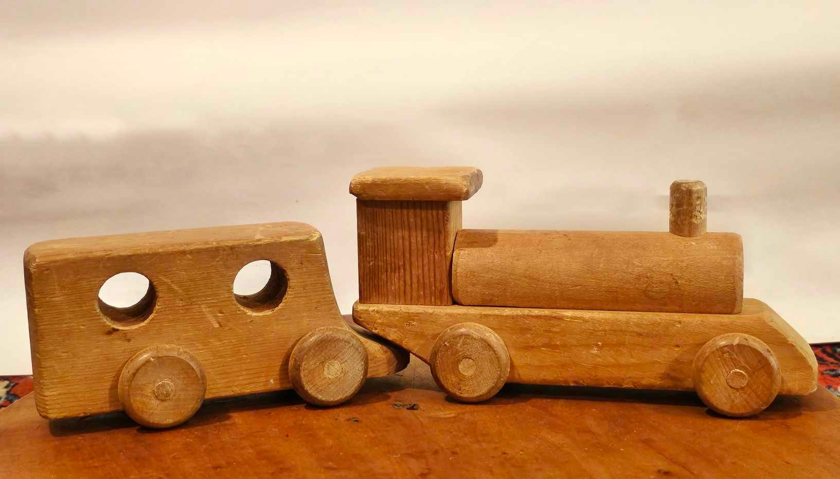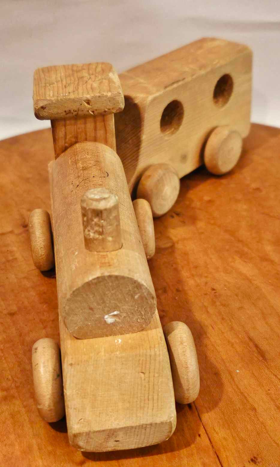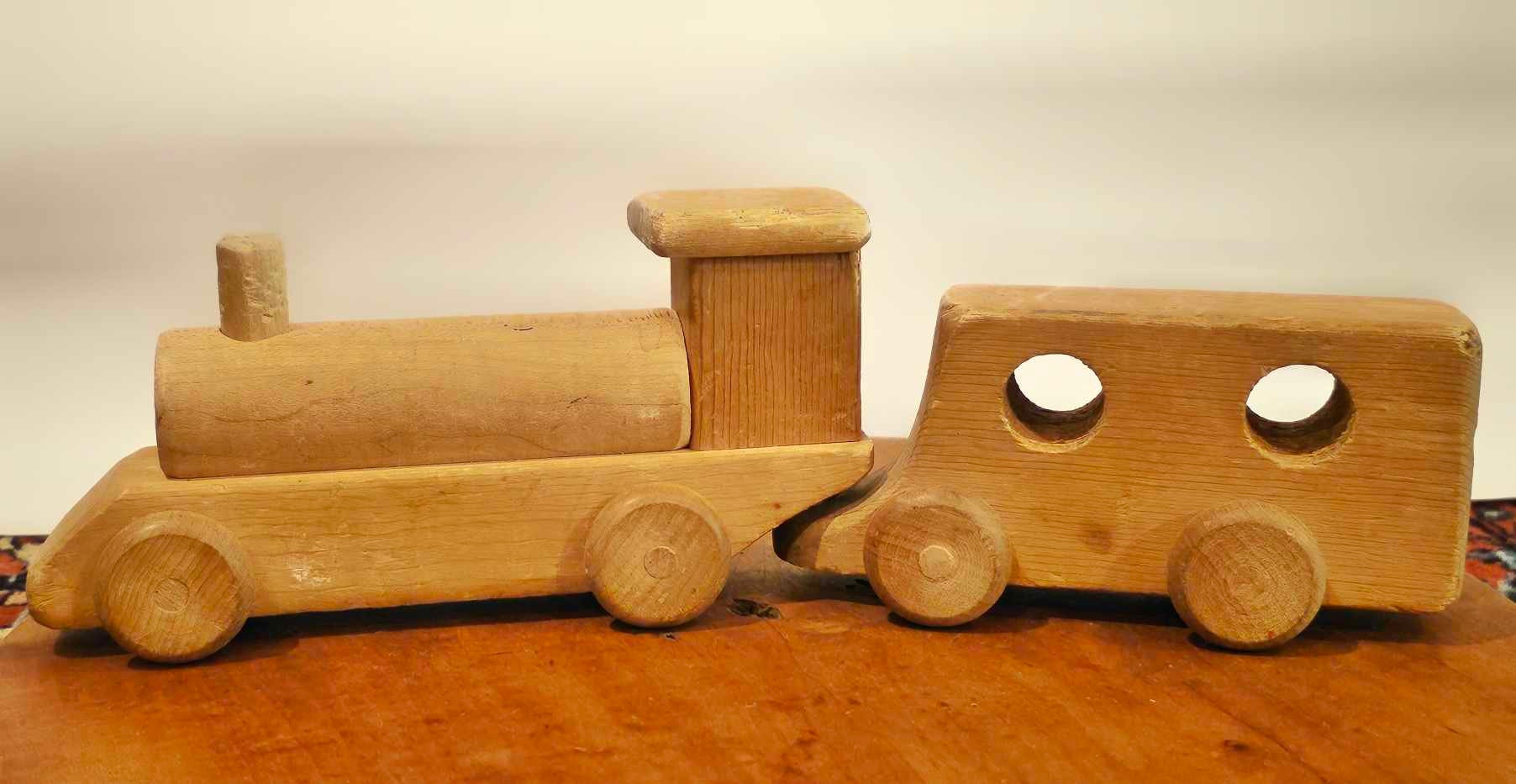 Handmade Wooden Train Set: Vintage Birch Engine & Caboose
