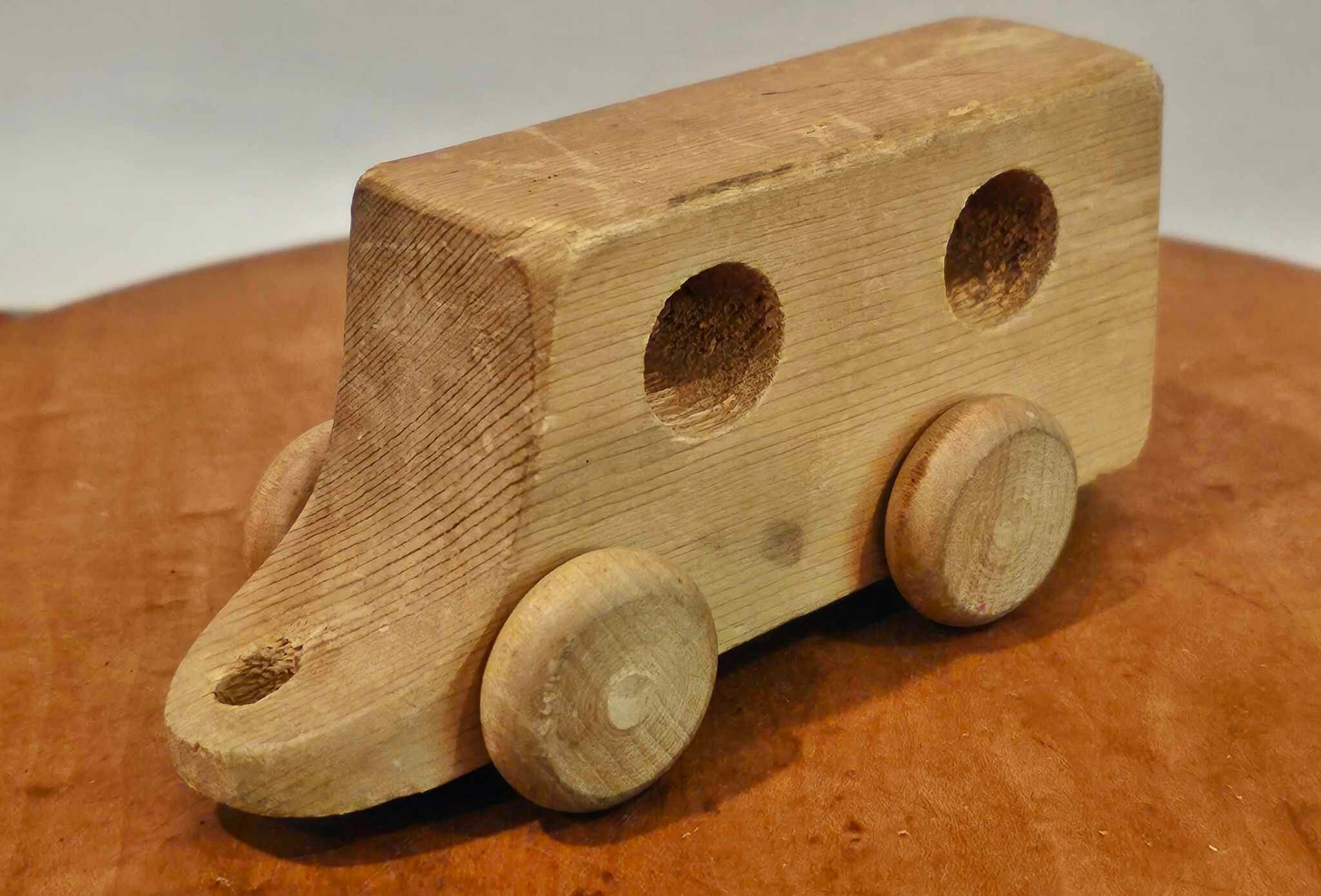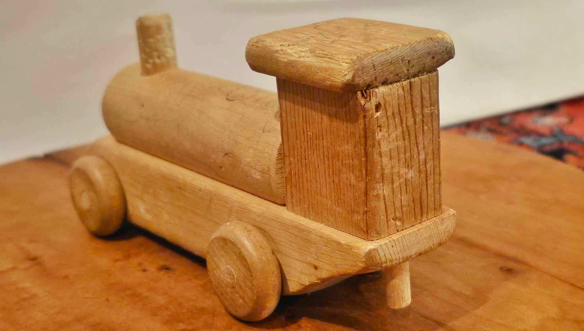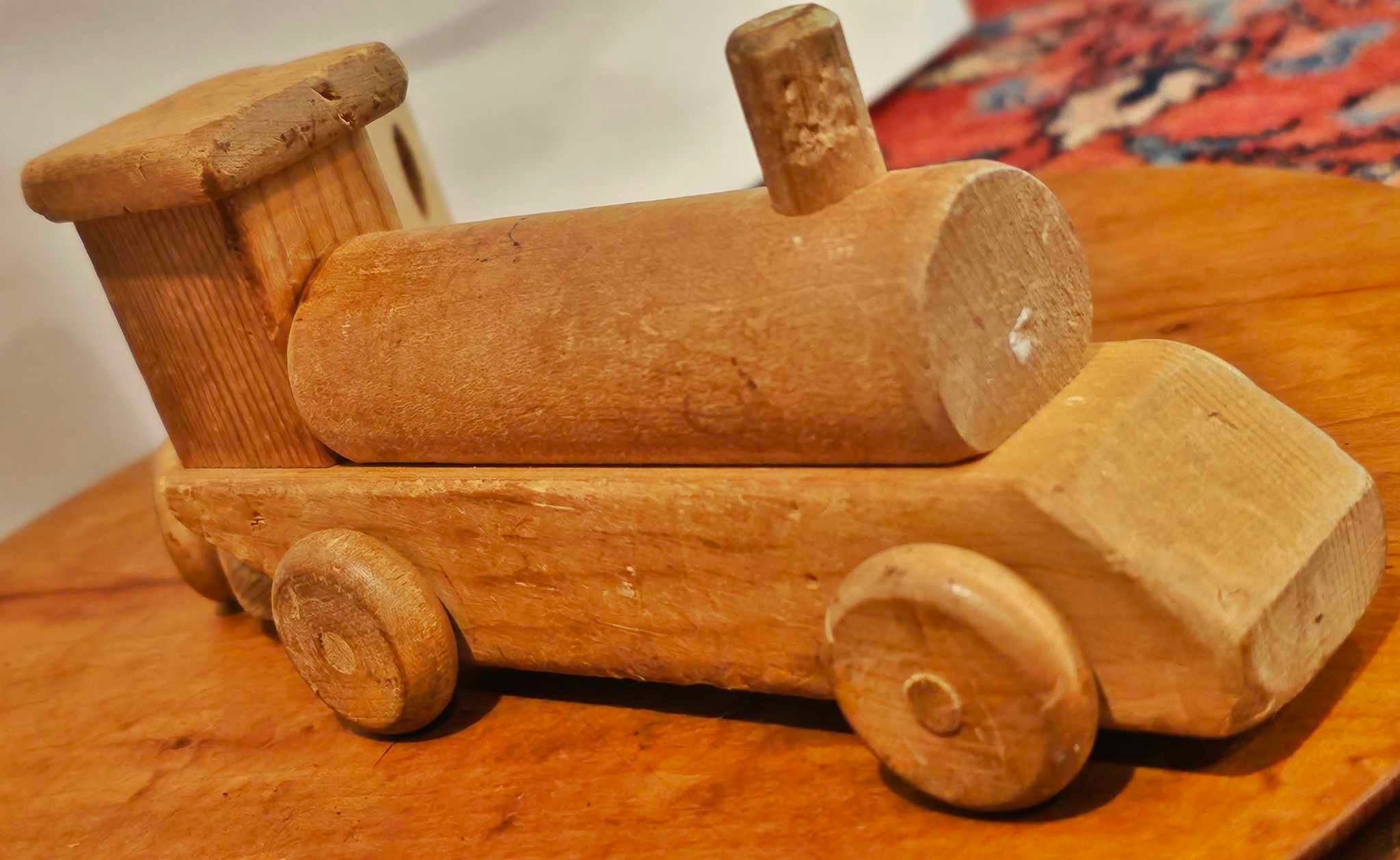 Handmade Wooden Train Set: Vintage Birch Engine & Caboose