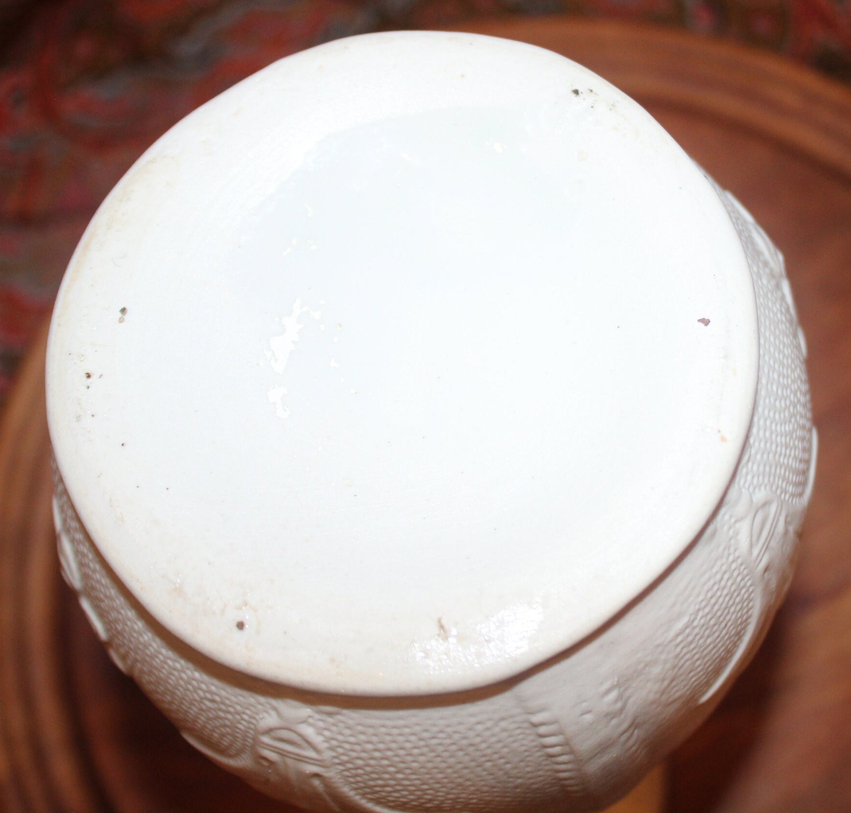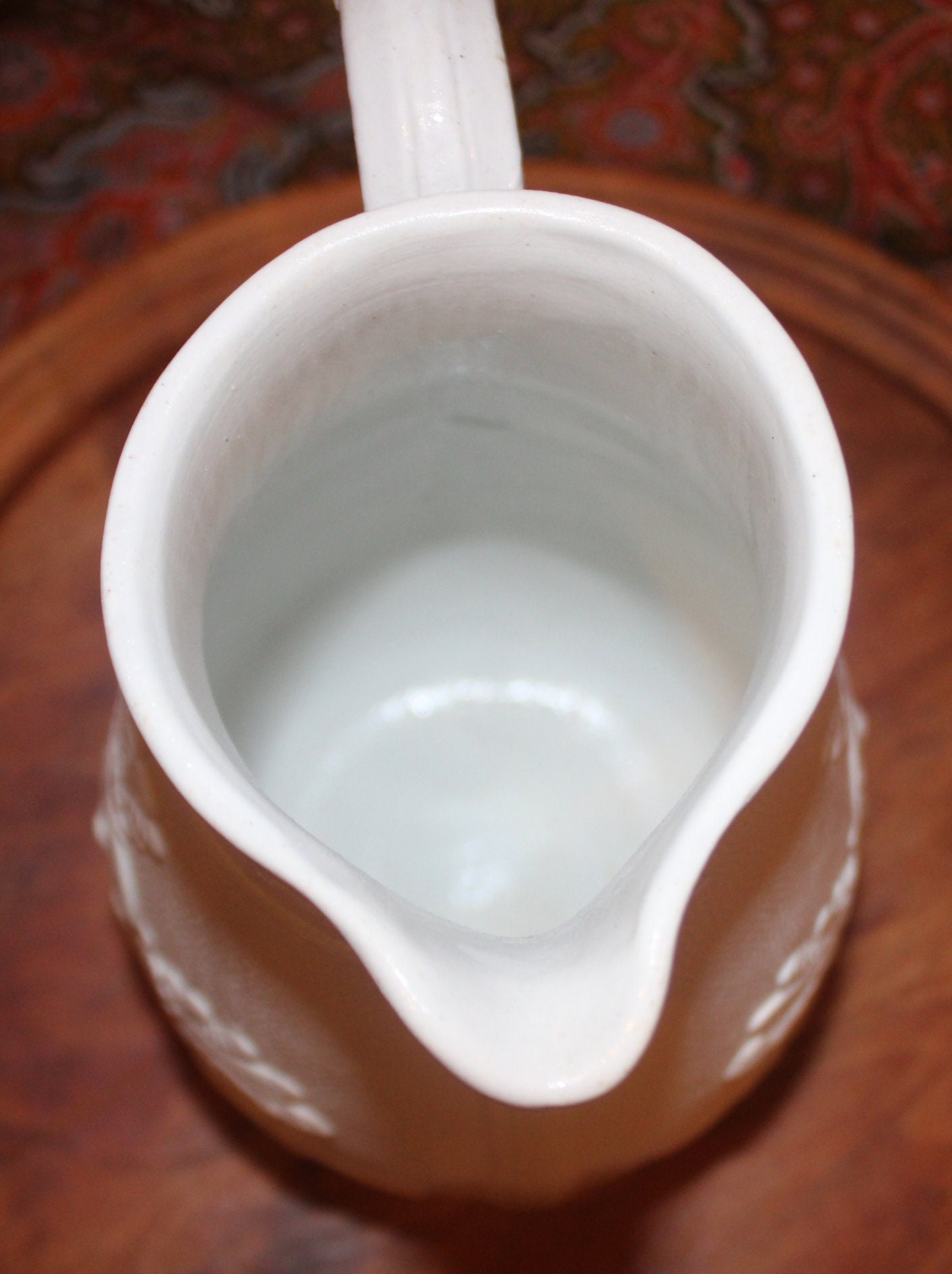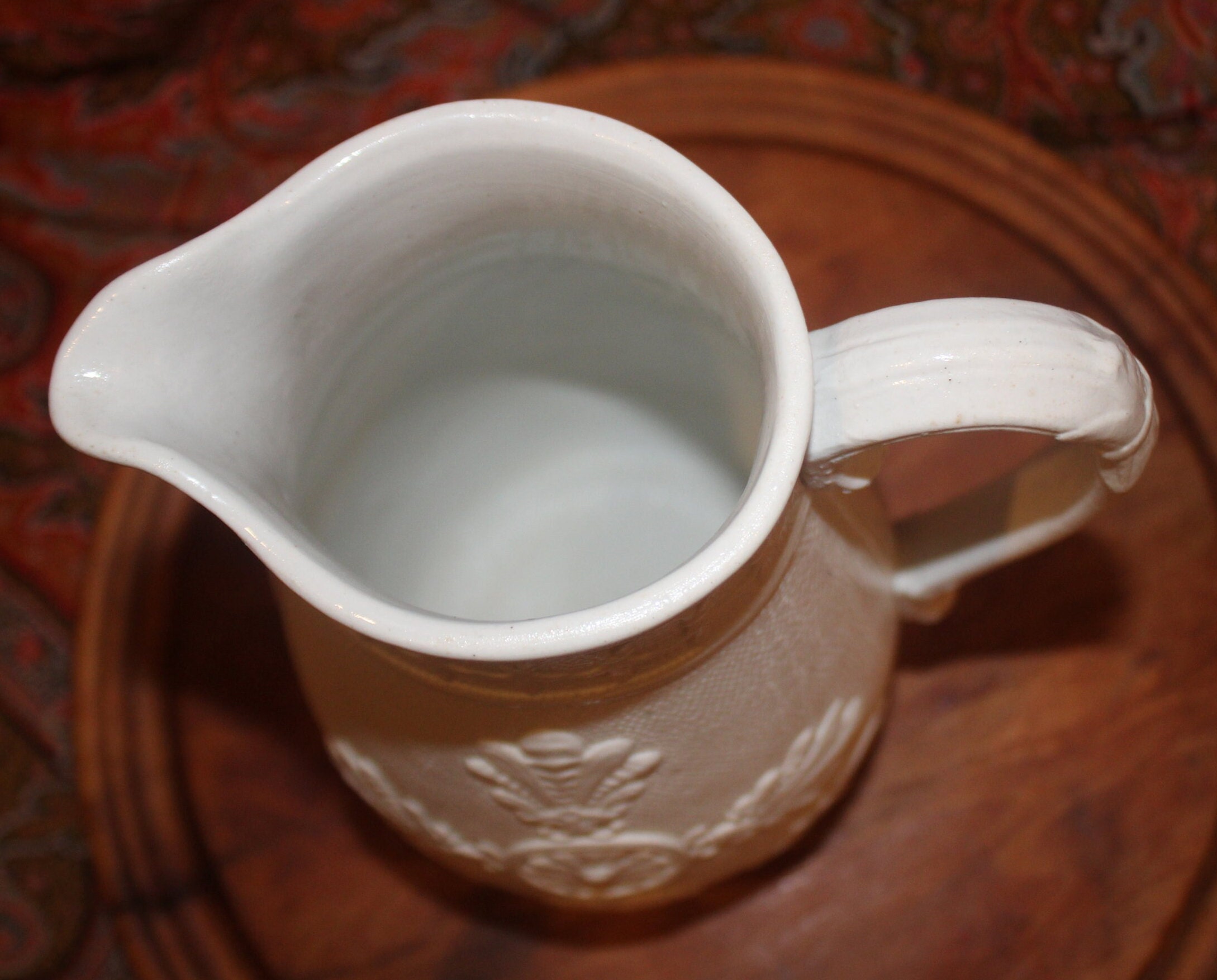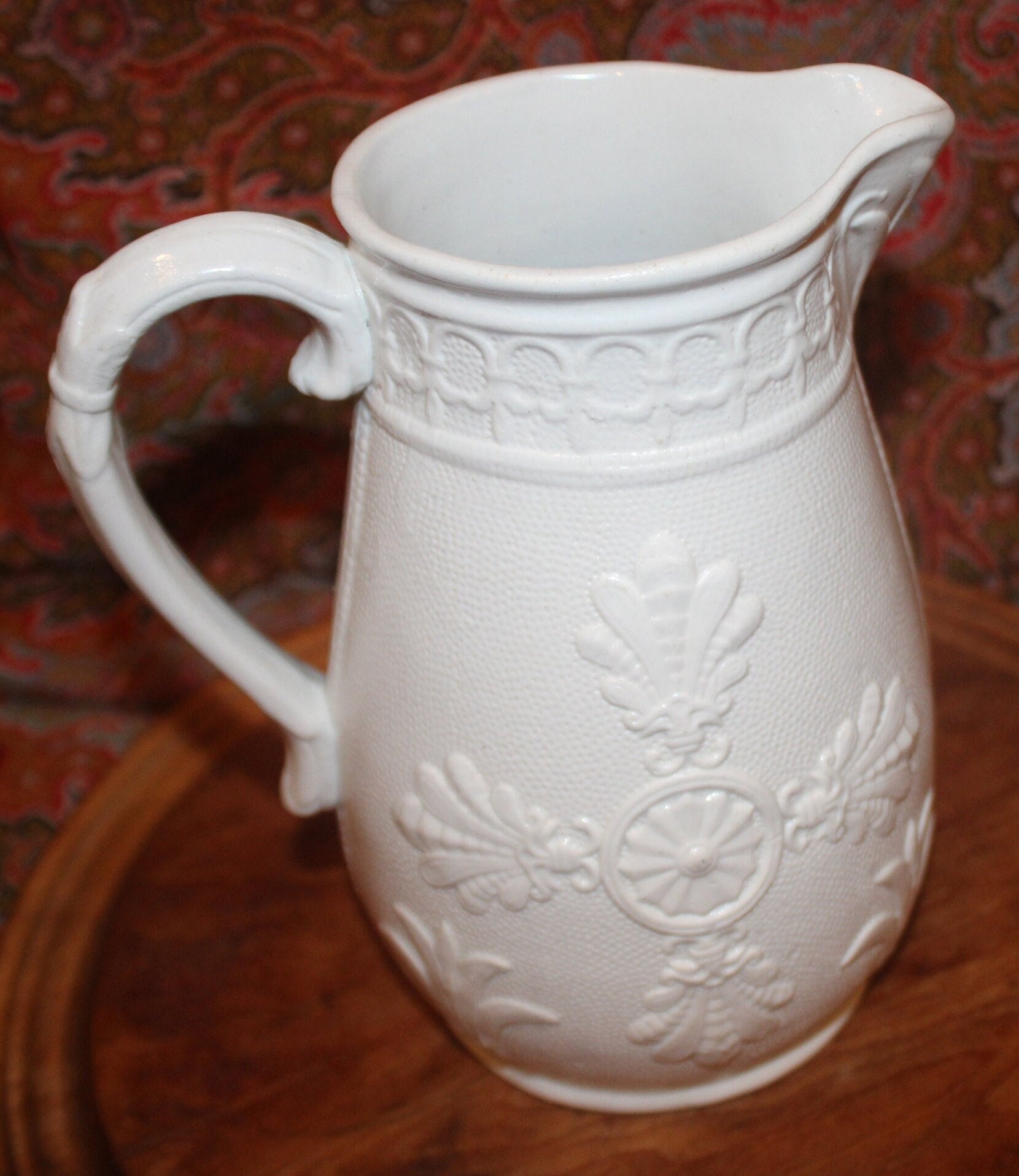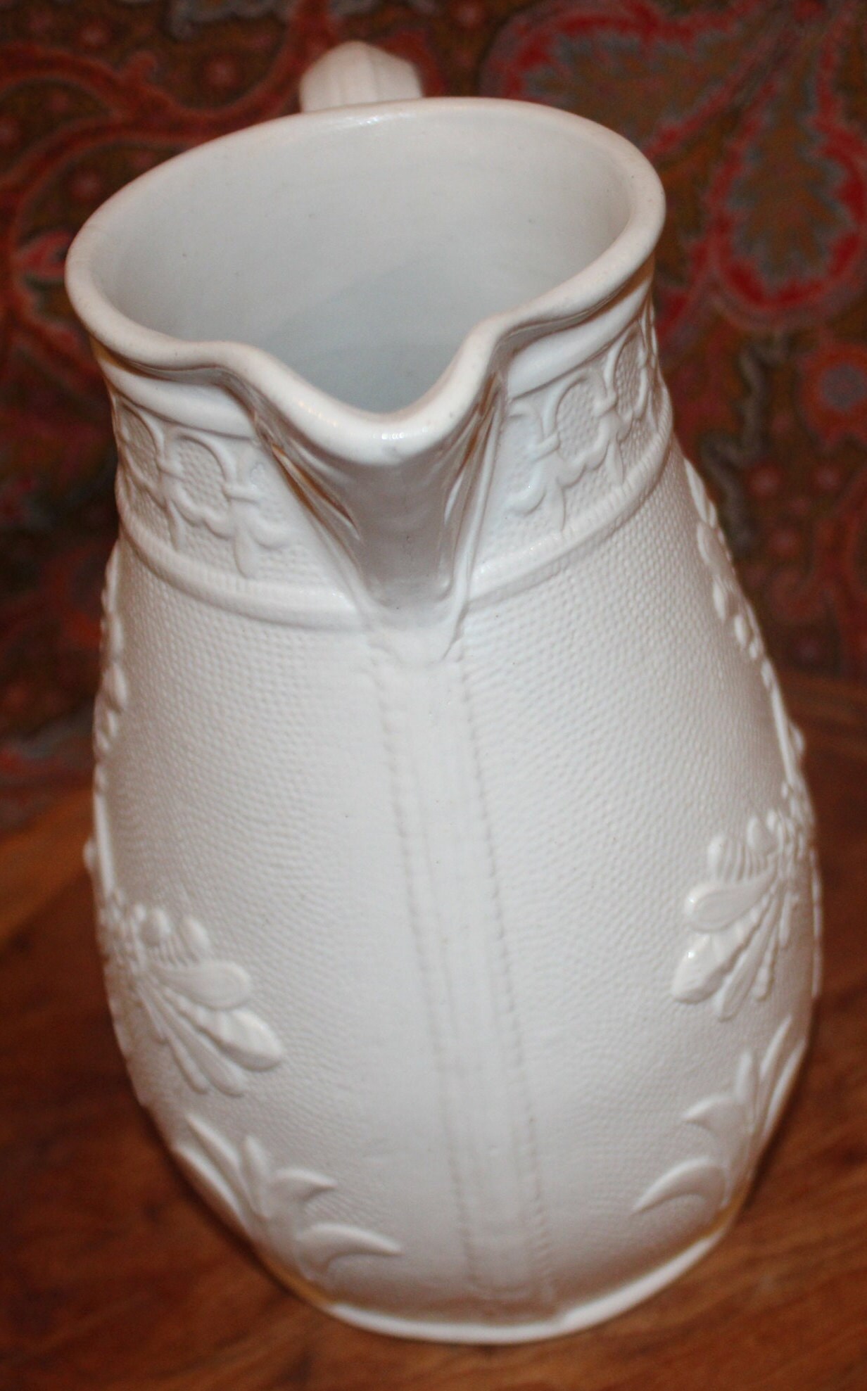 Vintage White Parian Cream Pitcher, Low-Relief Botanical Design
