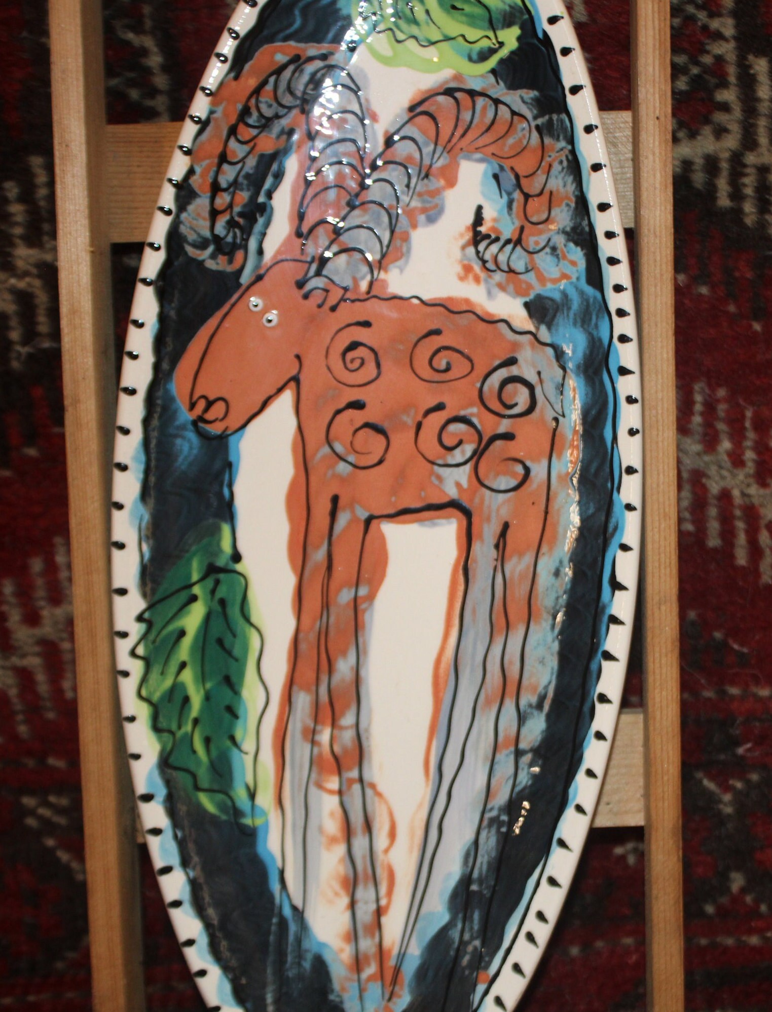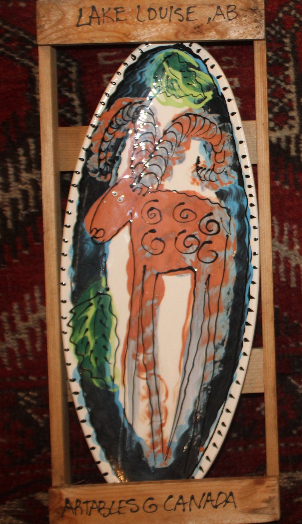 This Adorable Artables of Canada/Lake Louise Platter could be yours!! It is a super cute platter with a depiction of a long legged ram- the colors are very vibrant. The platter is 15" x 6.5" and is encased in its original wooden case. There are no chips or cracks. Please message us if you have any questions- Thanks for looking!
