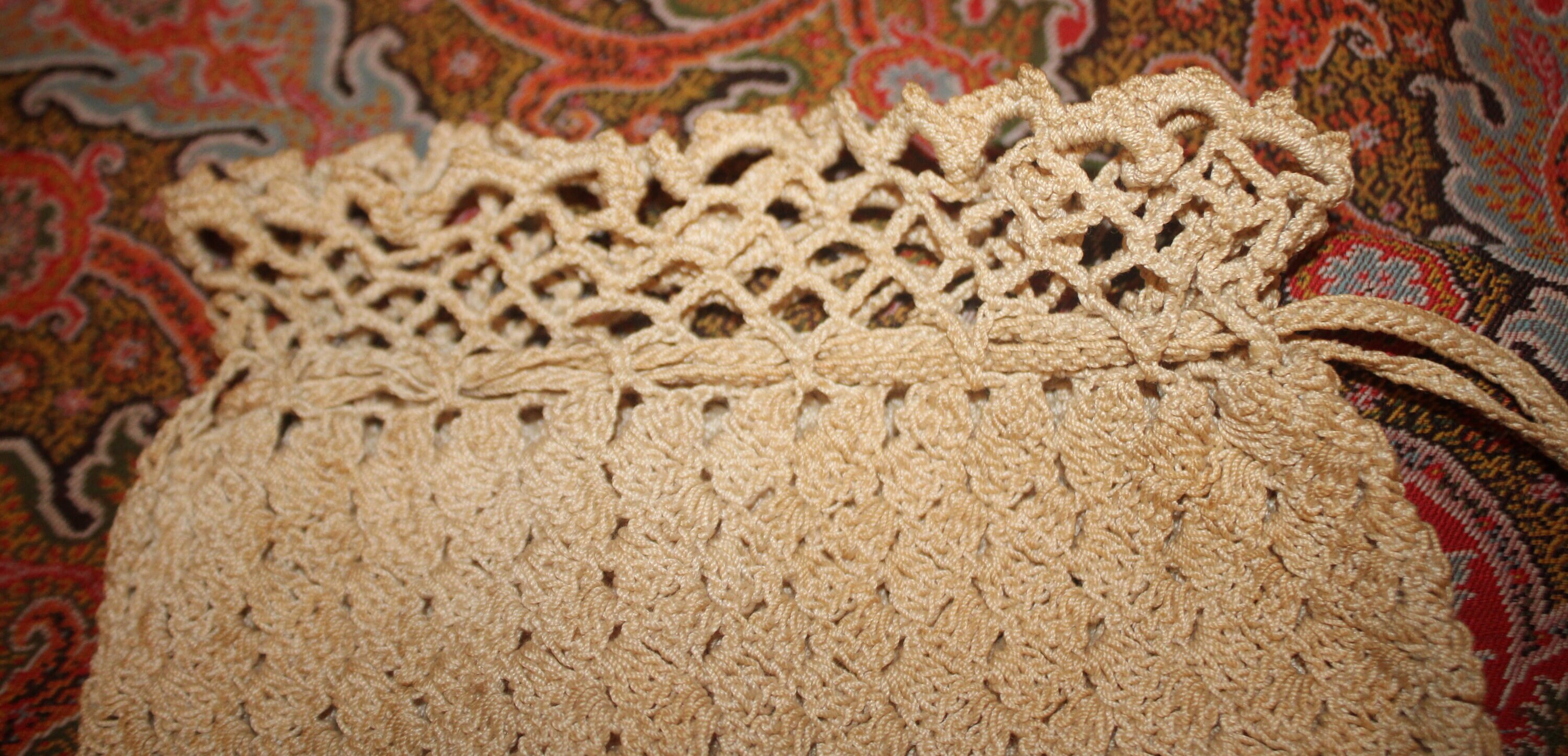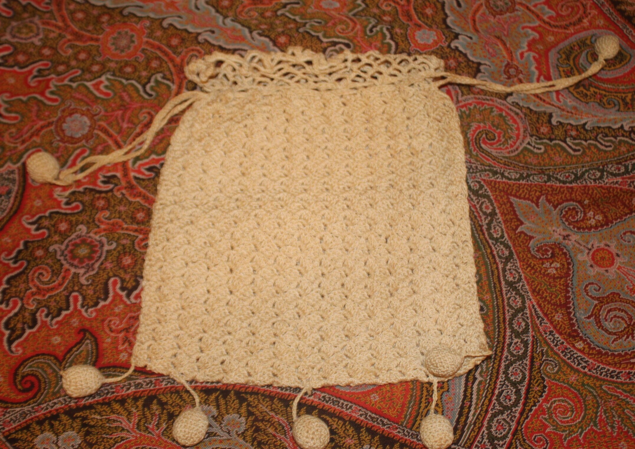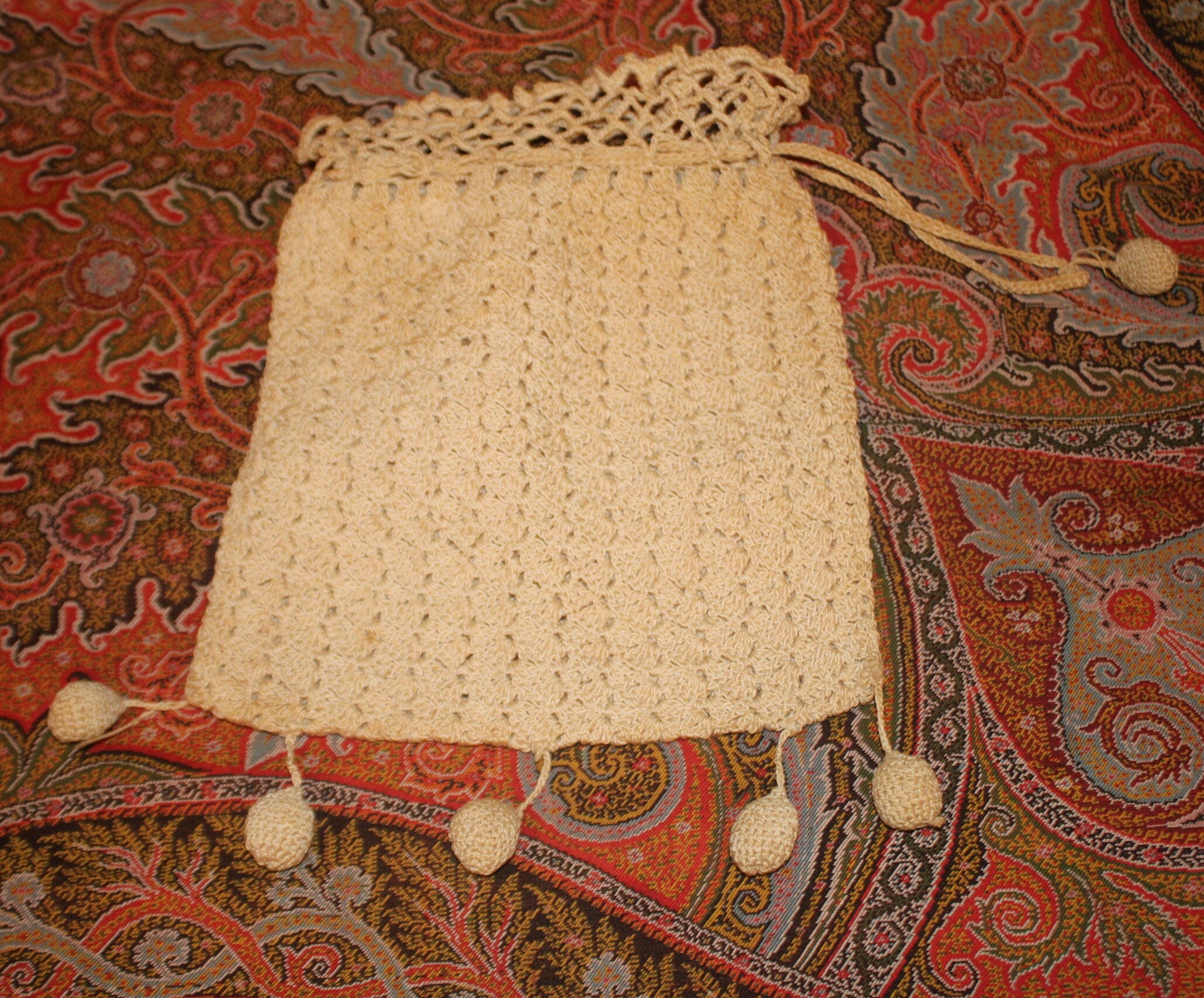 Hand Crocheted Victorian Purse – Cream Tasseled Bag, 19th Century