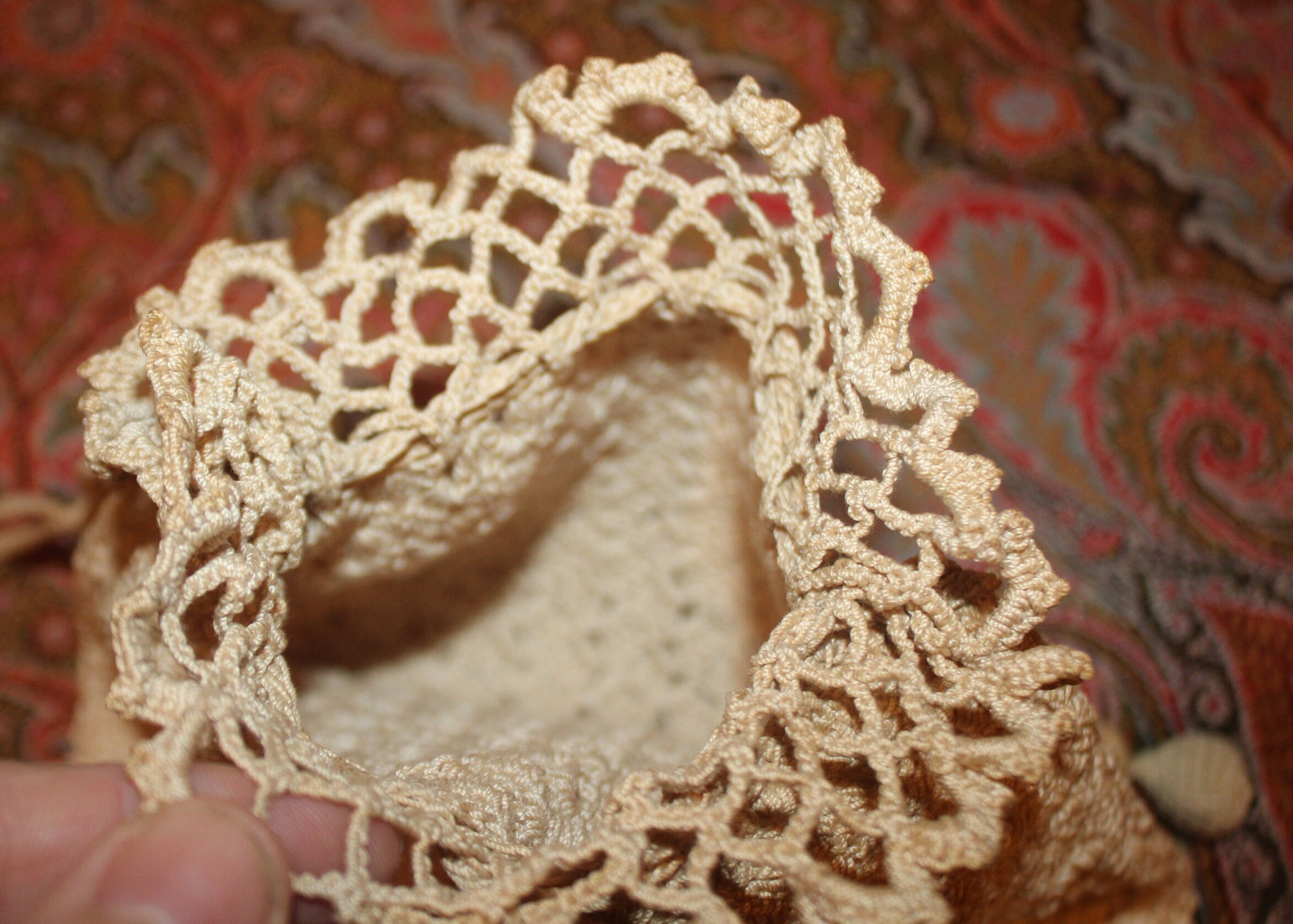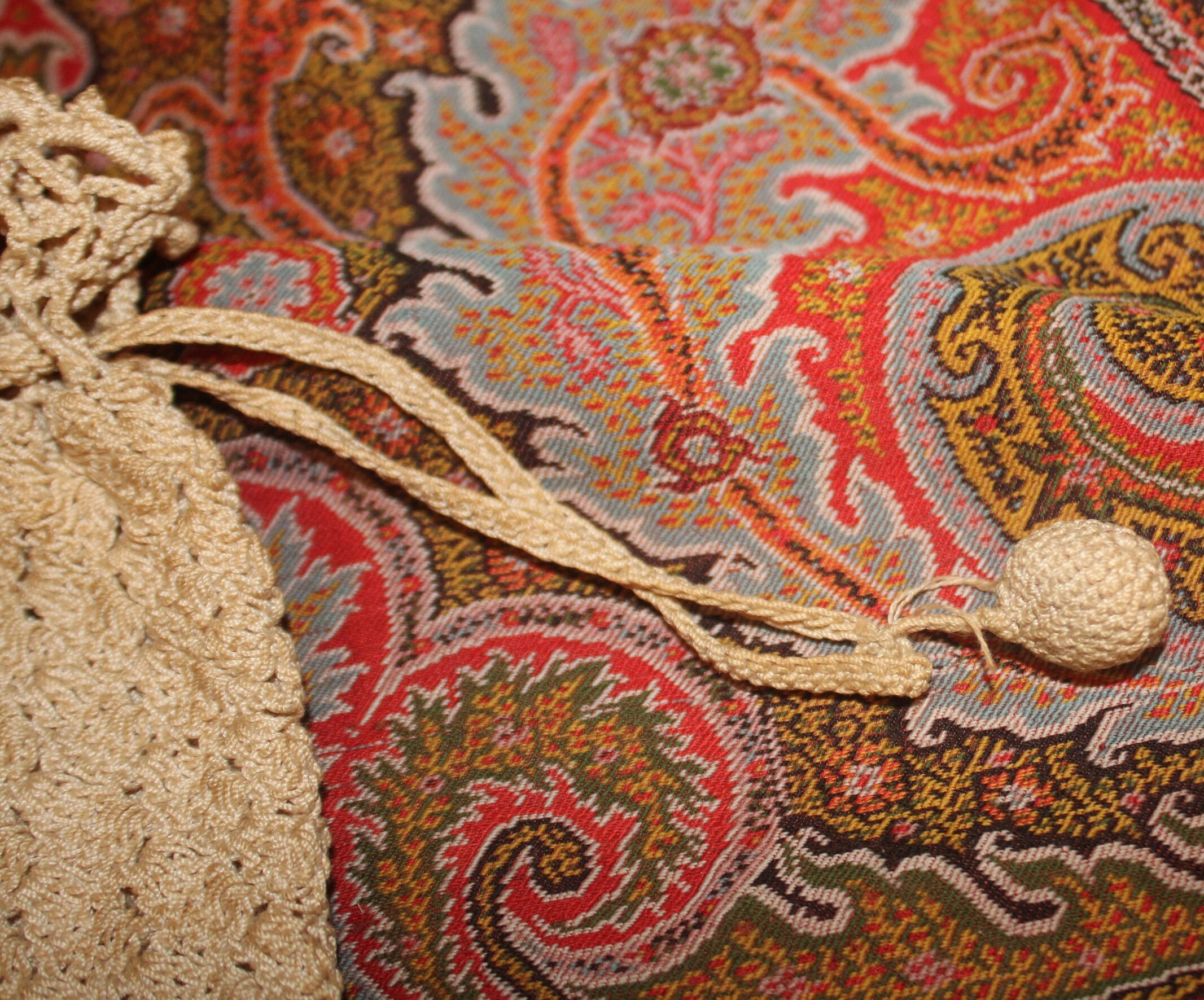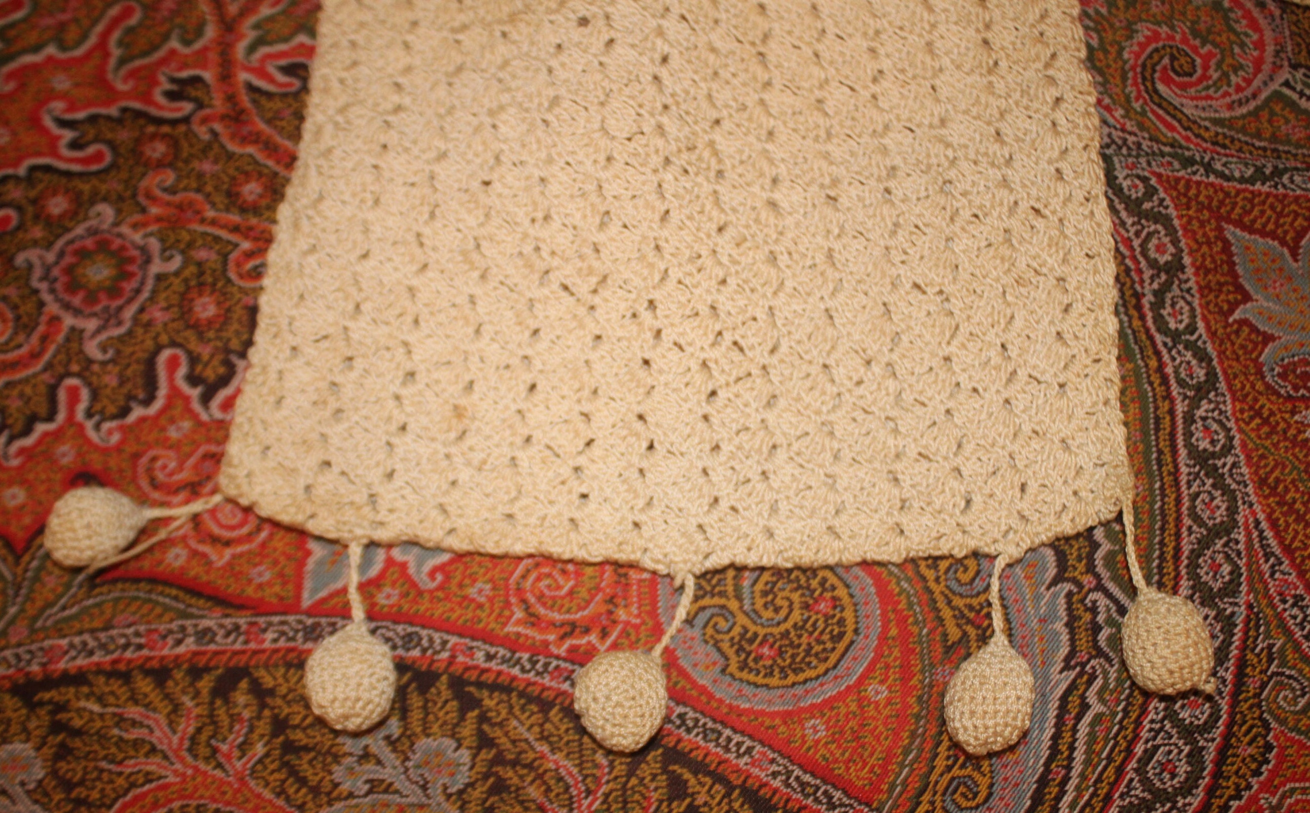 Hand Crocheted Victorian Purse – Cream Tasseled Bag, 19th Century