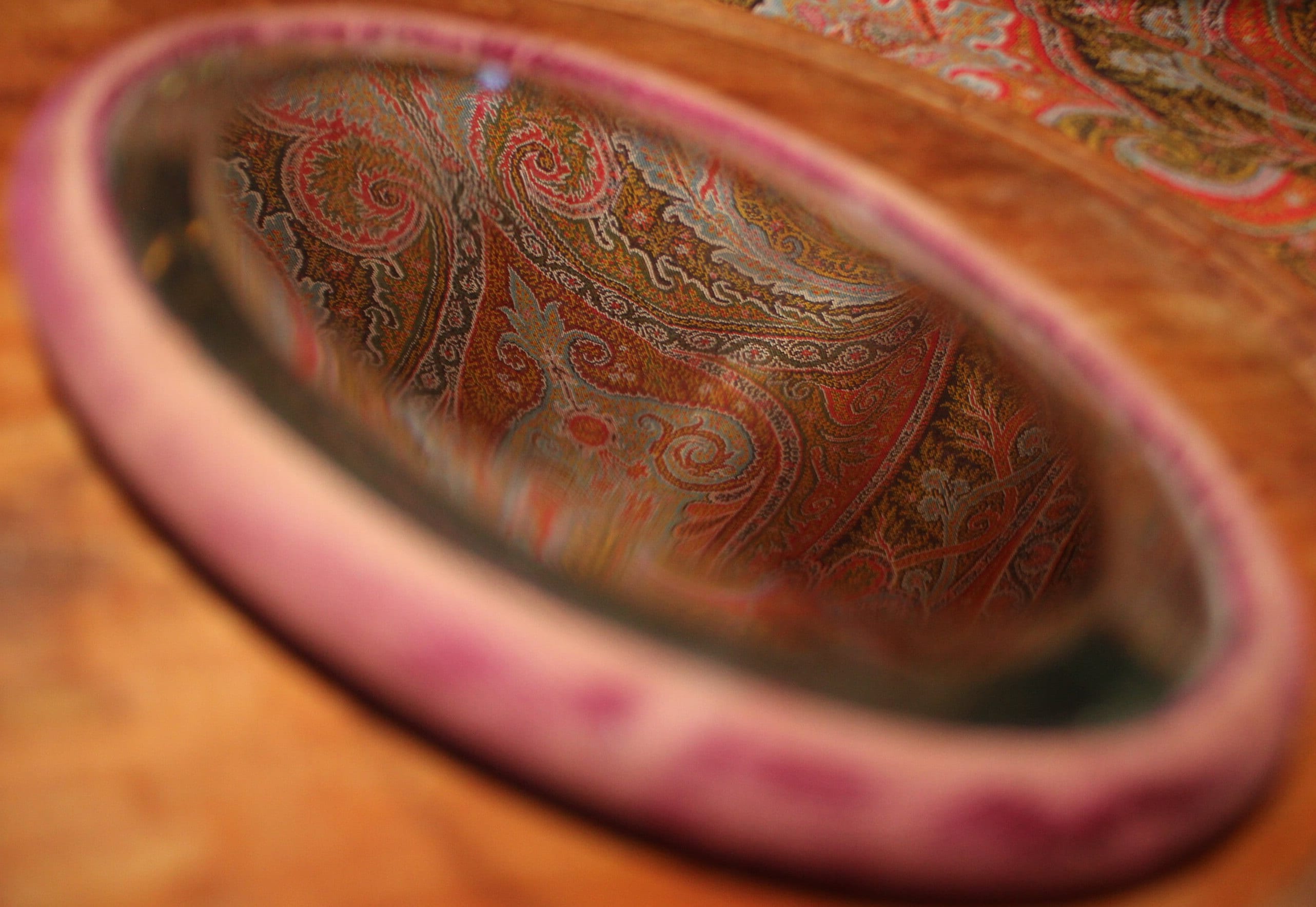 Victorian Velvet Oval Beveled Mirror – P. Weiderer, 1883