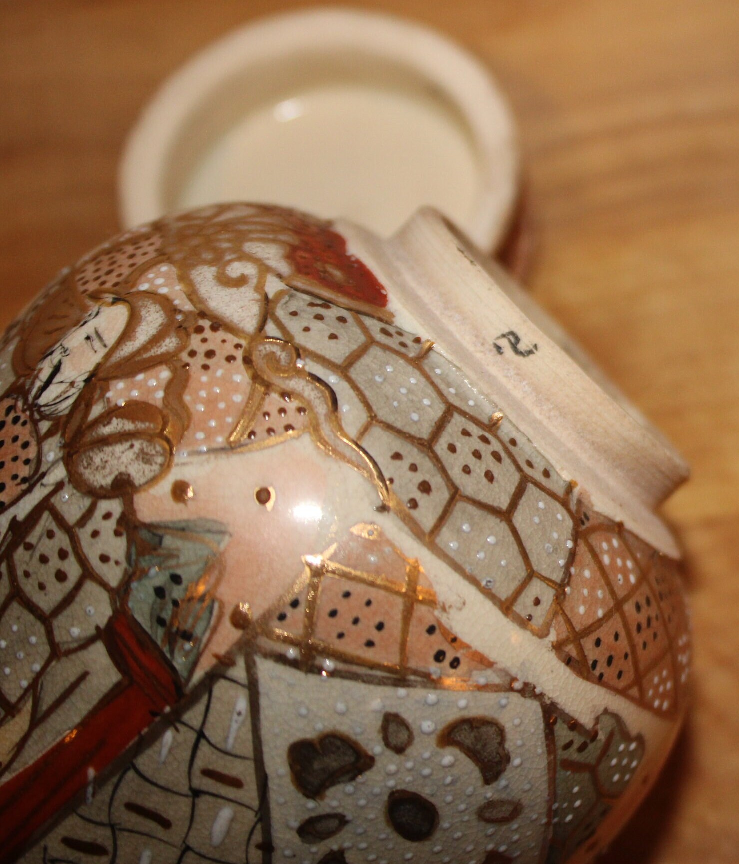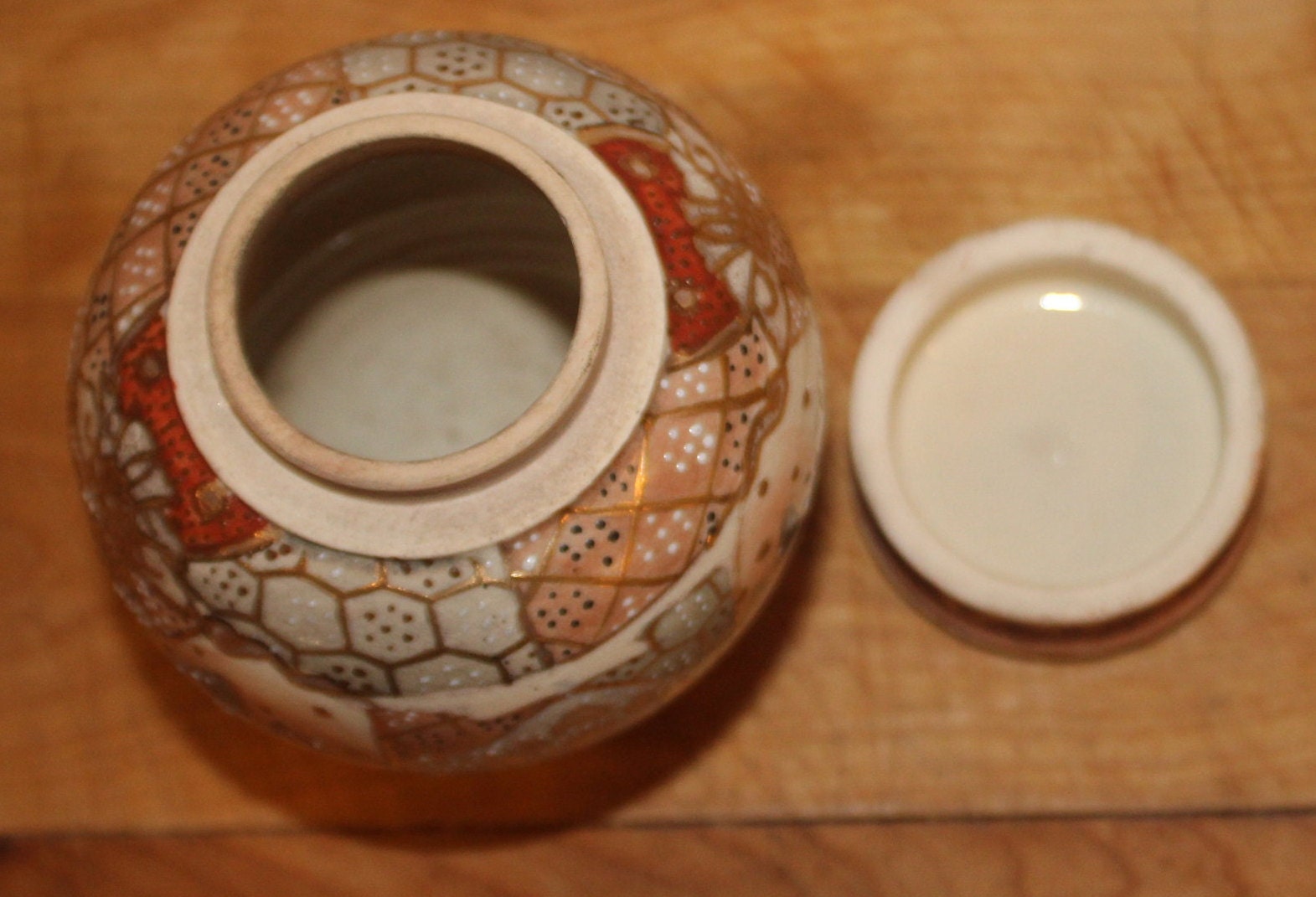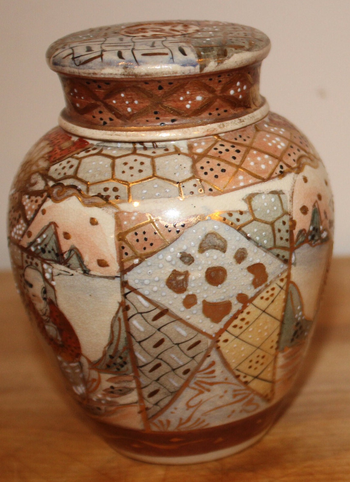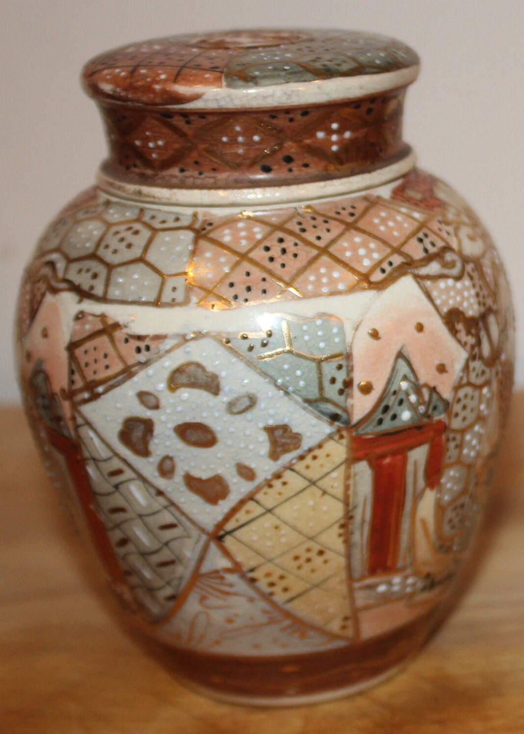 Handpainted Japanese Satsuma Ginger Jar with Lid - Signed Moriage Art