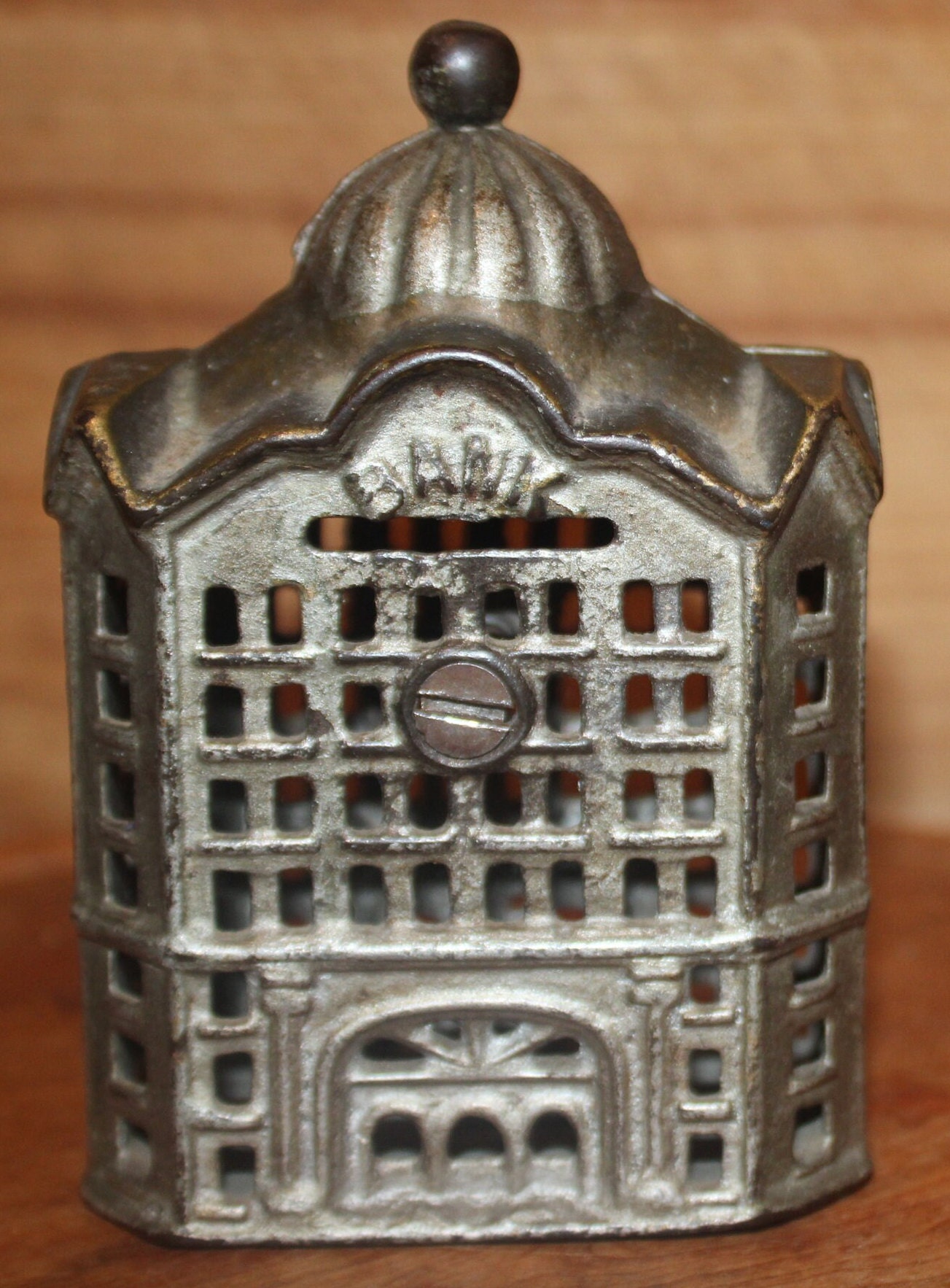 This Wonderful A.C. Williams Cast Iron Coin Bank with Original Silver Paint from the 19th Century would be a lovely addition to any room! It is approximately 5"tall x 3"wide x 2"deep; the paint is in great condition; there are no breaks or repairs to the iron- it retains the original screw. Please message us if you have any questions- Thanks for looking!