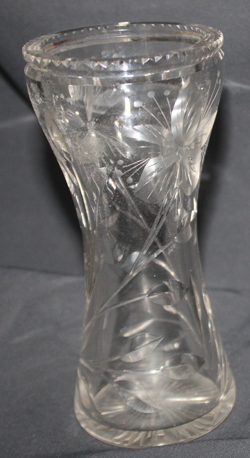 Gorgeous Hawkes American Brilliant Cut Glass Floral Etched Crystal Vase- Signed