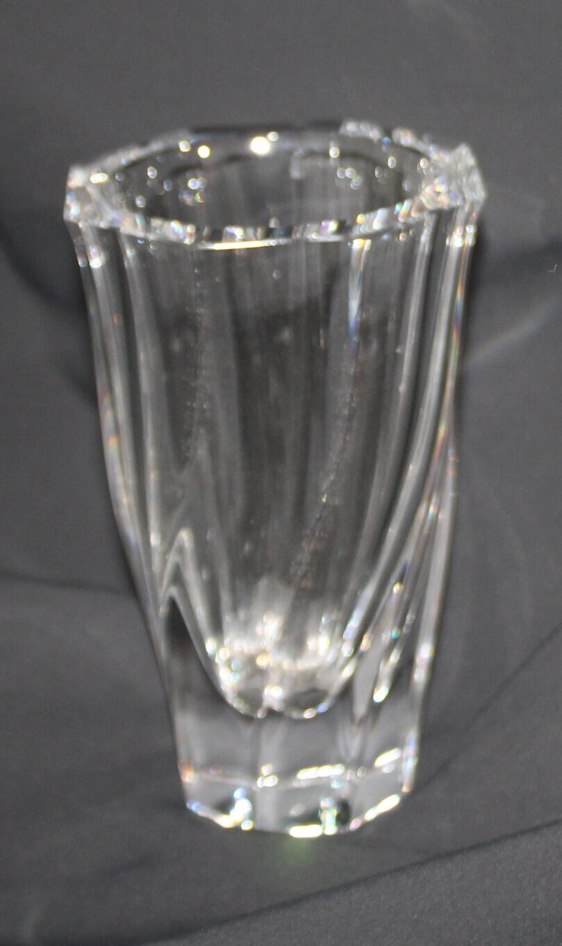 Orrefors Crystal Vase, Signed Beveled Glass