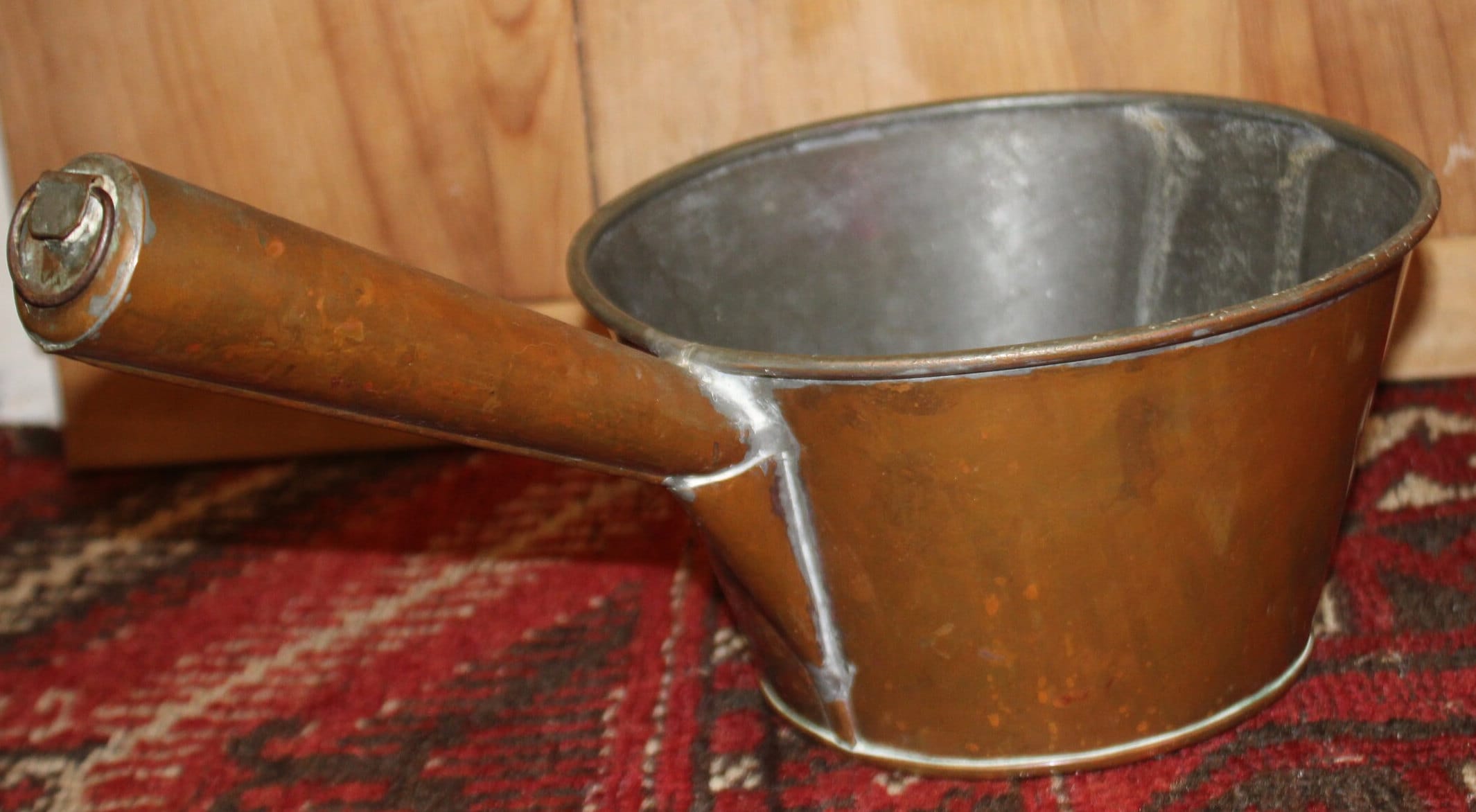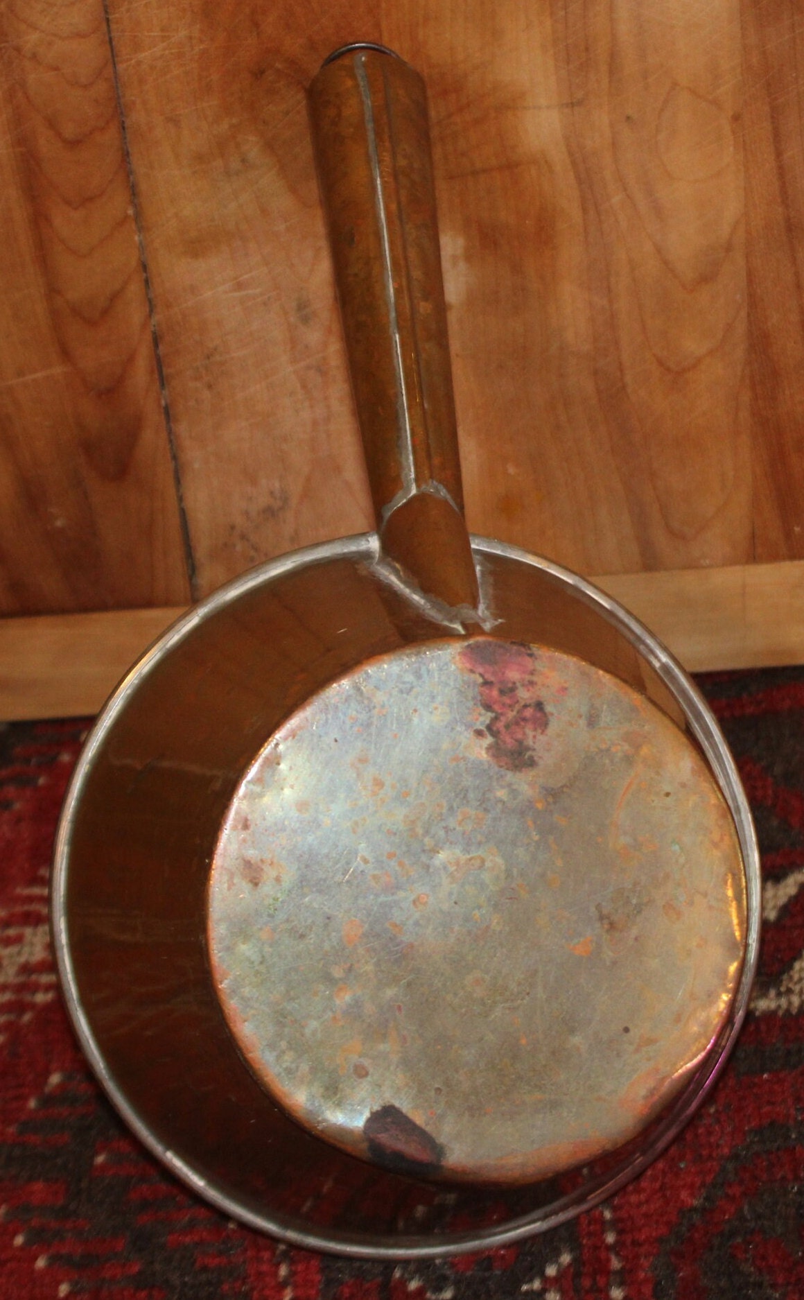 This Wonderful Antique 19th Century Copper and Tin-lined Dipper would be such a great addition to your farmhouse decor! The basin is 7.75" in diameter x 4.75" tall; the handle is 7" in length and ends in a ring for hanging. It is hand soldered- the seams are gorgeous. It has a rich warm patina (there is discoloration due to age). Please message us if you have any questions- Thanks for looking!