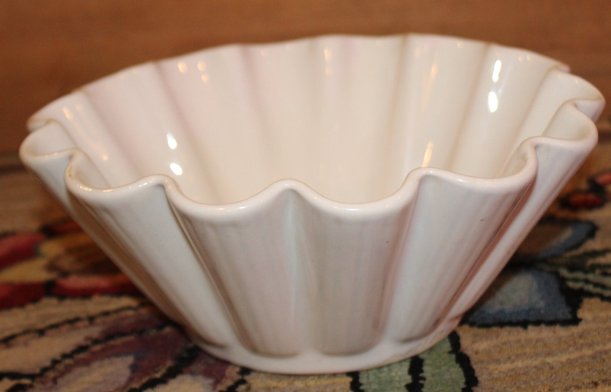 Vintage Scalloped Porcelain Pudding Mold – French Farmhouse Decor