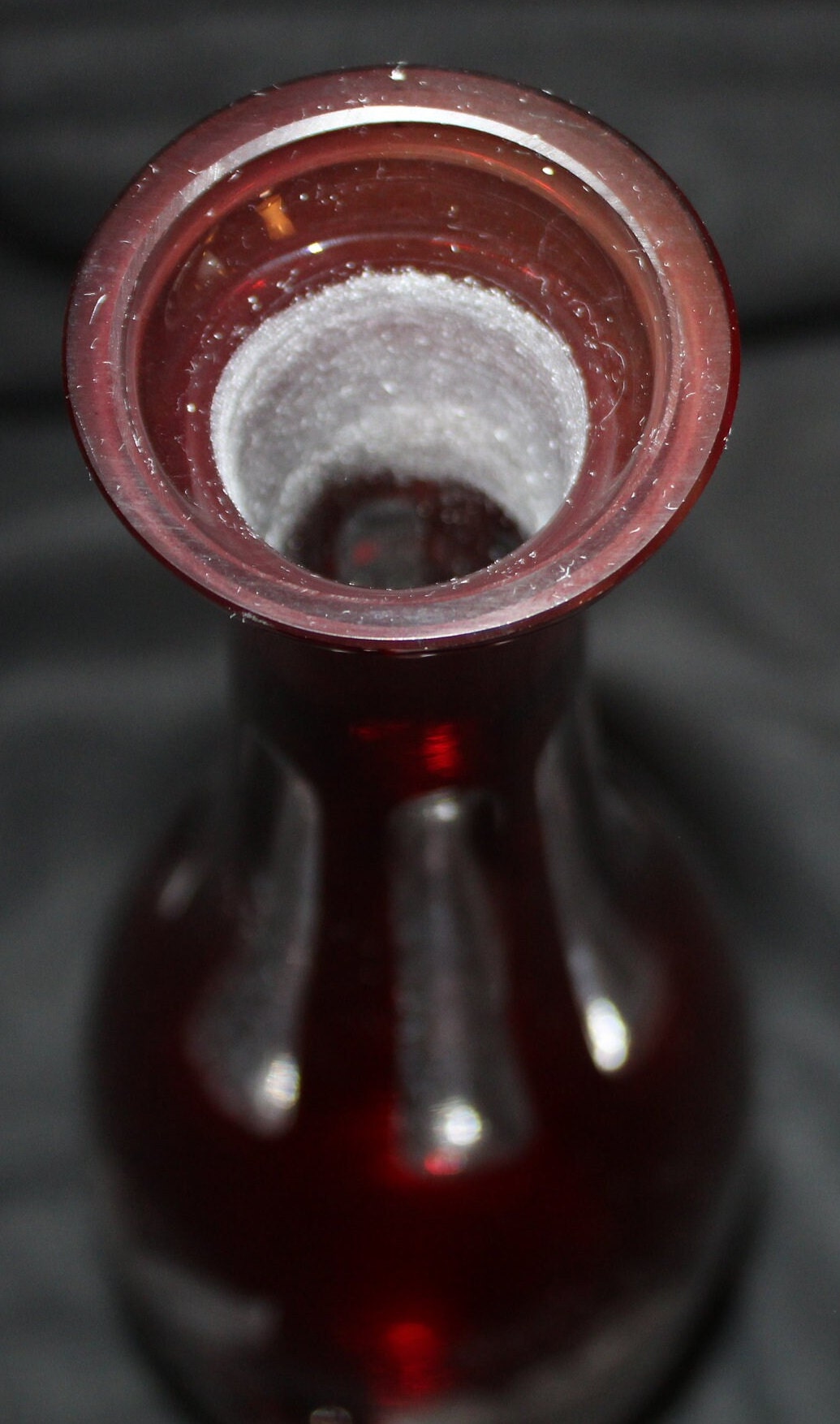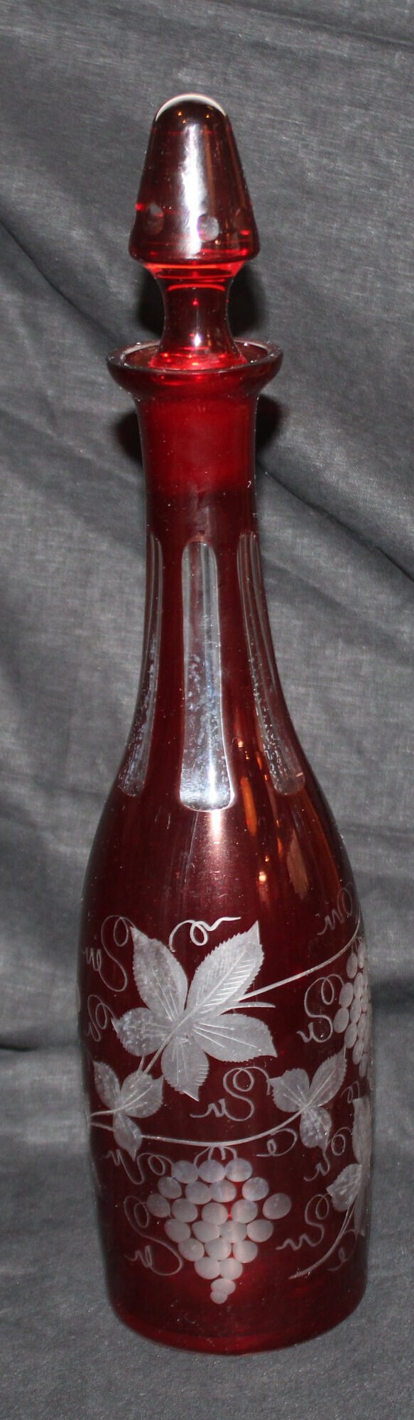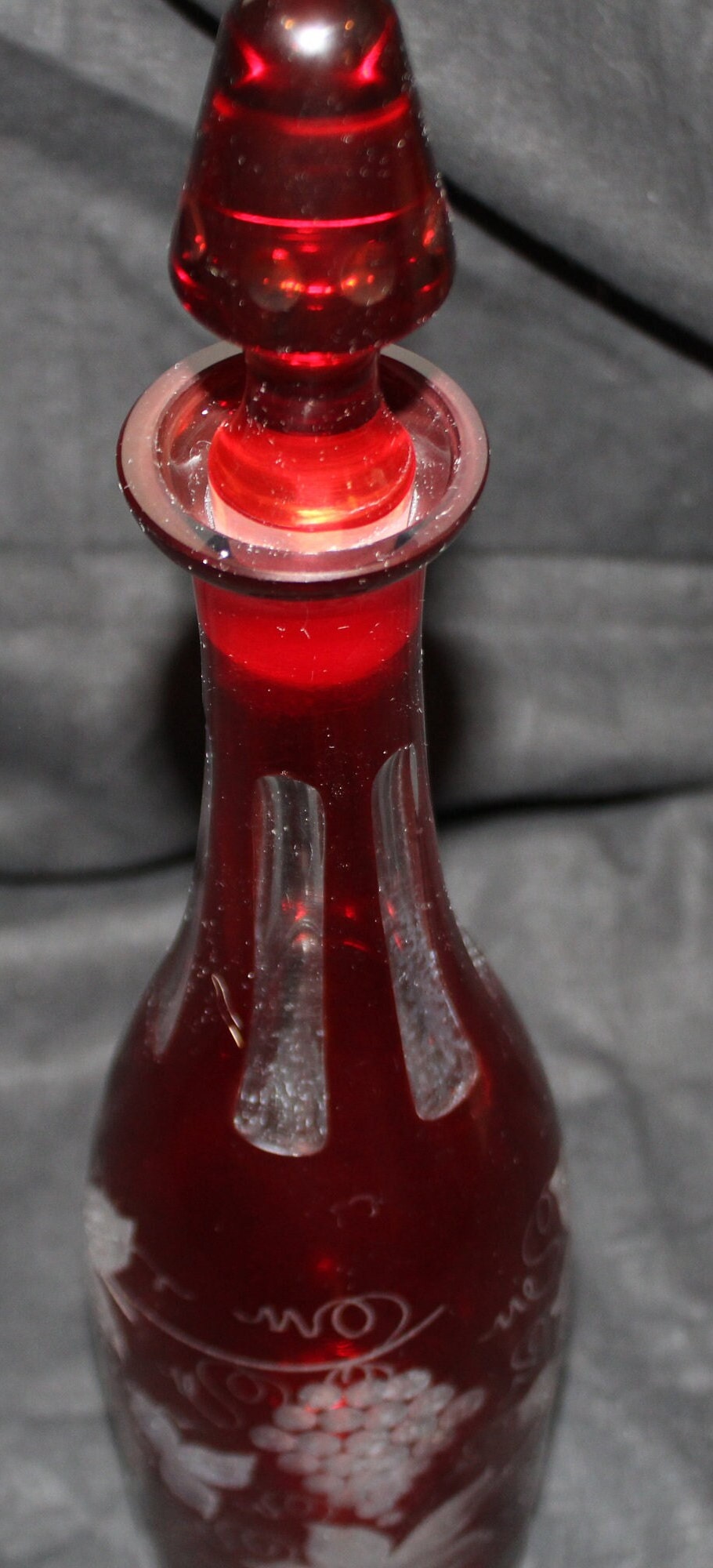 Gorgeous Antique Ruby Red Cranberry Cut to Clear Glass Decanter- Grape Vines/Grapes/Wine