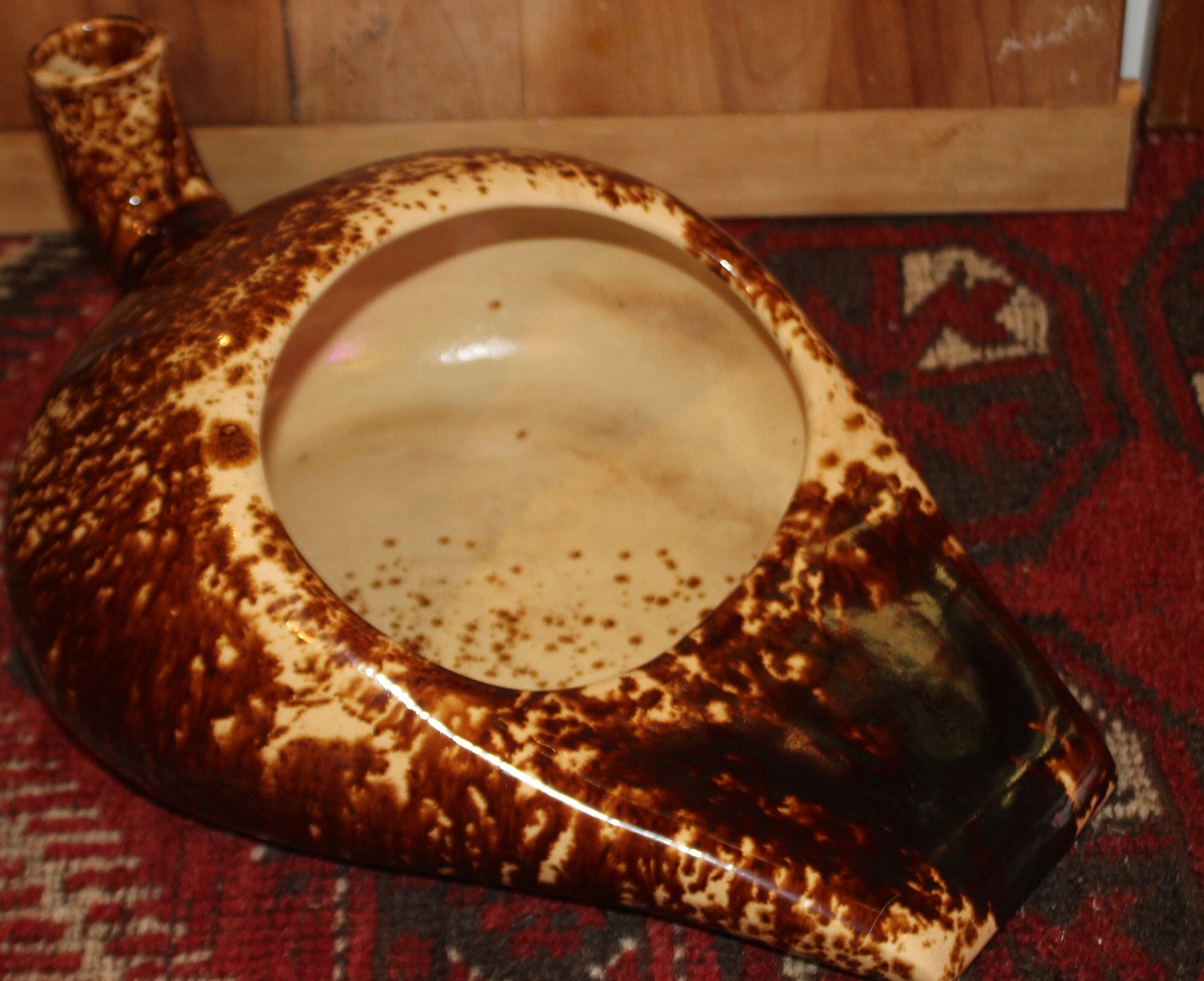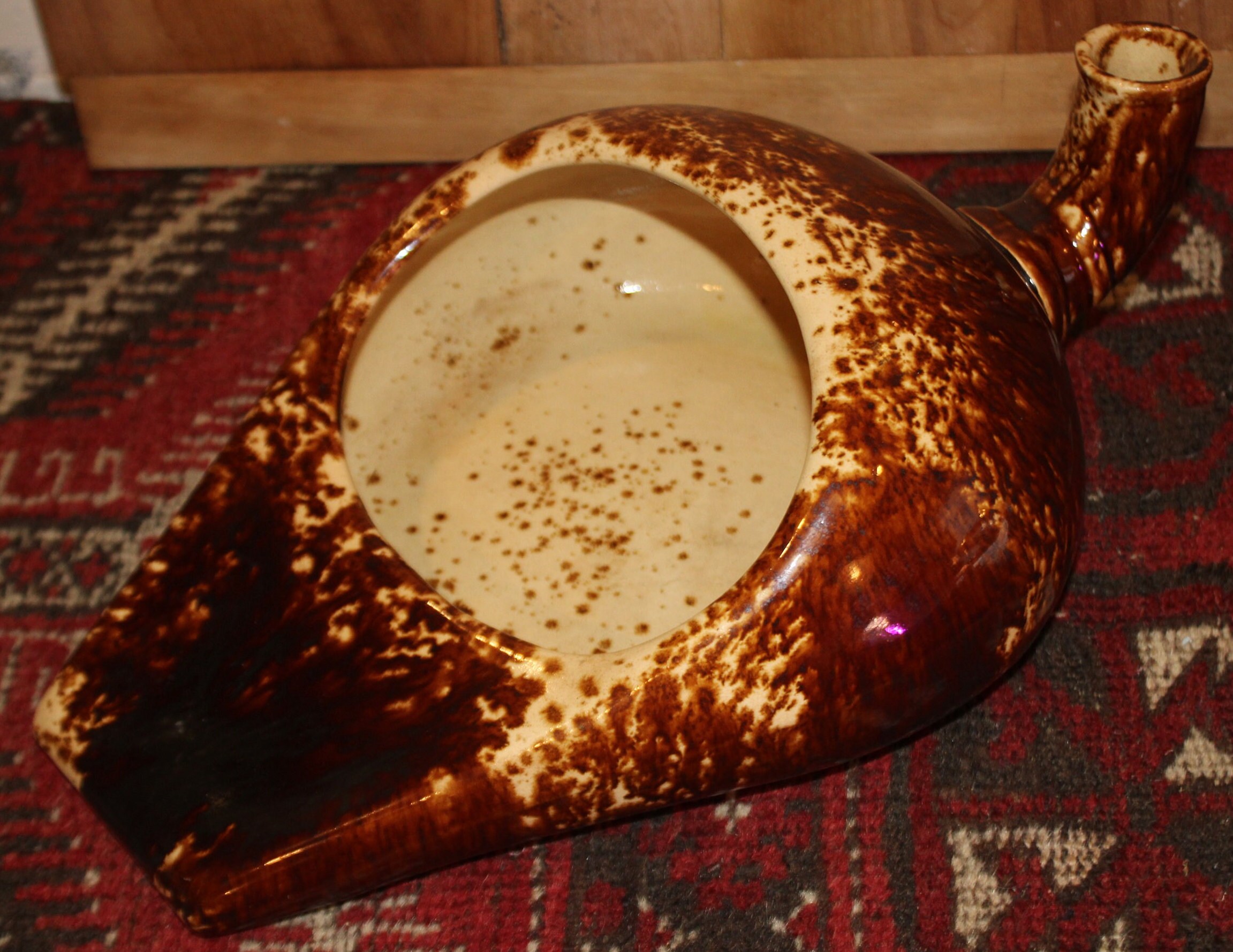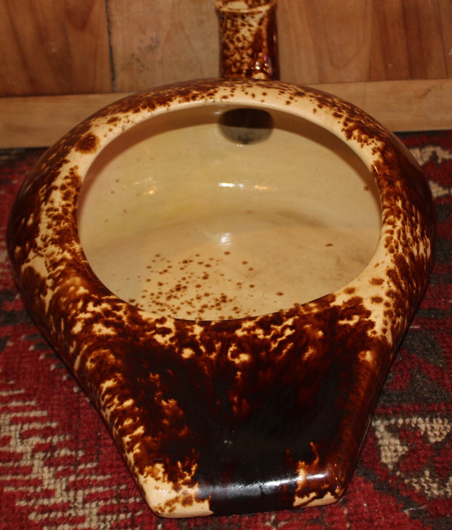 This Great 19th Century Brown Spongeware Bennington/Rockingham Bed Pan is simply wonderful and has so many uses!! We have used it as a planter, as a water bowl for our pup (who has a fetish for toilet bowls), and as a change bucket.....the options are endless and it is sure to start a conversation! It is 15" x 11" x 6" with no chips or cracks. Please message us if you have any questions- Thanks for looking!