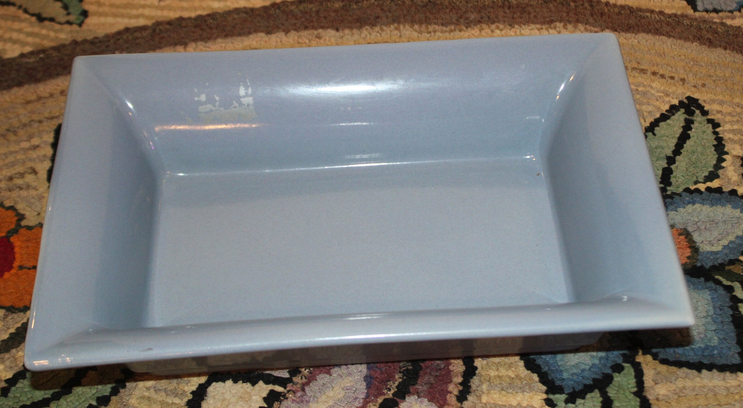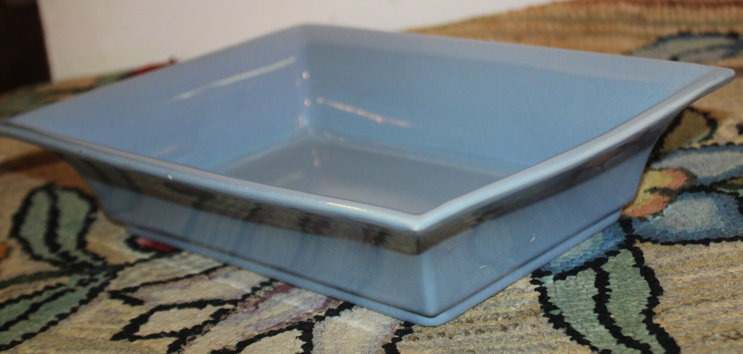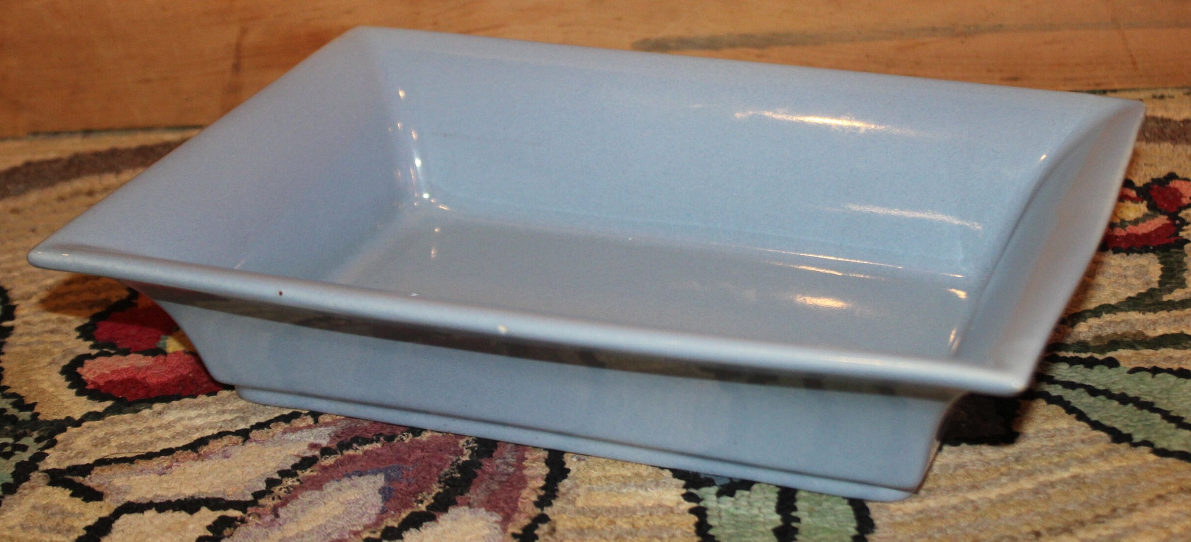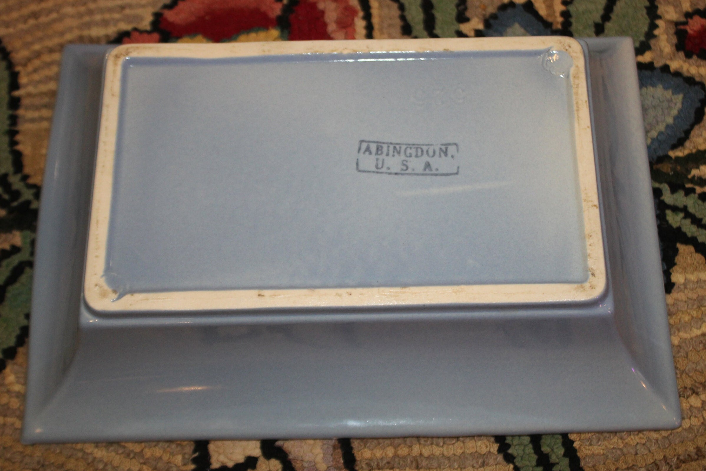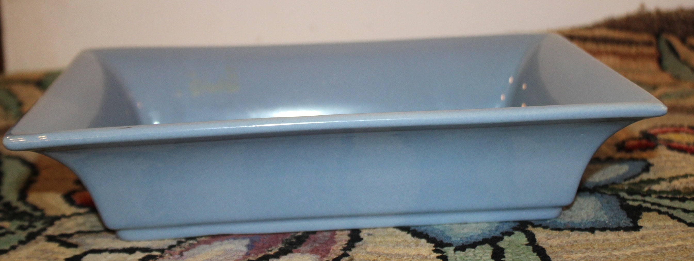 This Very Sleek Art Deco Midcentury Periwinkle Blue Abingdon Dish from the 40's would look lovely displayed on your entry table- or use it as a console bowl- it is so versatile! It is 10"x 7" x 2.25"tall and is in perfect condition with no chips or cracks. Please message us if you have any questions- Thanks for looking!