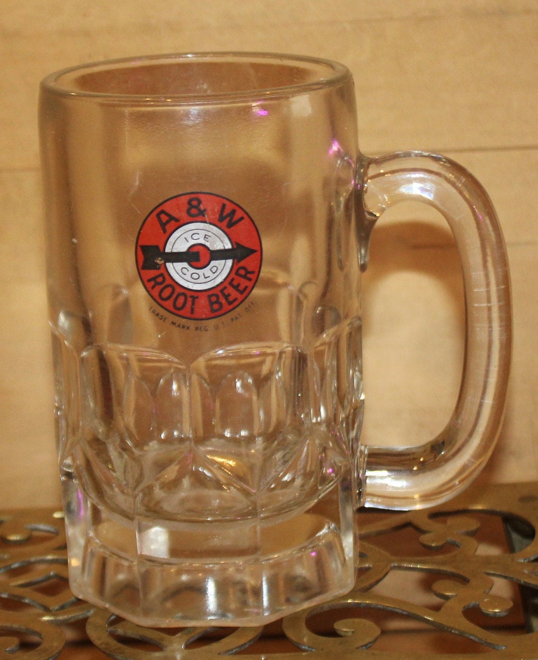 Great Vintage Midcentury A&W Glass Rootbeer Mug- 1950's- Awesome Graphics and Advertising!!