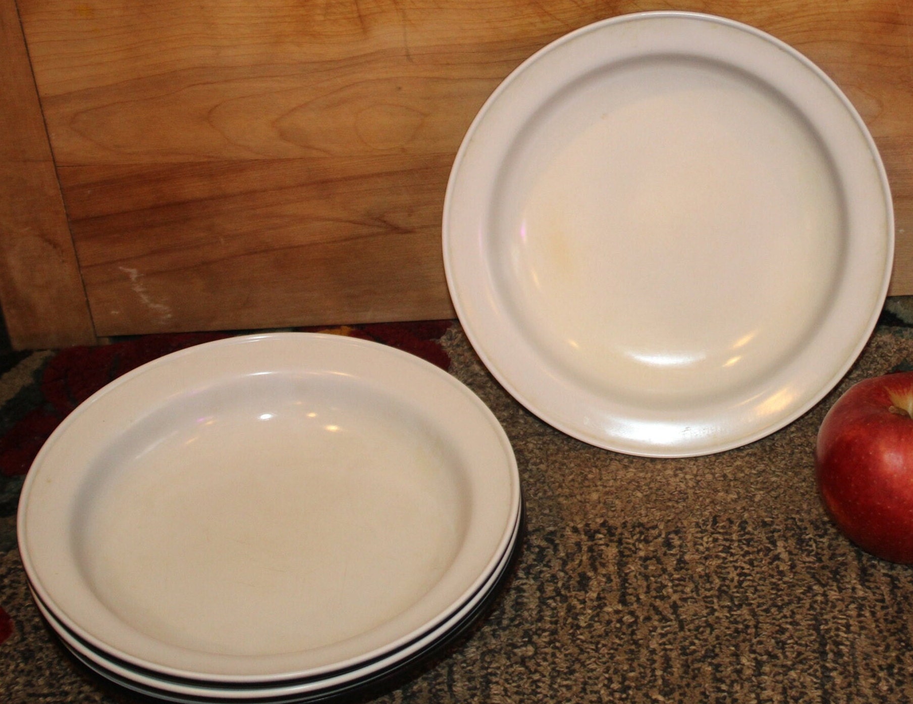 These Texas Ware Black and White bowls are the perfect size for a serving of soup or cereal! Each bowl is 8" in diameter (one cup of liquid). There are no scorch marks or cracks- the melamine surface is in very good condition with minor wear. We have two sets of four available for purchase. Please message us if you have any questions-Thanks for looking!