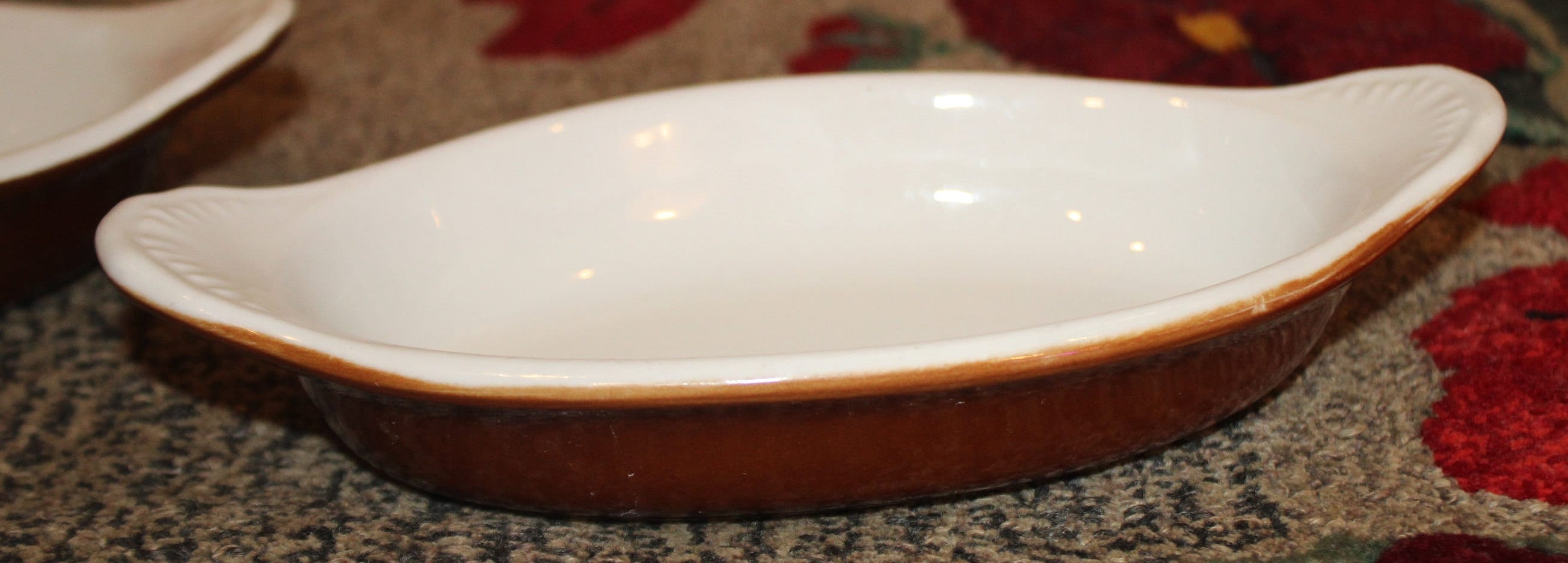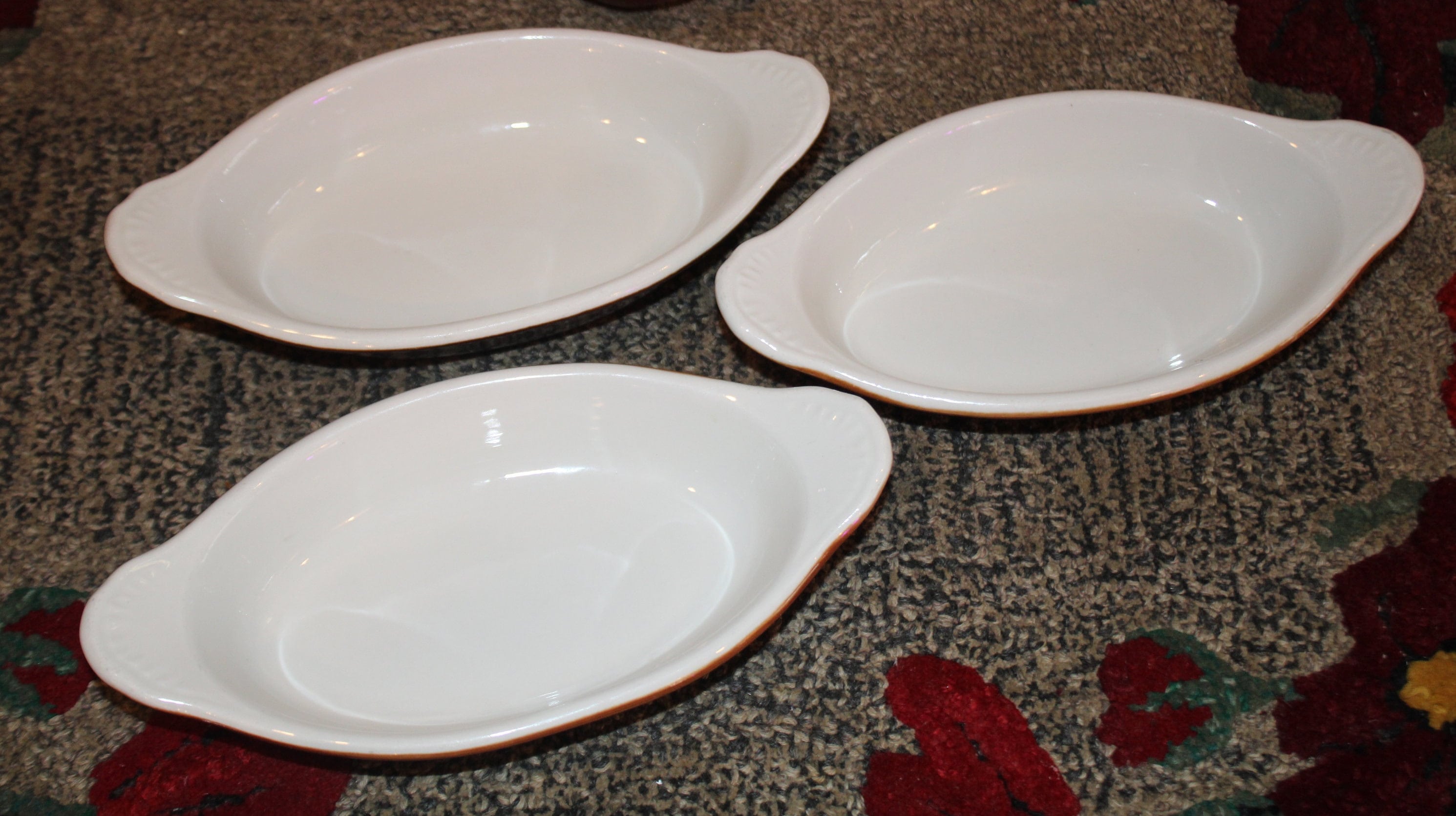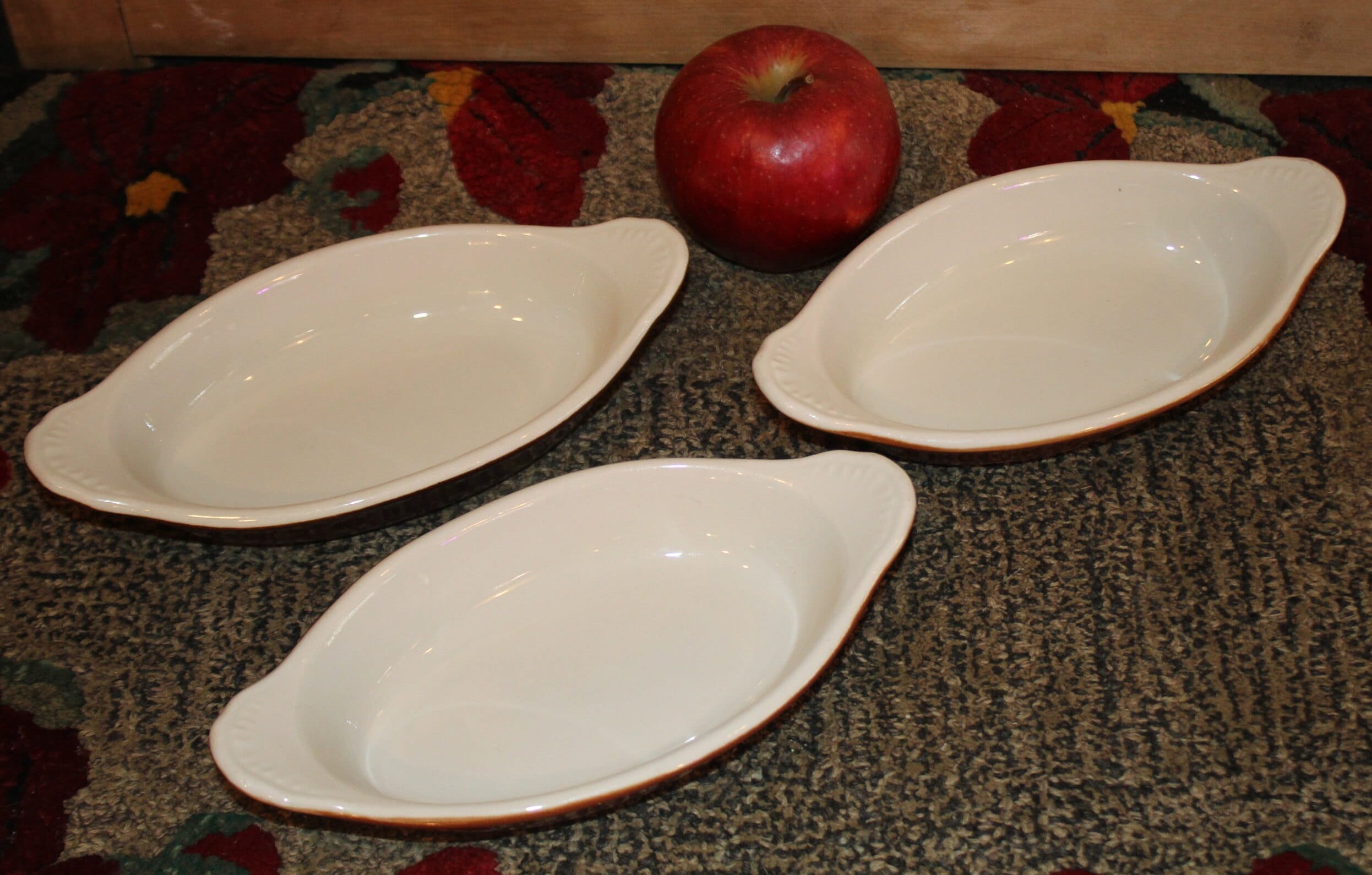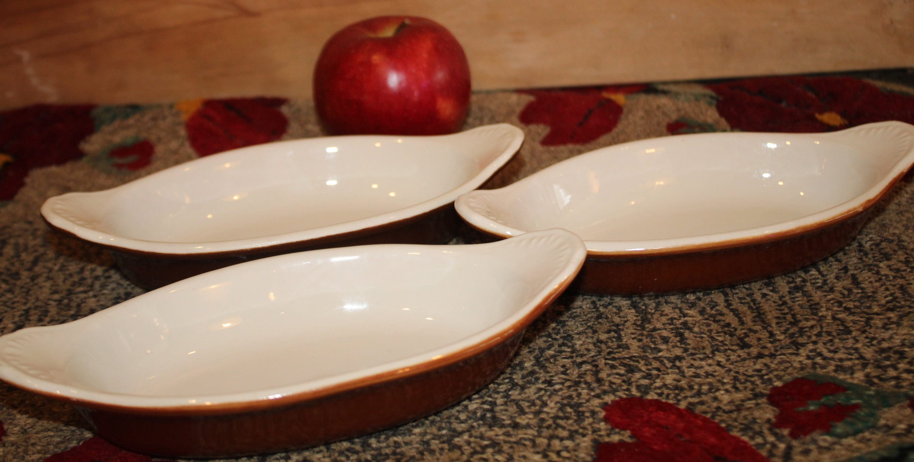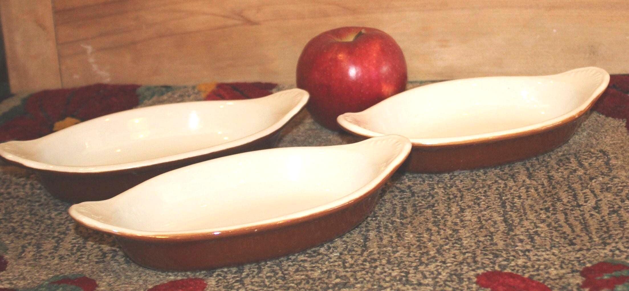 Great Versatile set of Three Hall Gratin/Casserole Boats/Dishes- #527- Great for Breakfast, Lunch, or Dinner- Brown and White